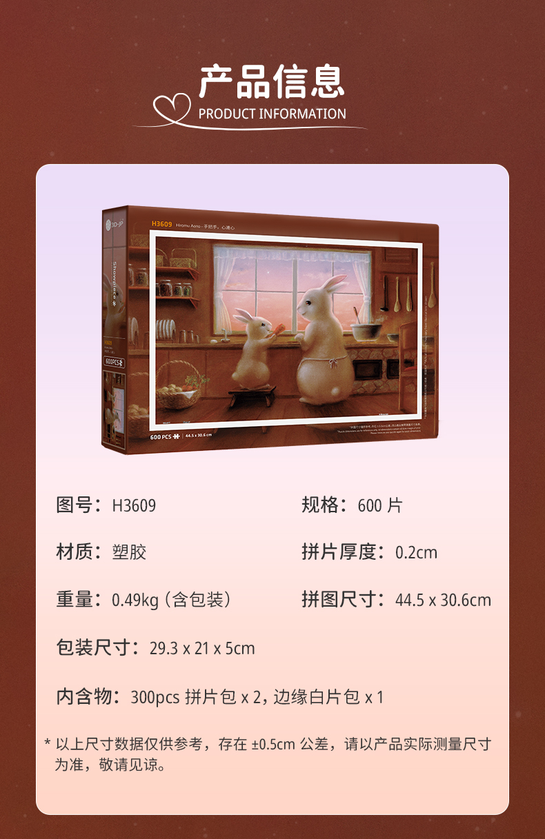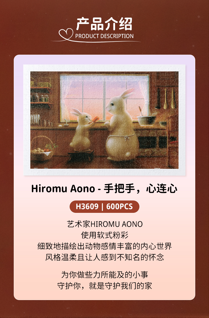 【折扣商品 不退不换】600片 平面塑料拼图 H3609 Hiromu Aono-手把手,心连心