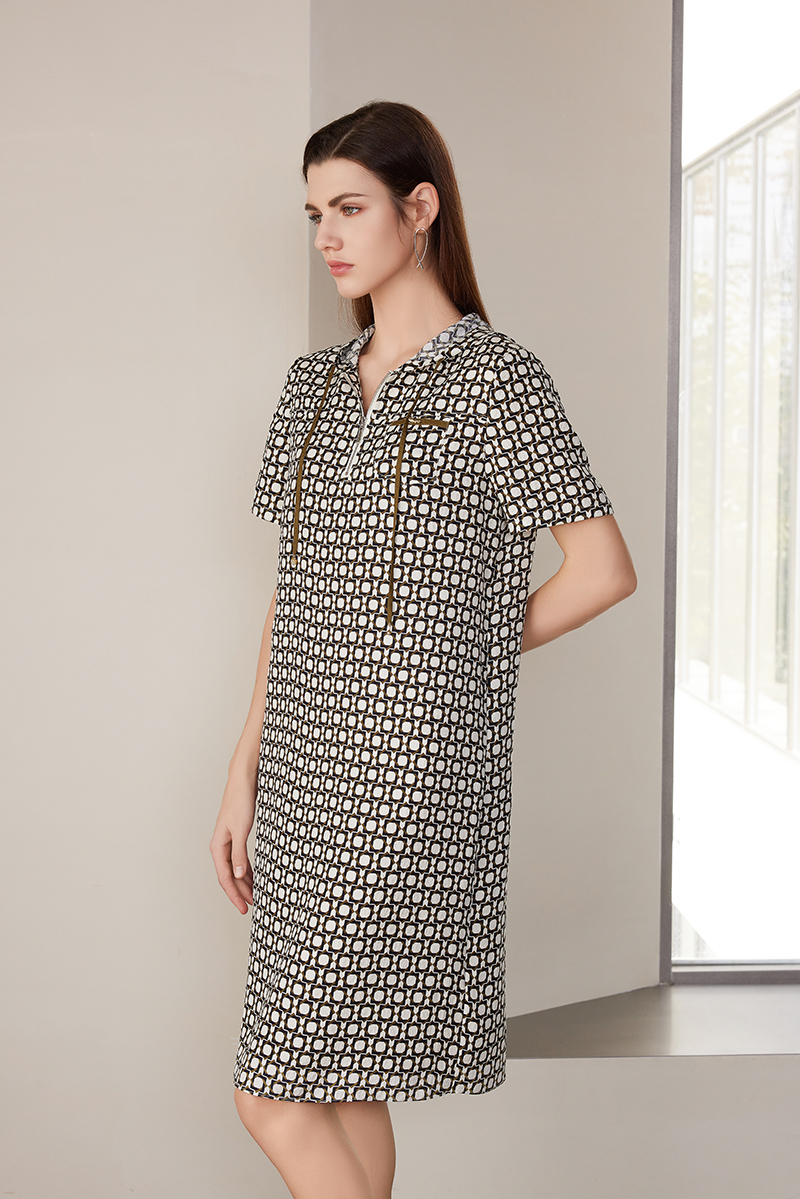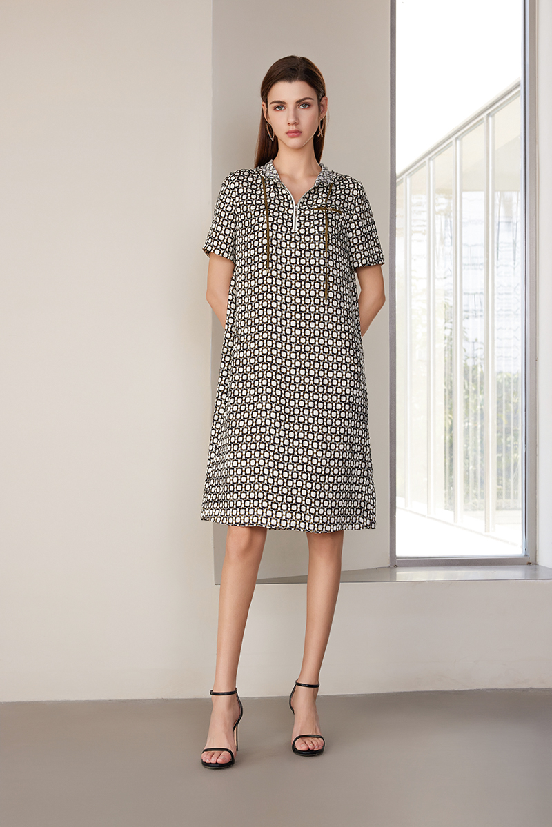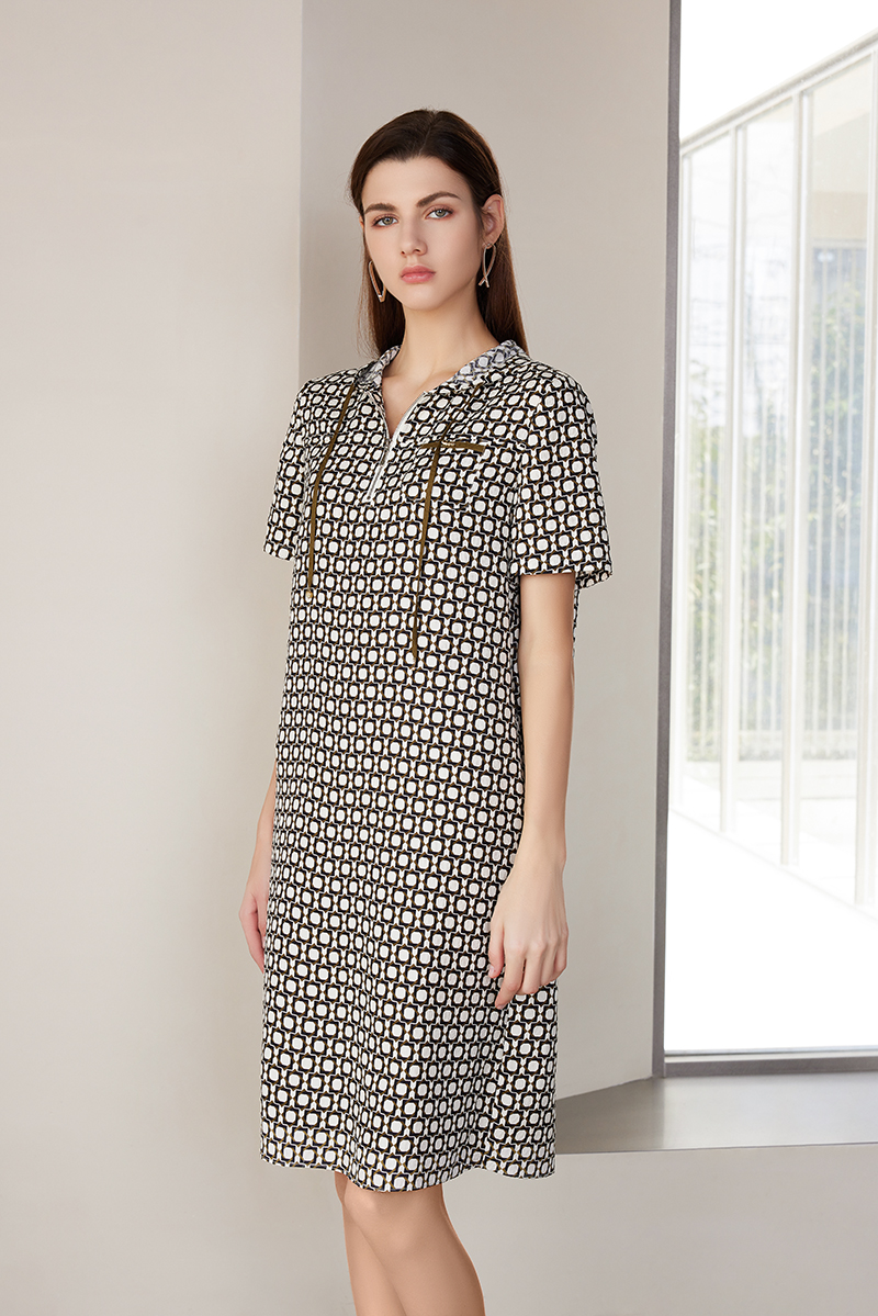 【中长款印花真丝裙】24年春夏新品100%桑蚕丝时尚米底印花真丝裙子