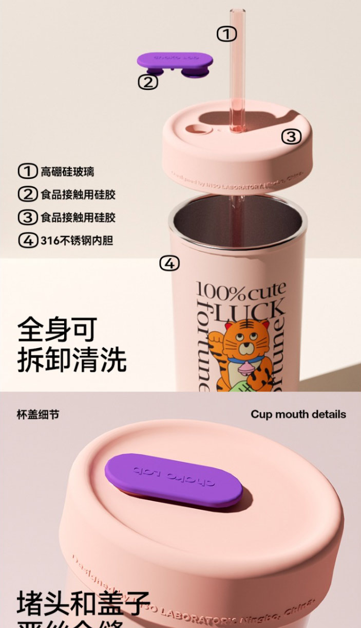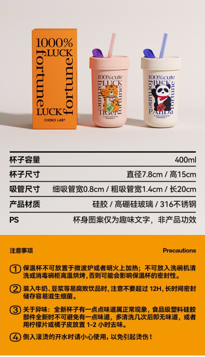 【chakolab】熊猫虎年 情侣水杯子吸管保温杯女可爱国潮便携奶茶咖啡杯