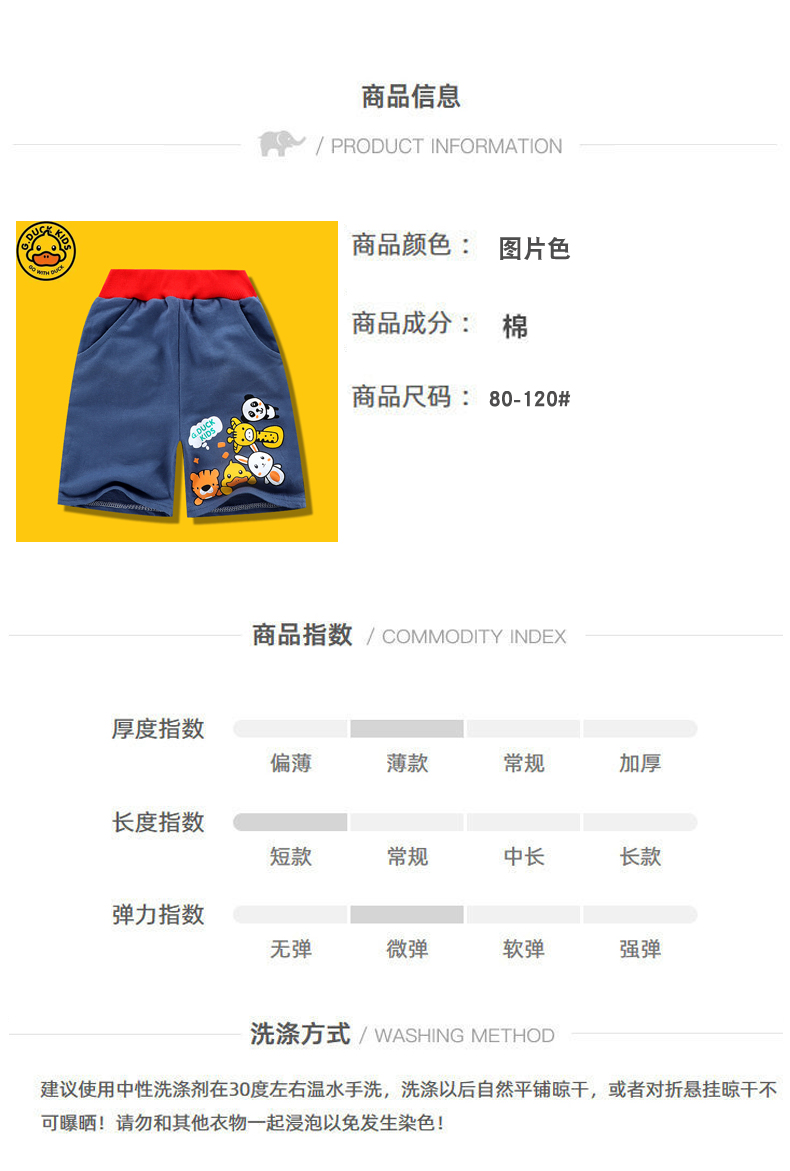 [任选二件包邮59.9元】小黄鸭儿童纯棉夏季薄款男女童短裤潮款
