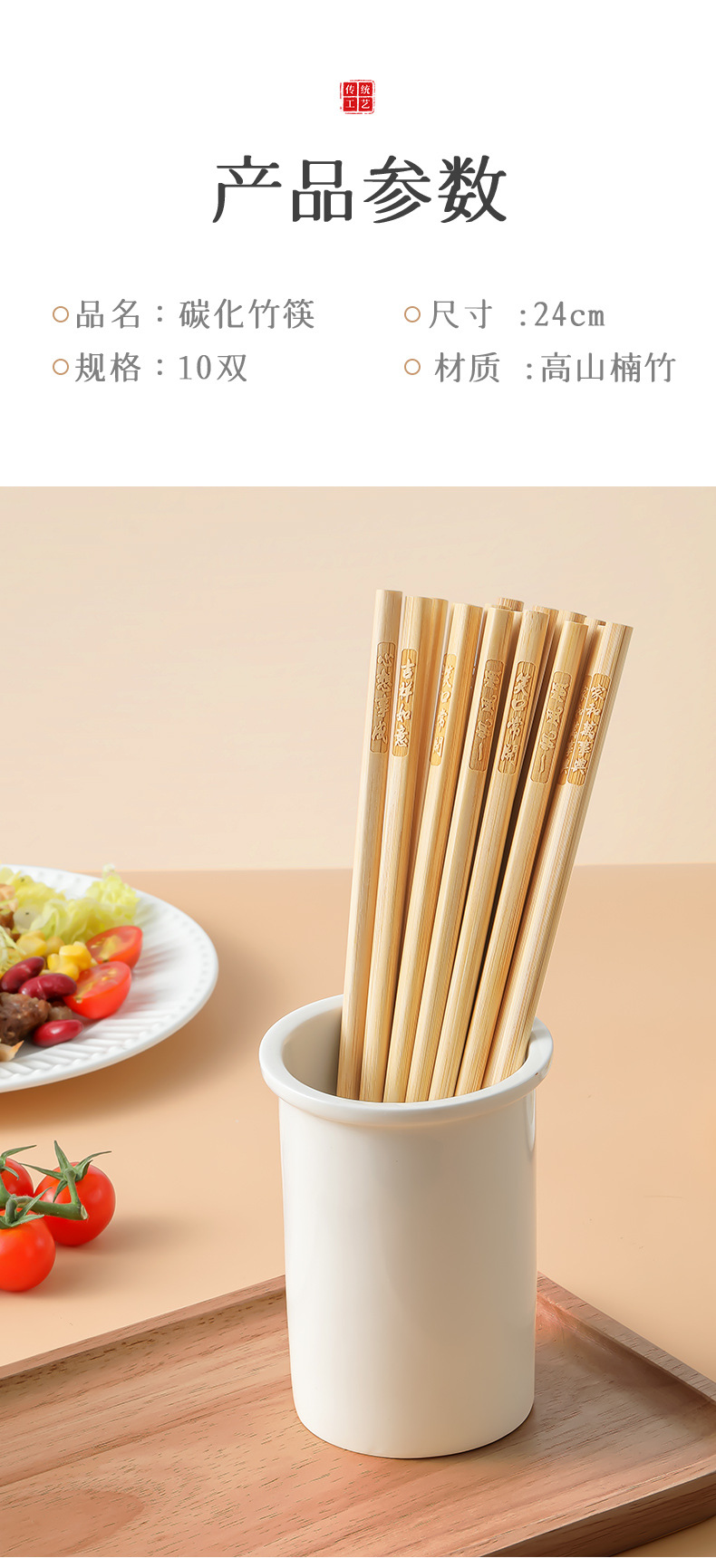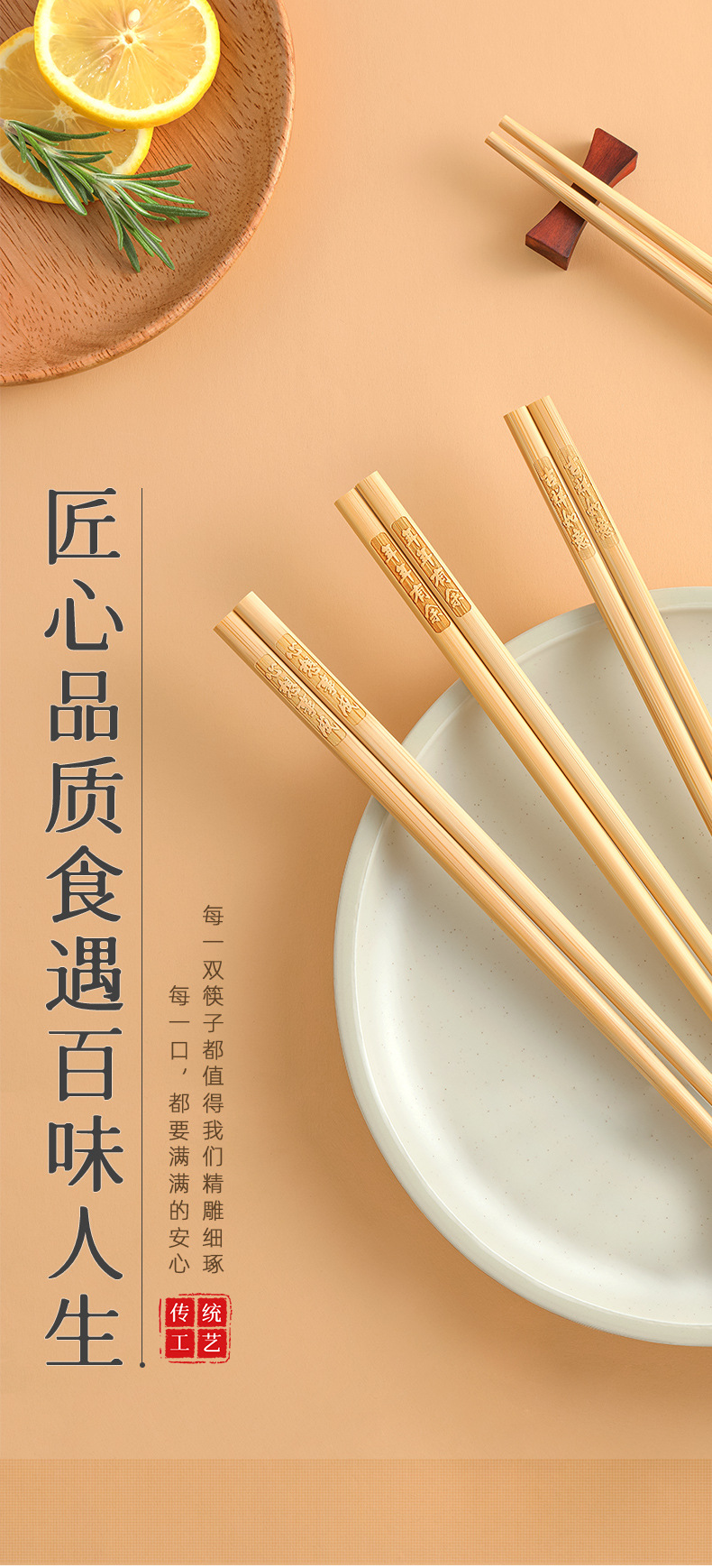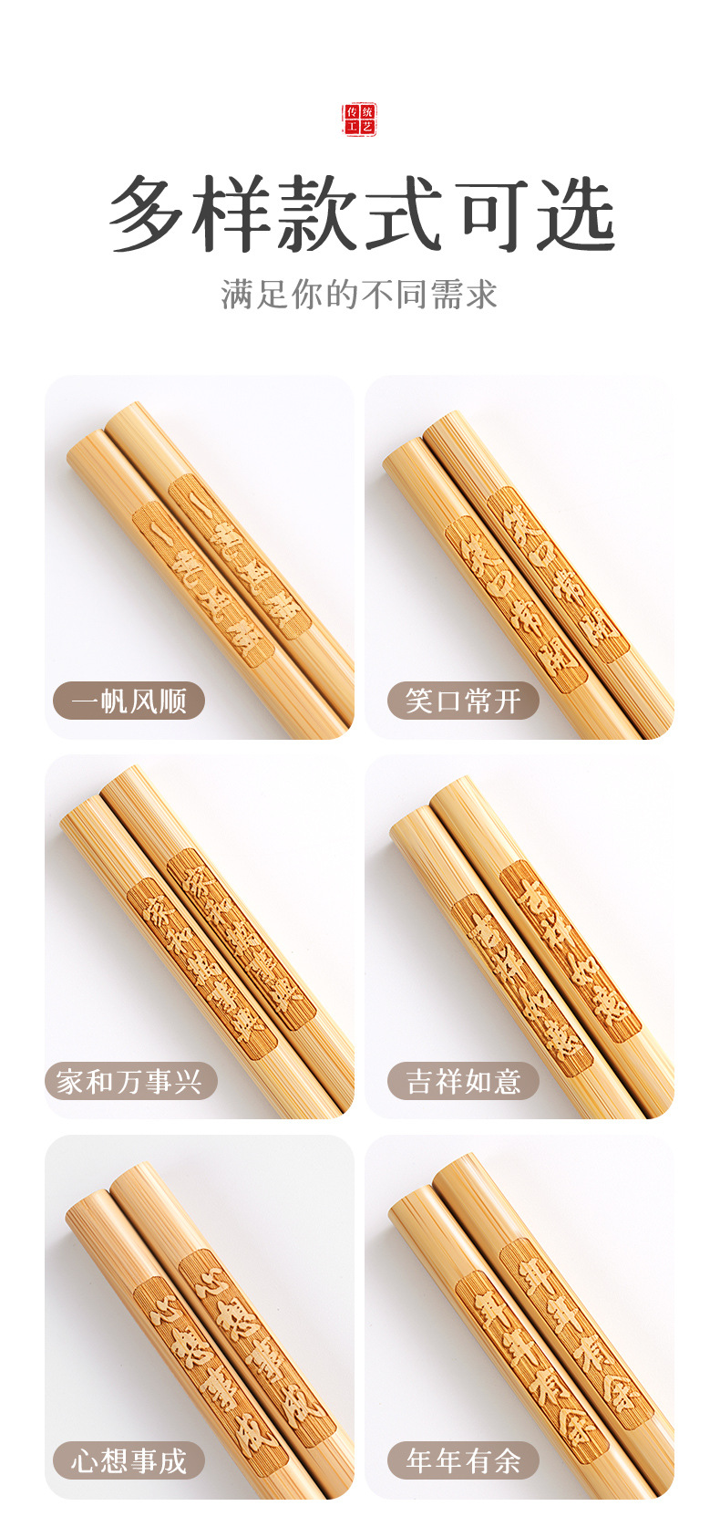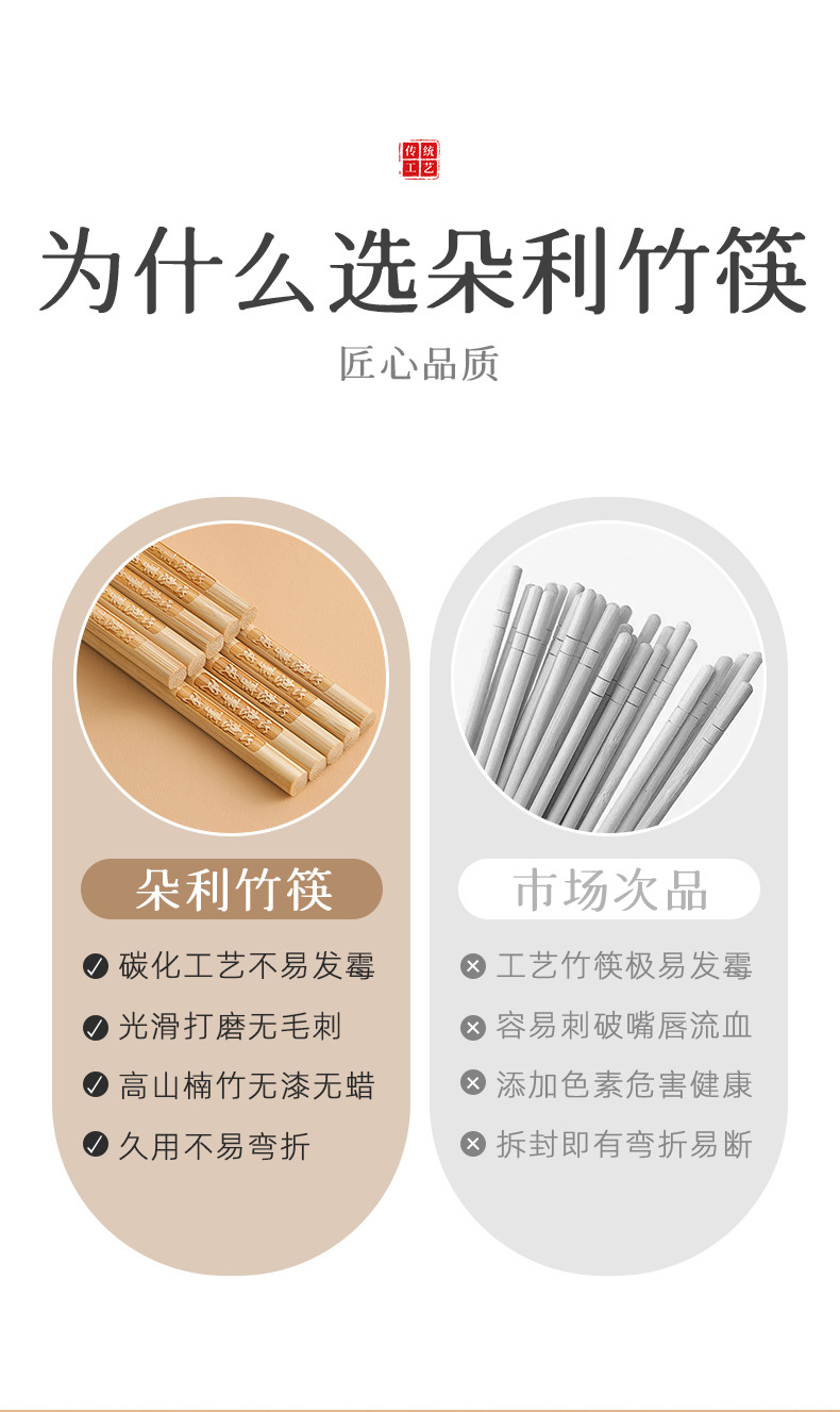 「9.9到手5双!高山楠竹筷」祝福筷楠竹筷子 家用10双天然无漆无蜡刻字防霉防滑厨房用品餐饮用具