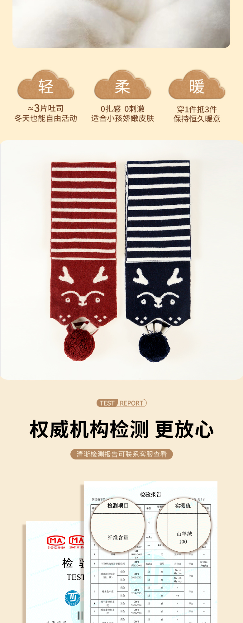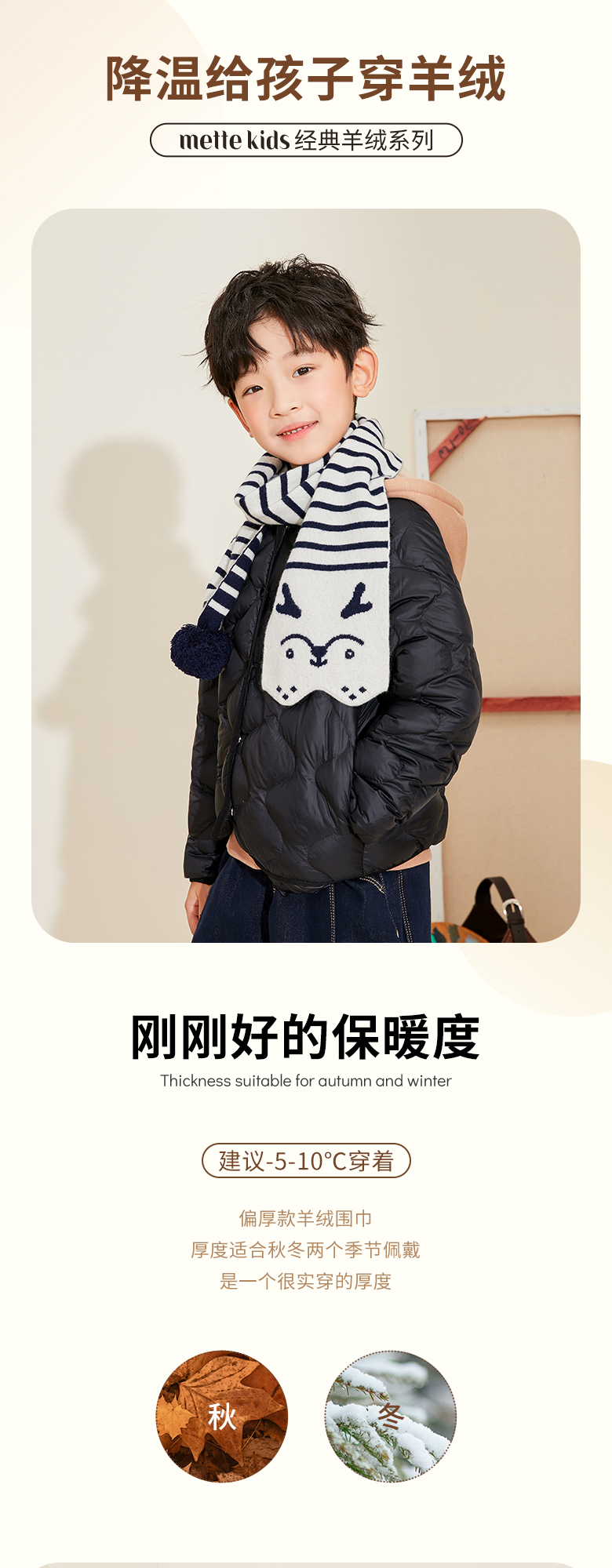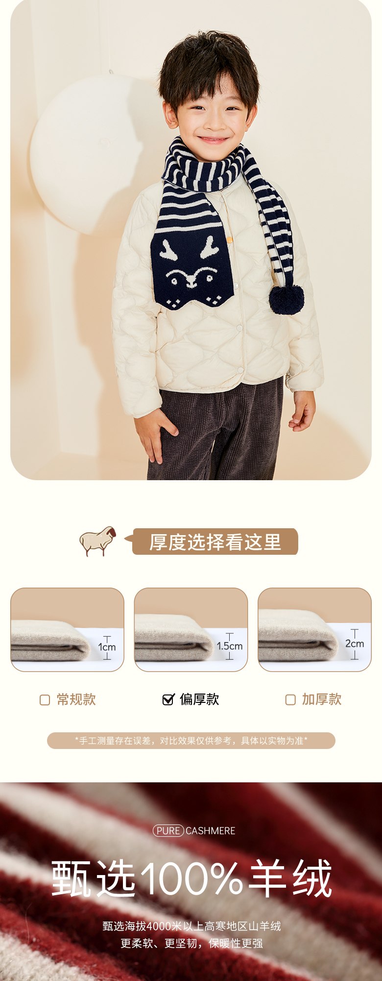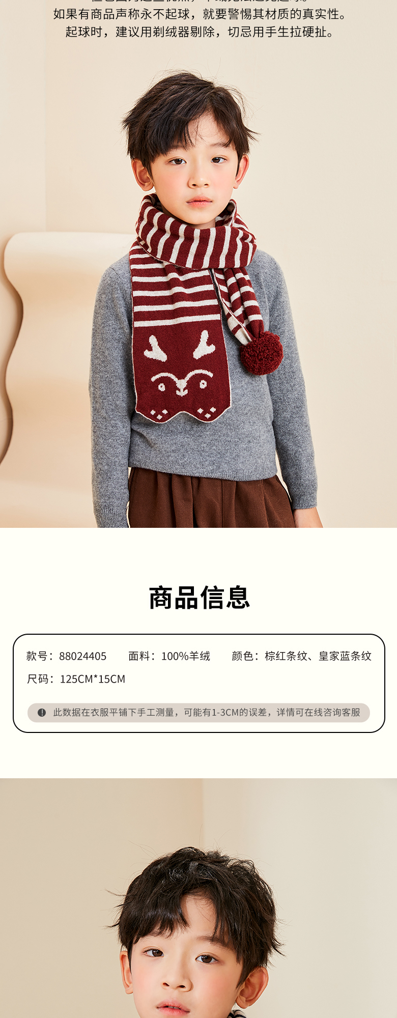 【童装条纹羊绒围巾】羊绒世家22年秋冬新品男宝长方形围巾舒适保暖围脖
