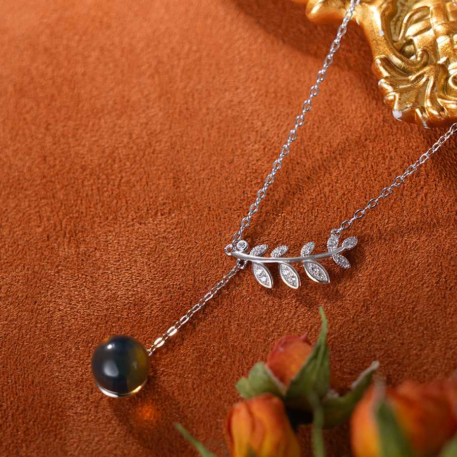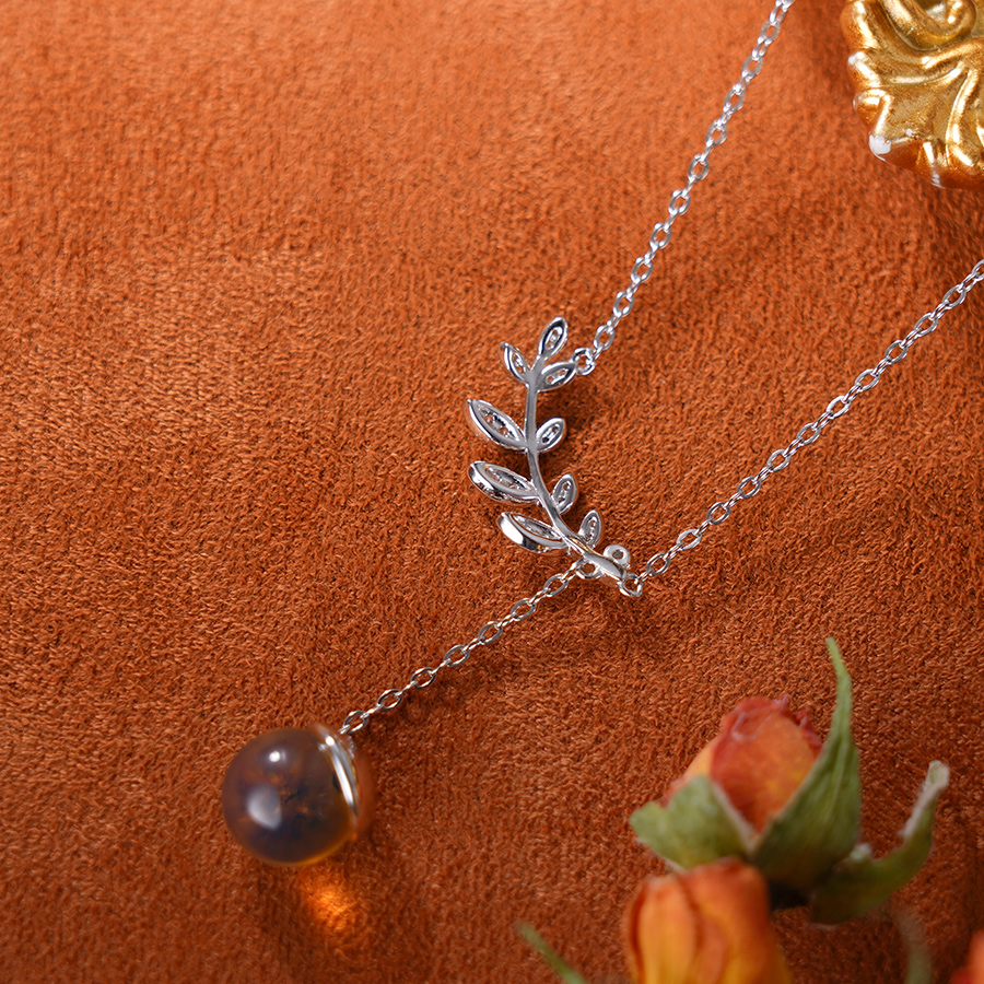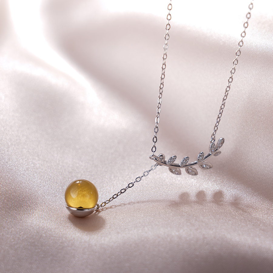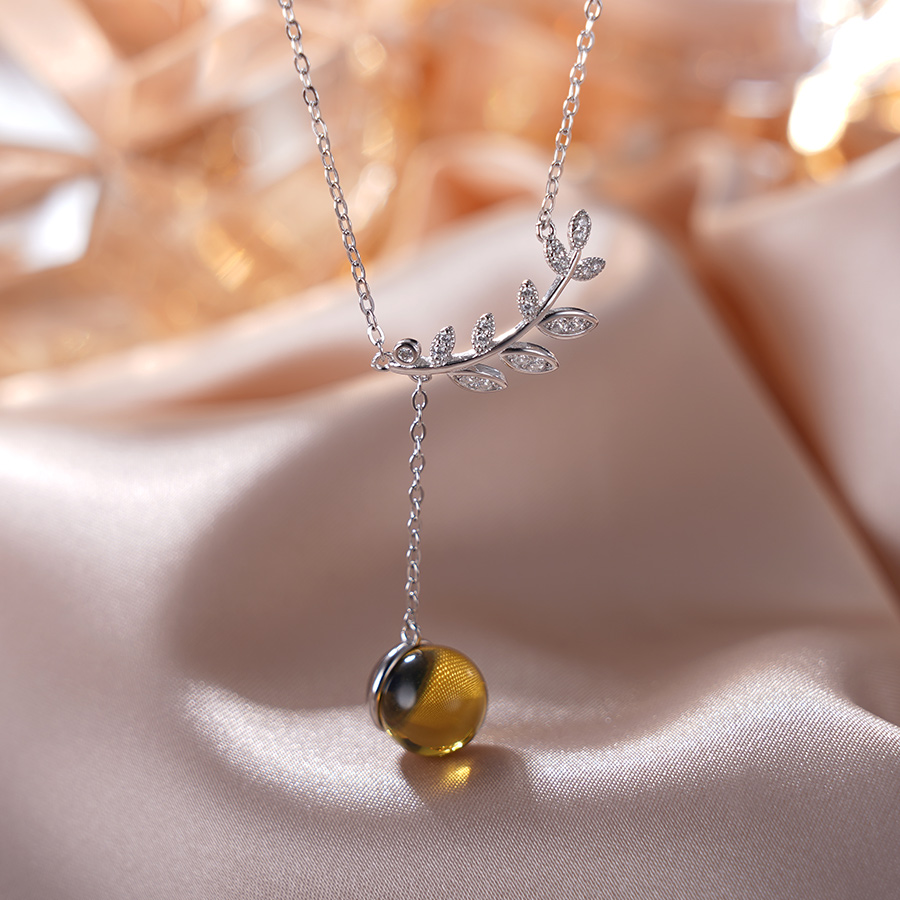 子佩集S925银【低绿枝】套链项链【D8153】纯银琥珀蓝珀2404