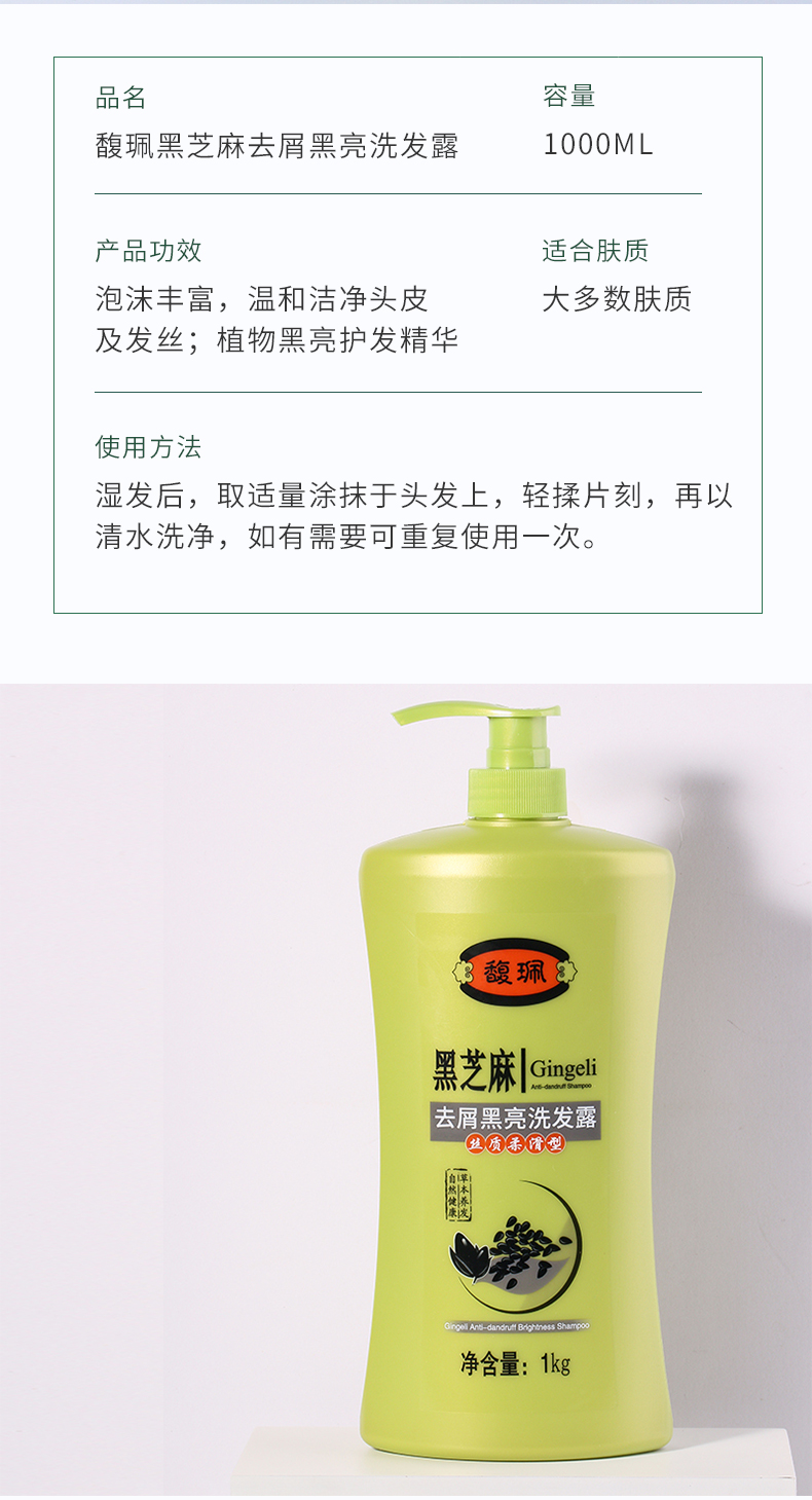 馥珮黑芝麻柔顺莹亮洗发露1L*2瓶