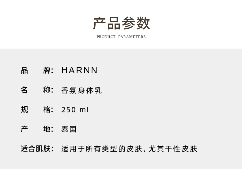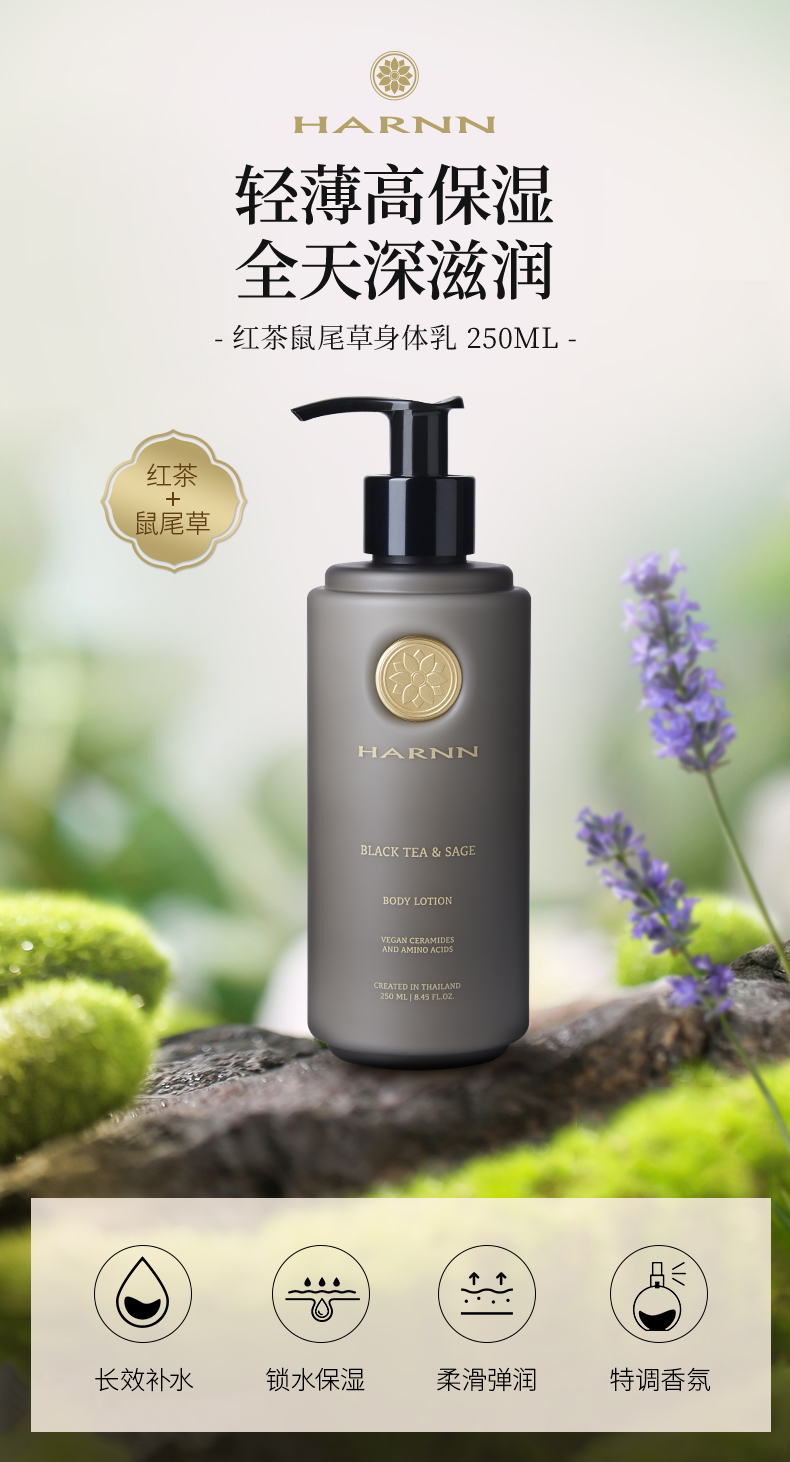 品牌直发 HARNN 精油身体乳250mL 茉莉花/白茶山茶花/红茶鼠尾草/杜松子雪松/杏仁百里