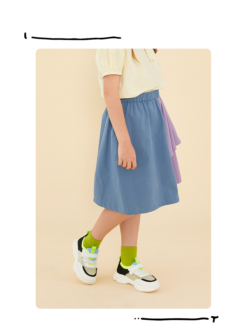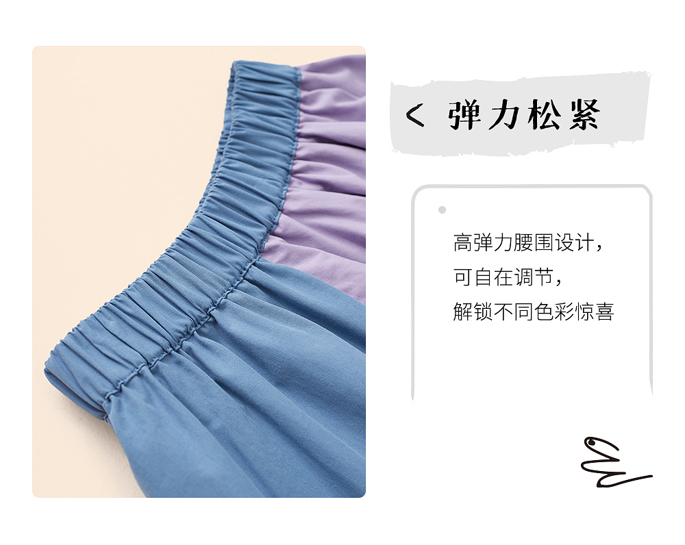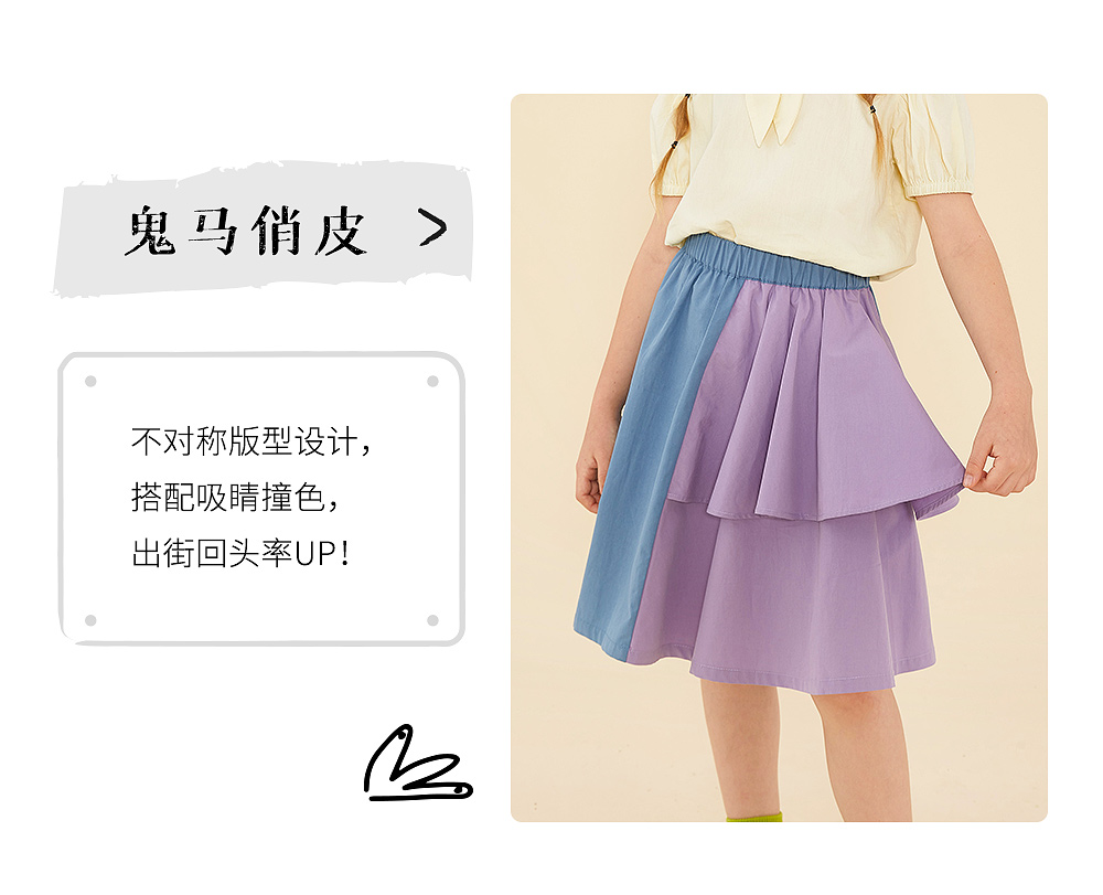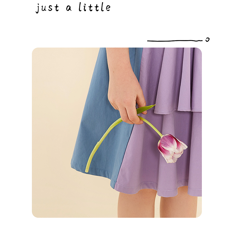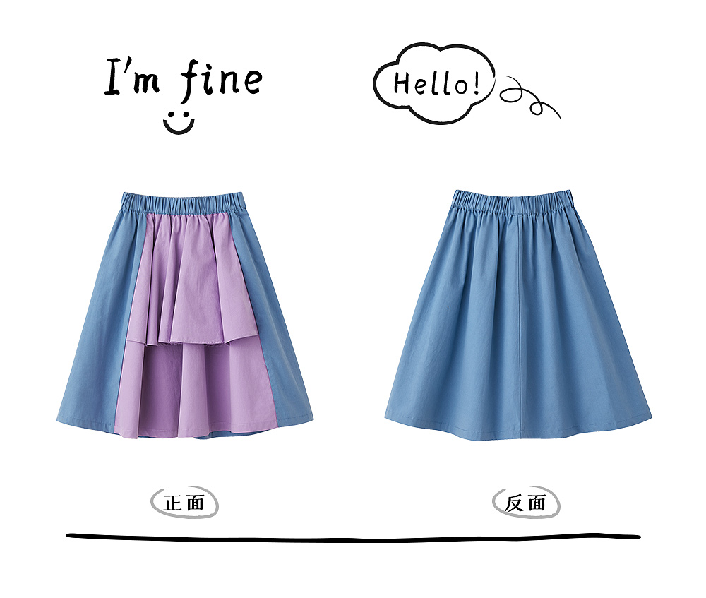 littletime鬼马撞色半裙 2021春装新款不对称设计俏皮中长裙