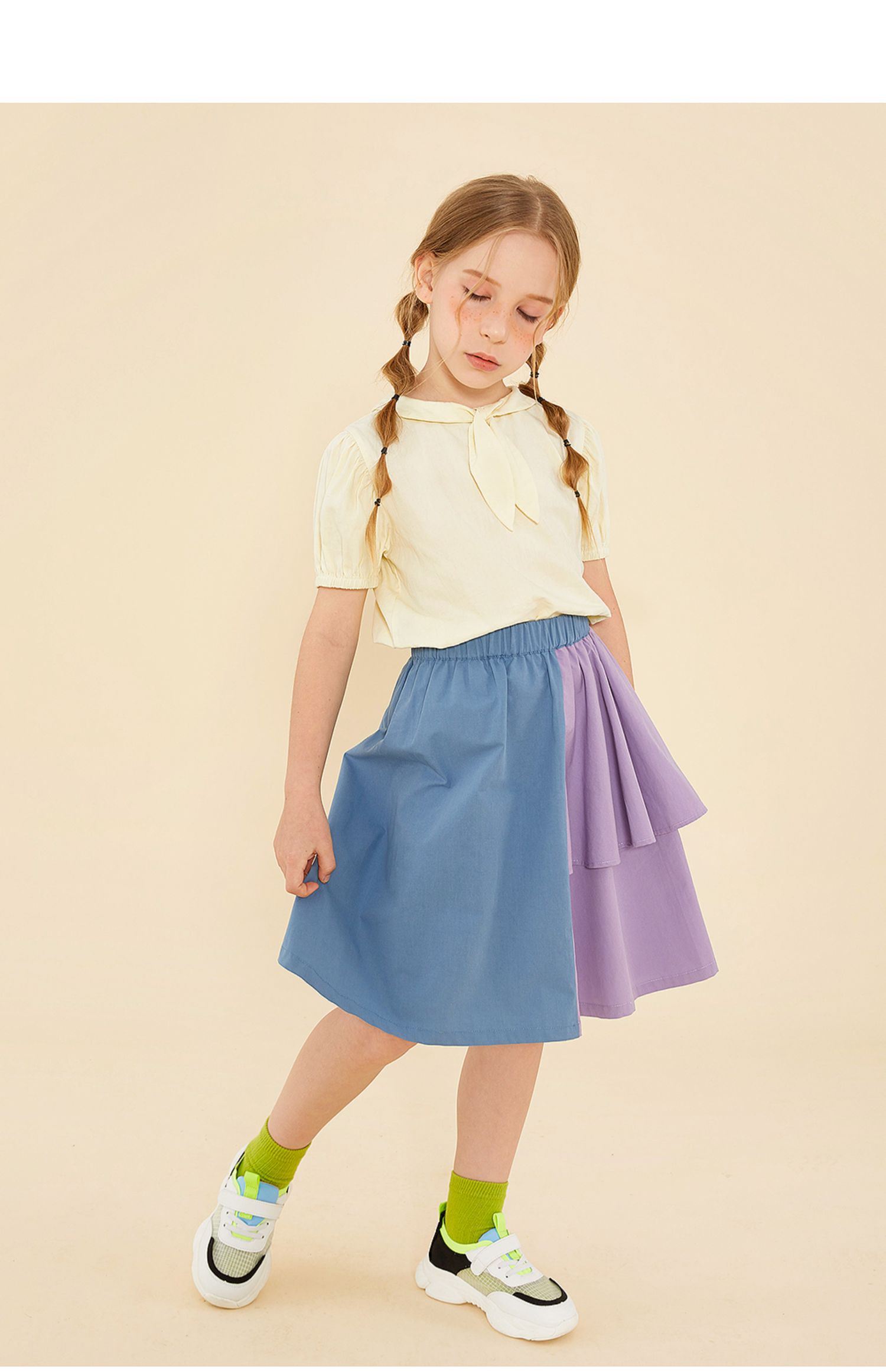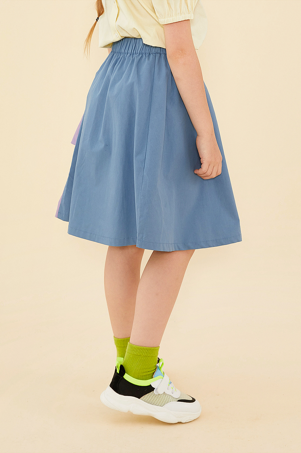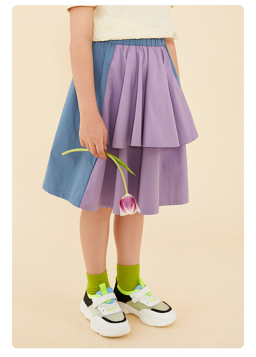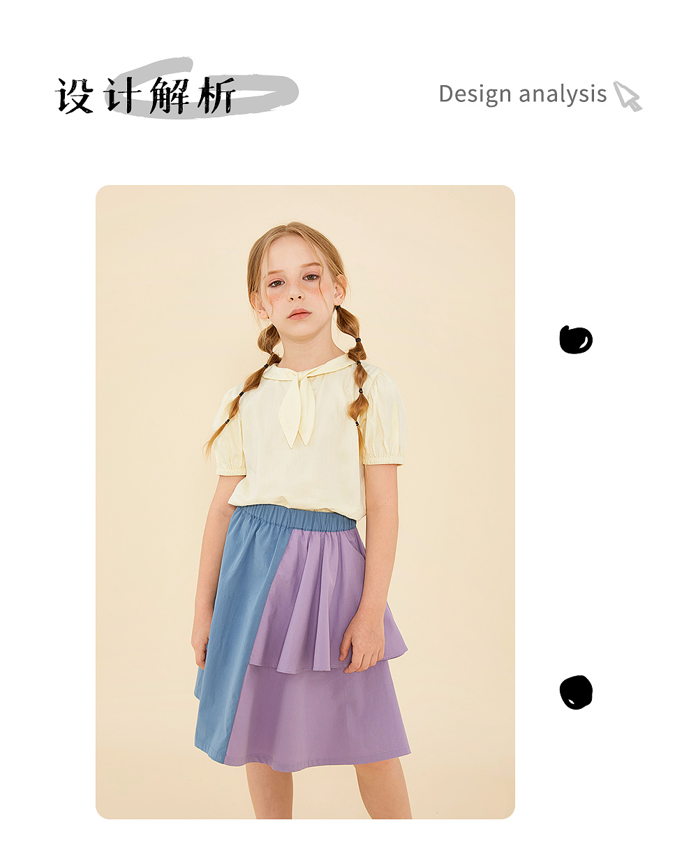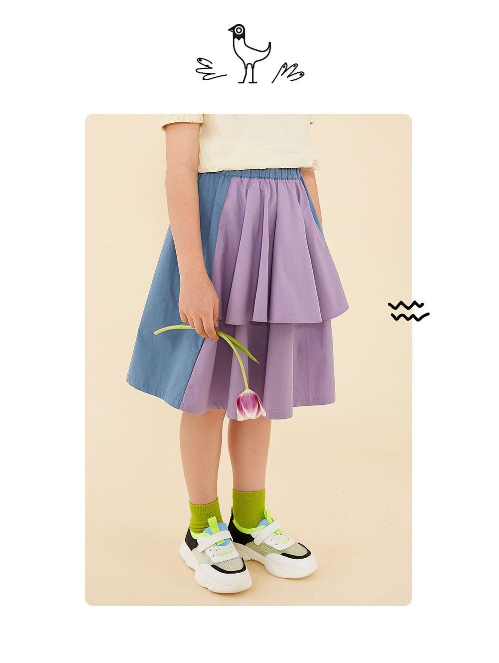 littletime鬼马撞色半裙 2021春装新款不对称设计俏皮中长裙