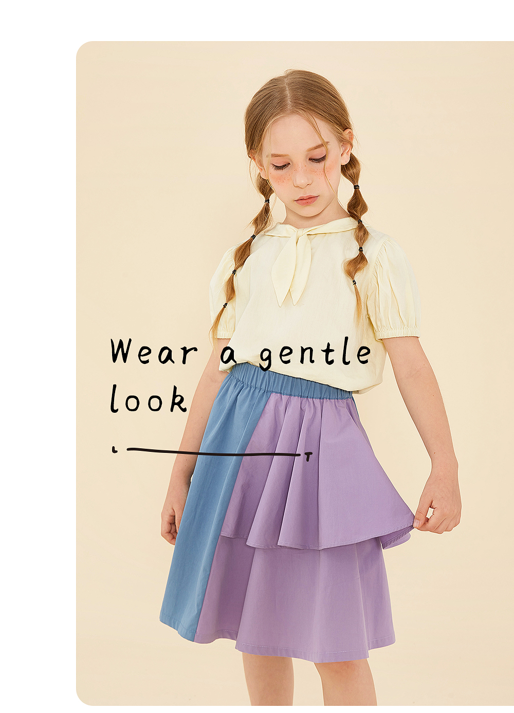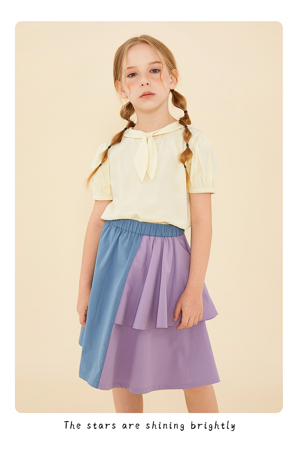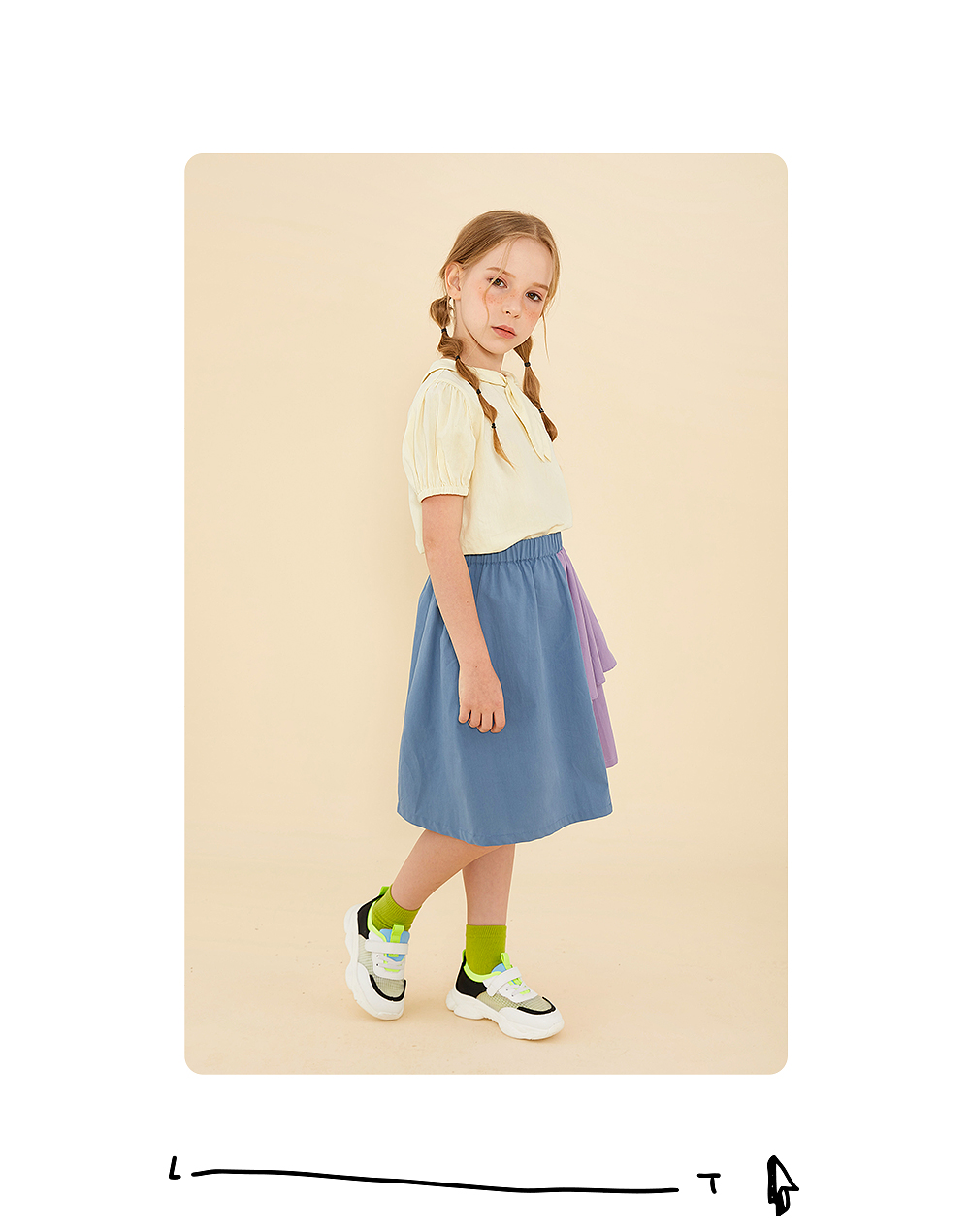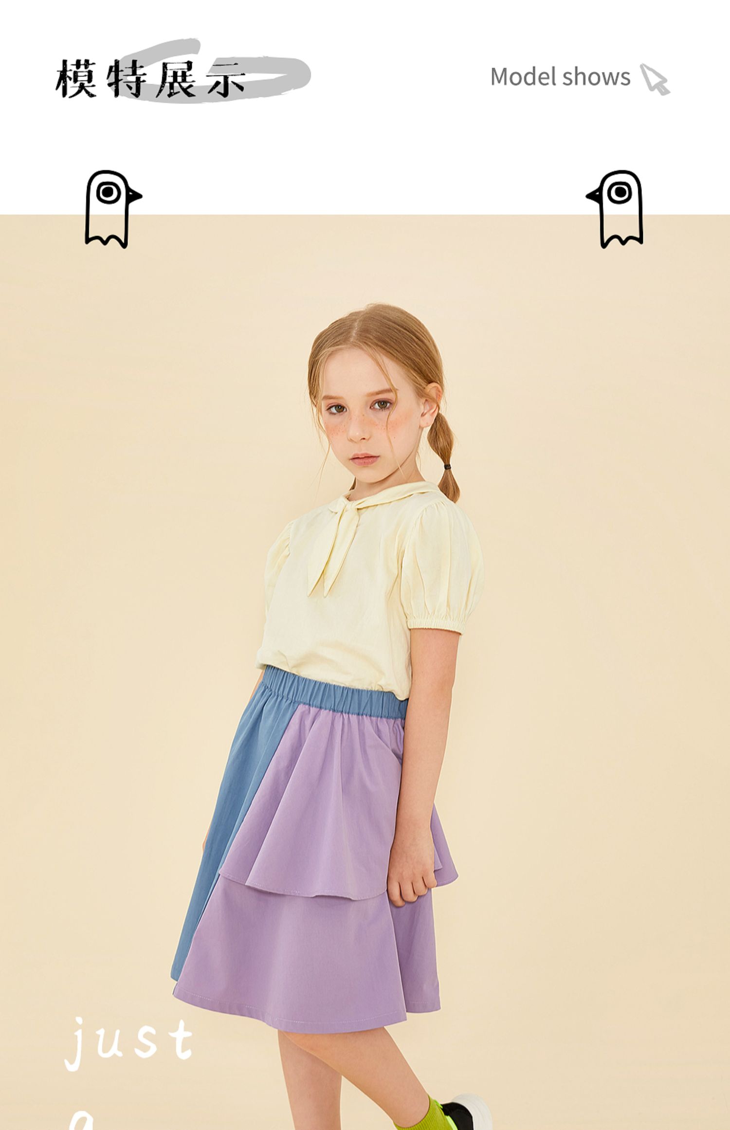 littletime鬼马撞色半裙 2021春装新款不对称设计俏皮中长裙