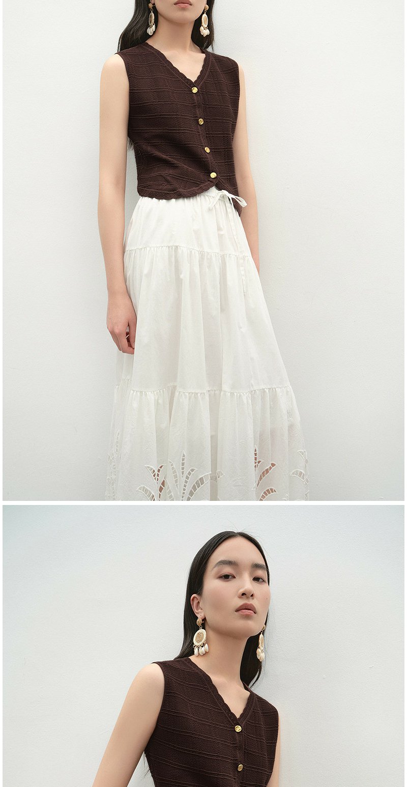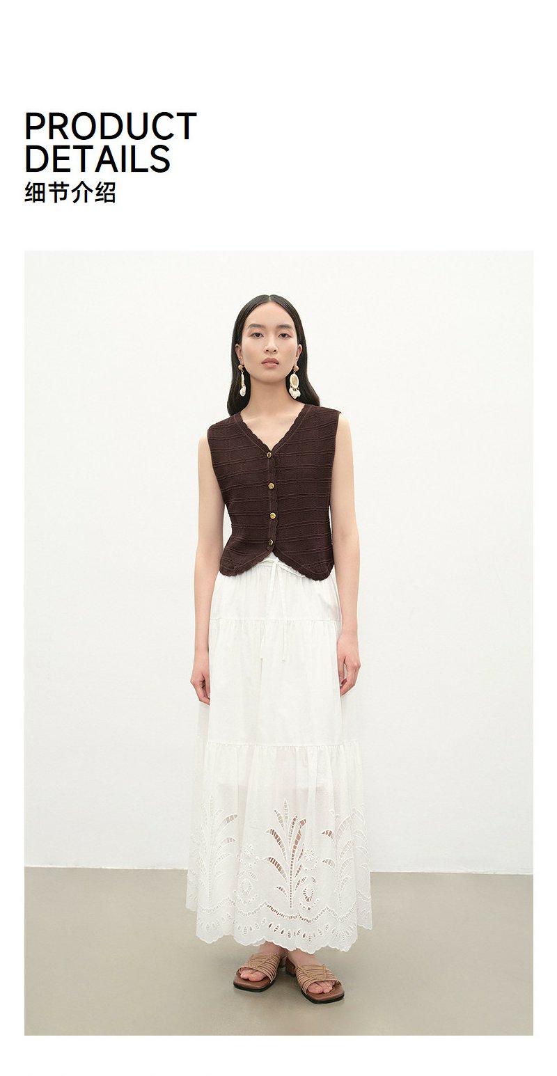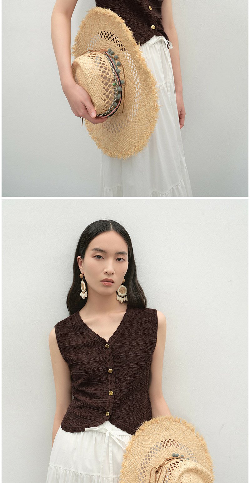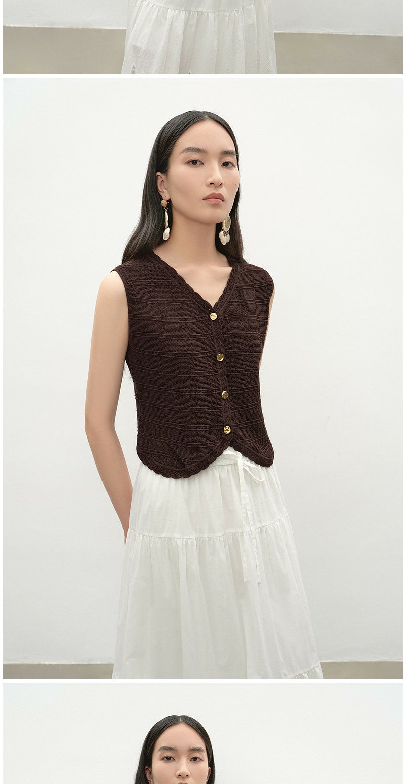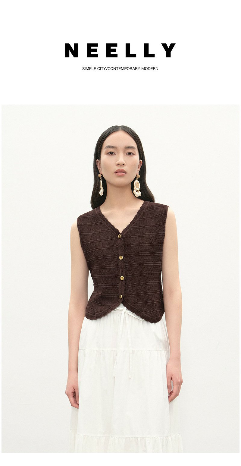 NEELLY纳俪商场同款夏季新款休闲V领针织开衫马甲女修身舒适上衣N26054A04401