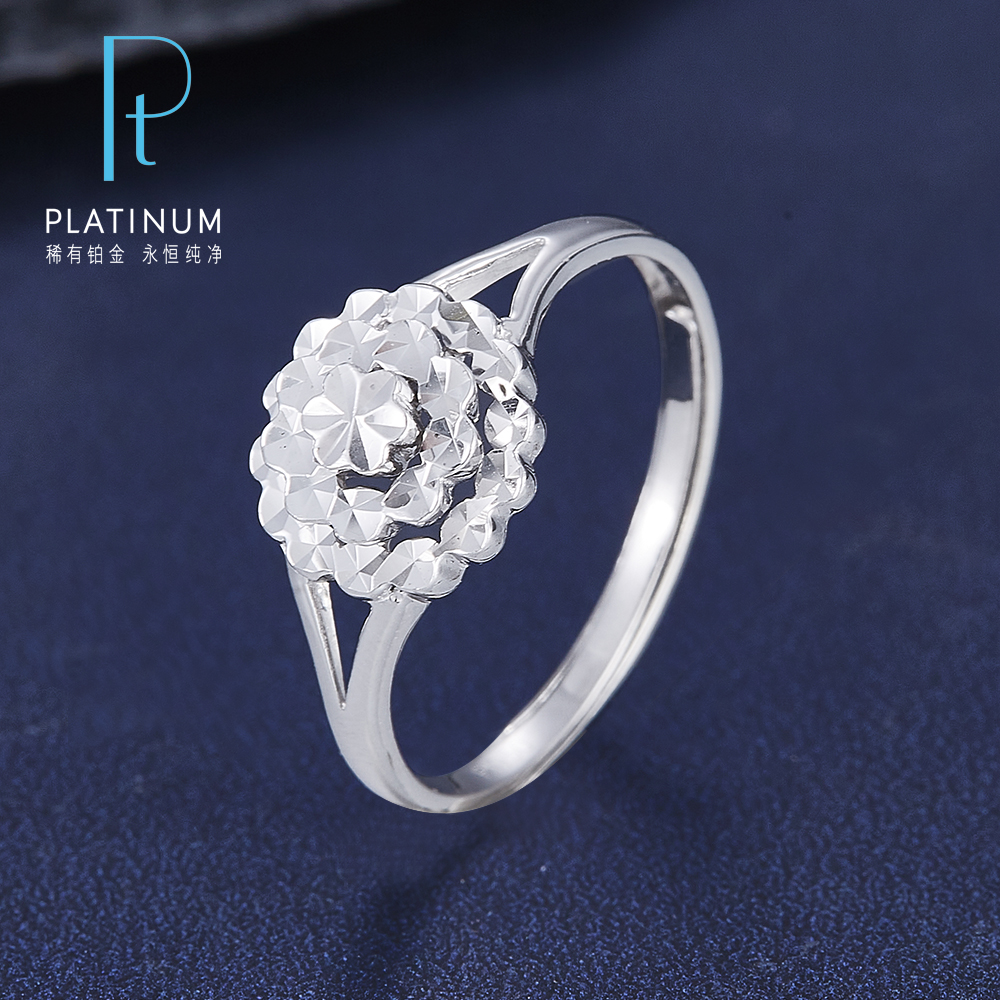 【限时8.8折】【线上铂金馆】PT950 【国际铂金协会】铂金花朵双层仿钻戒活口女戒(BJZ00062)预售产品下单后不退款不退货不换货不补差价)