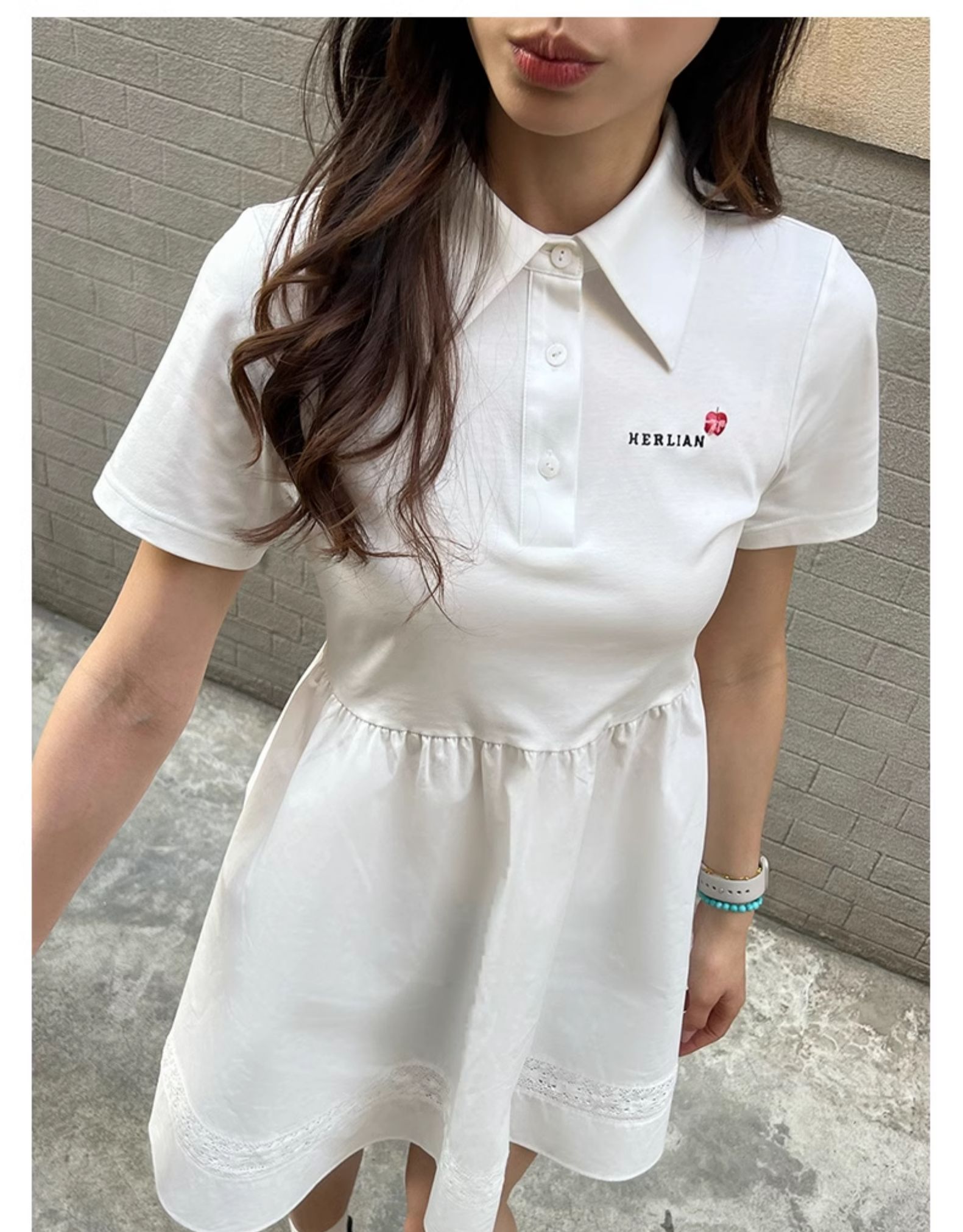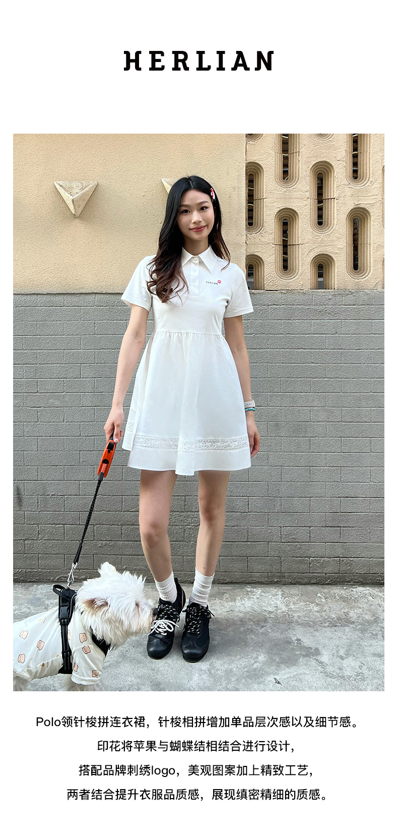 Herlian2025年春夏新品复古POLO领修身短袖连衣裙