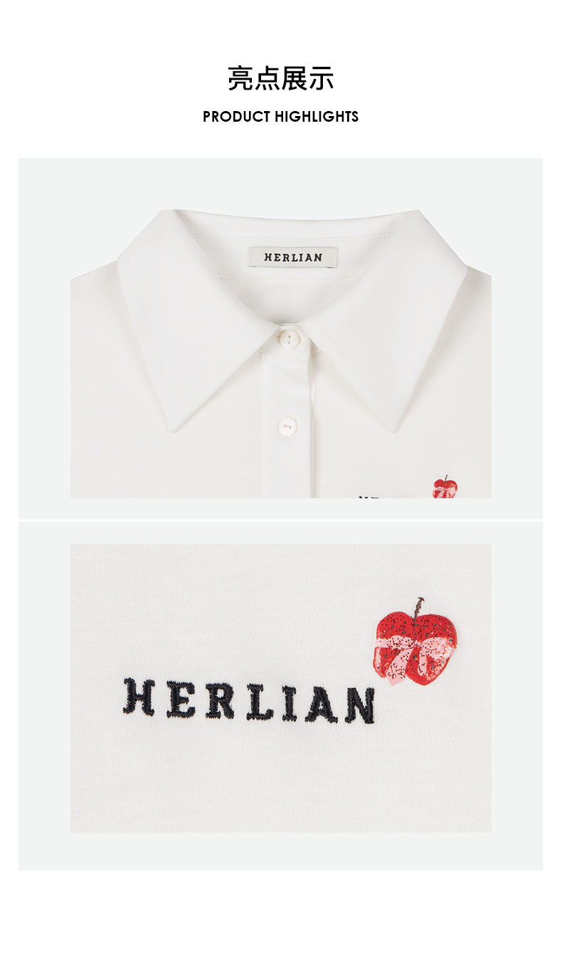 HERLIAN 2025夏季新品苹果蝴蝶结印花圆领修身短款T恤女百搭上衣