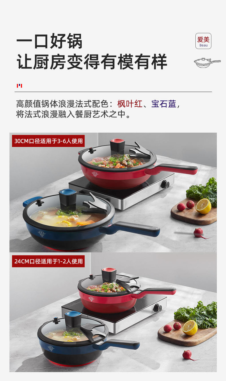 马克西姆多功能微压不粘锅,煎炒炖炸煮一锅多用,双效不粘更耐用