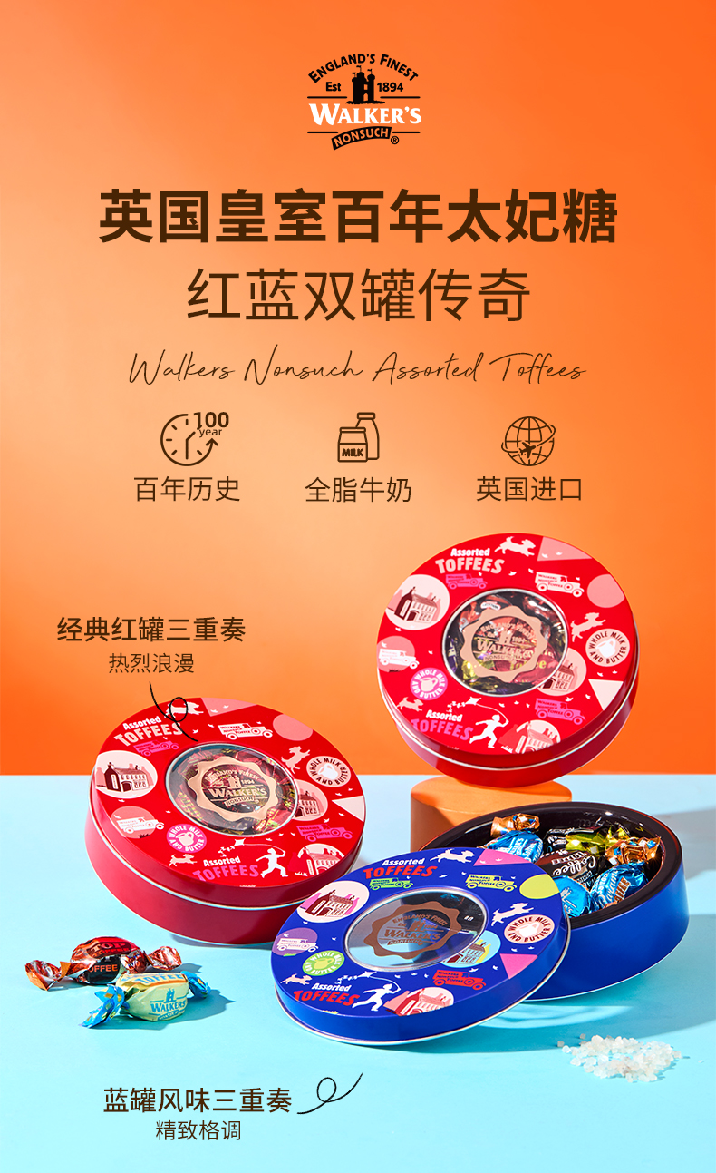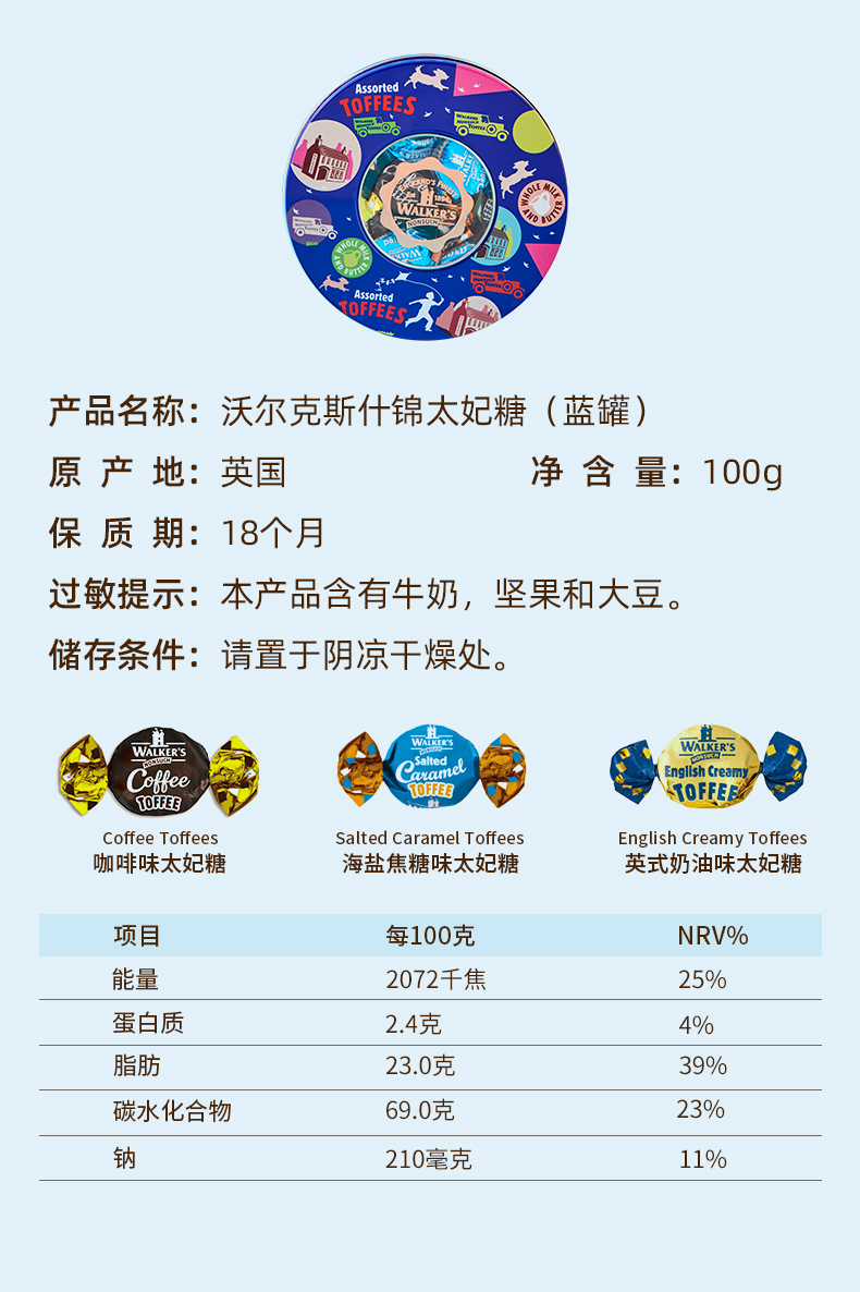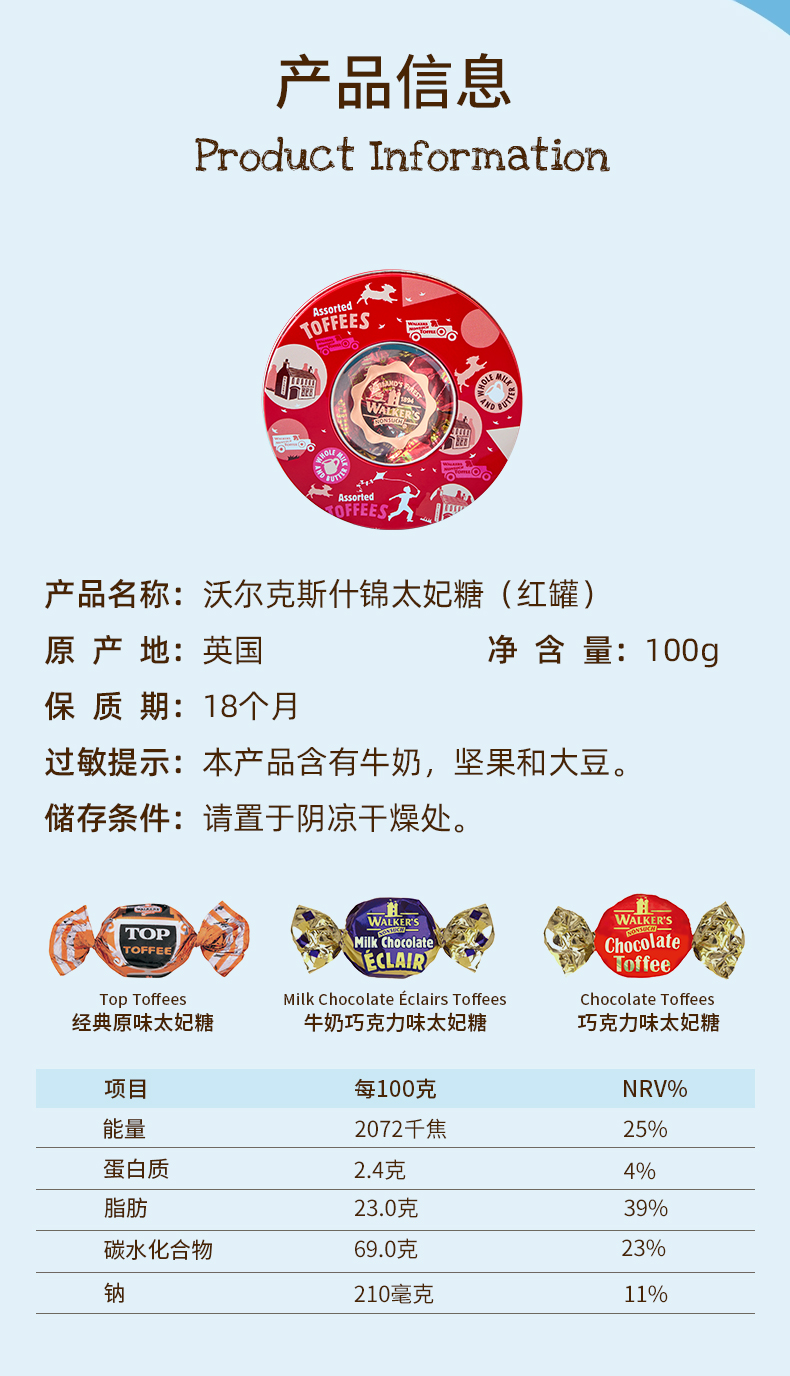 沃尔克斯什锦太妃糖蓝罐/红罐100g 红蓝双罐传奇醇香丝滑 062621/062622