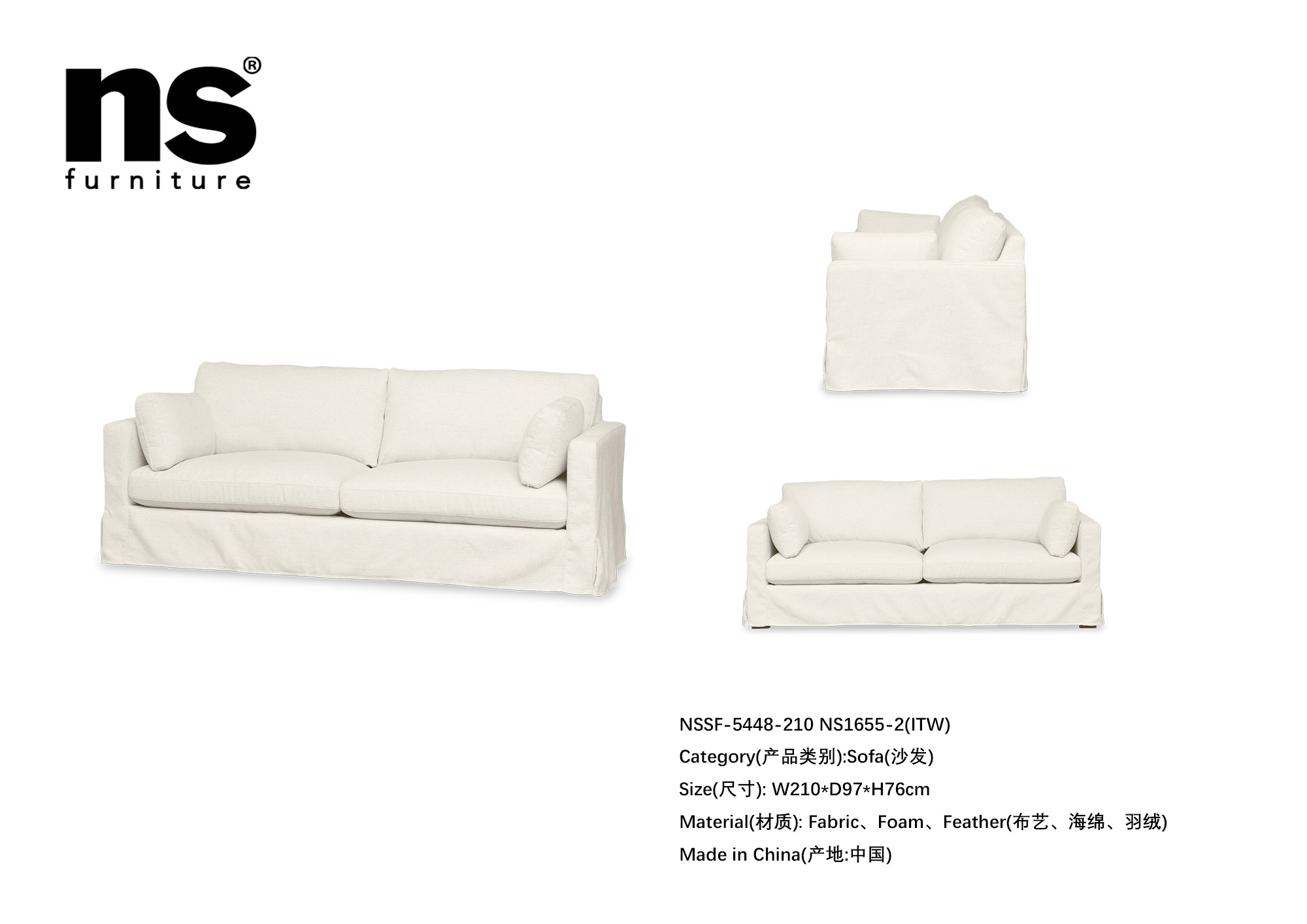 NS家居ns furniture软包布艺三人位沙发NSSF-5448-210