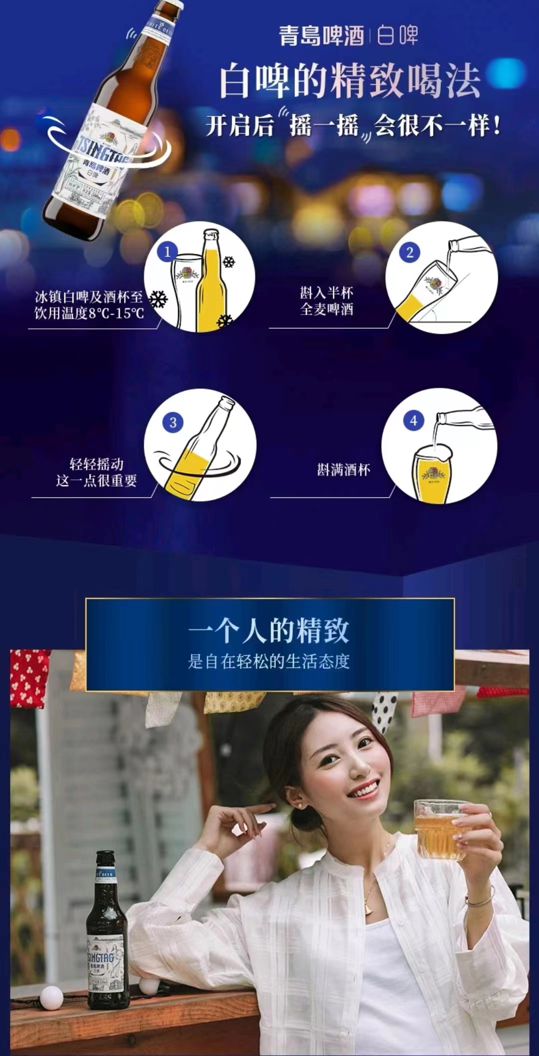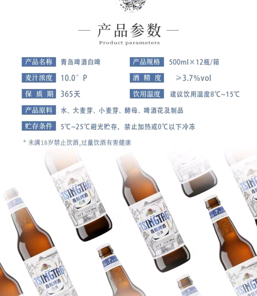 青岛啤酒全麦白啤(瓶装) 酒精度:3.7度 麦芽度:10度