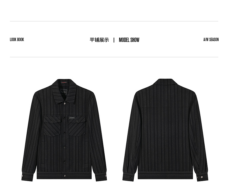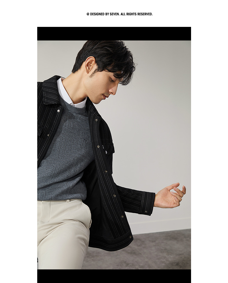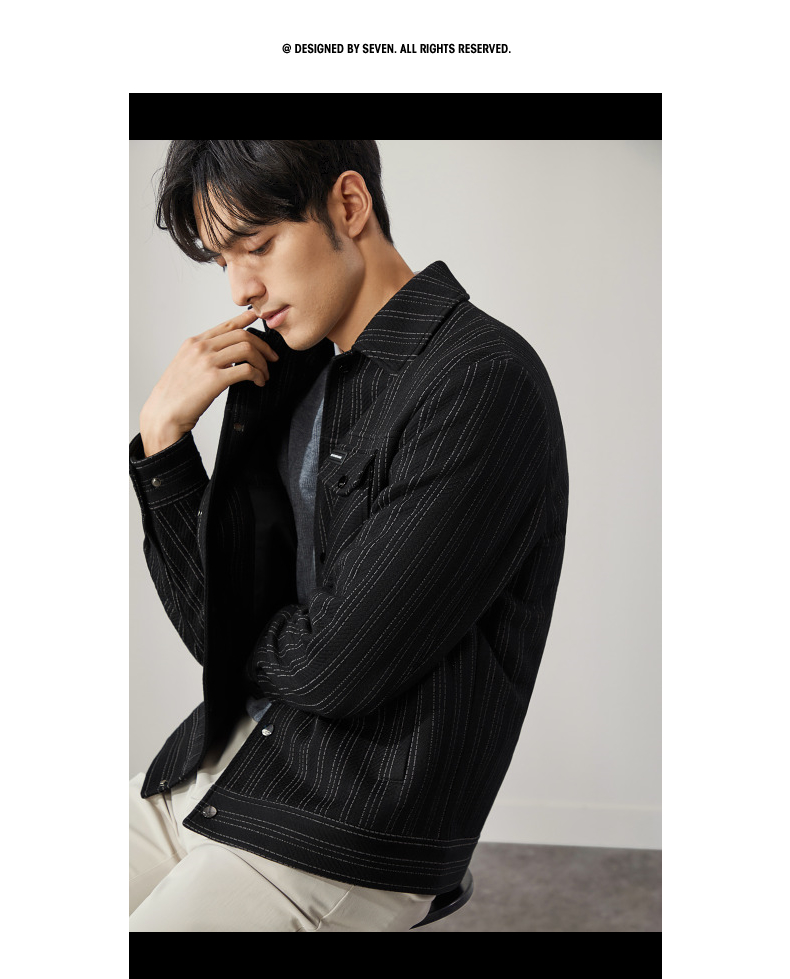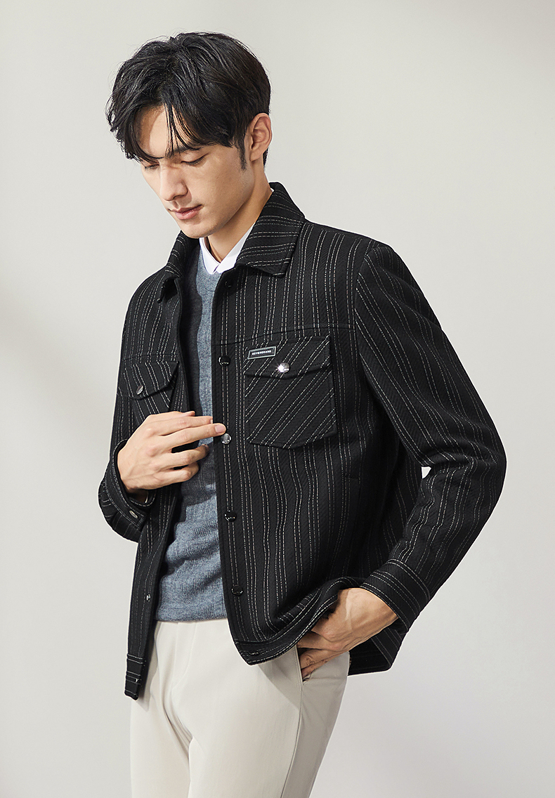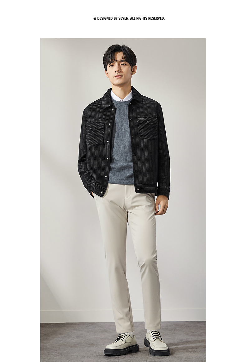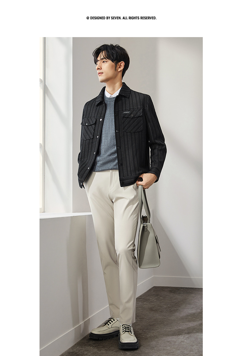 柒牌男士翻领夹克秋冬2024新款时尚条纹提花工装风休闲茄克衫外套 127K70930