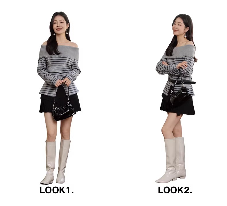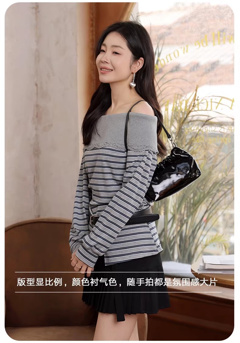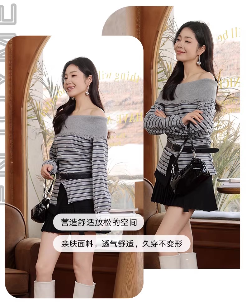 【门店同款】ENJOY春季“柔权主义”一字肩条纹T 169193071