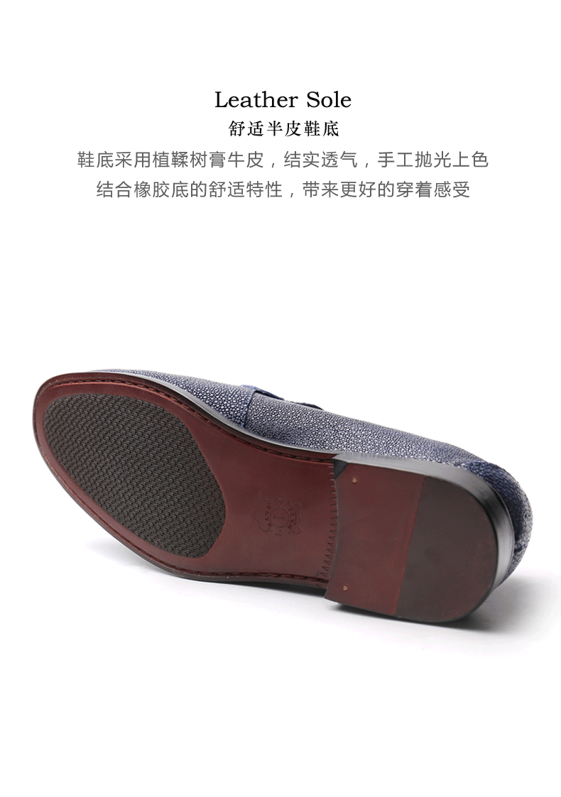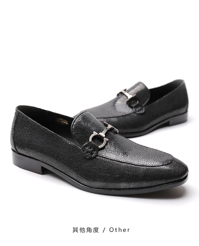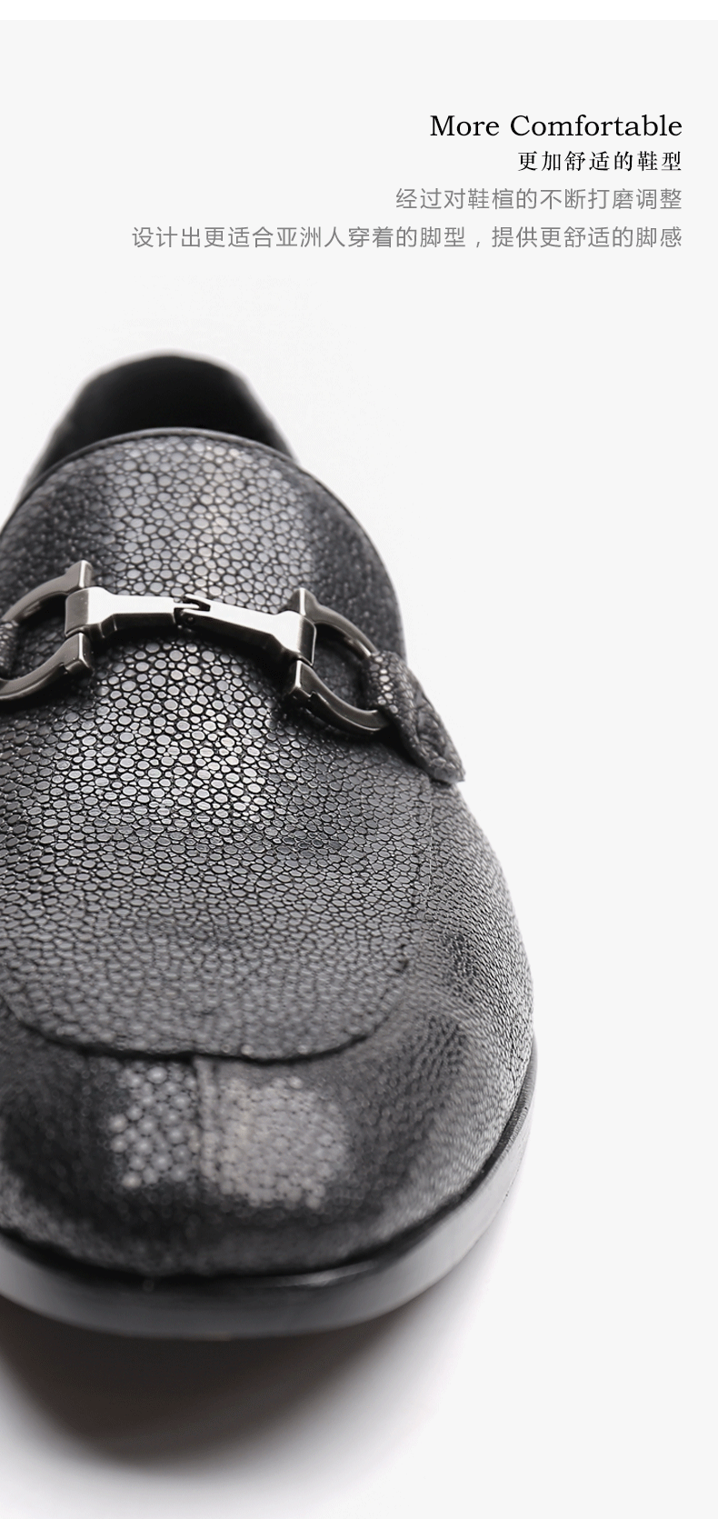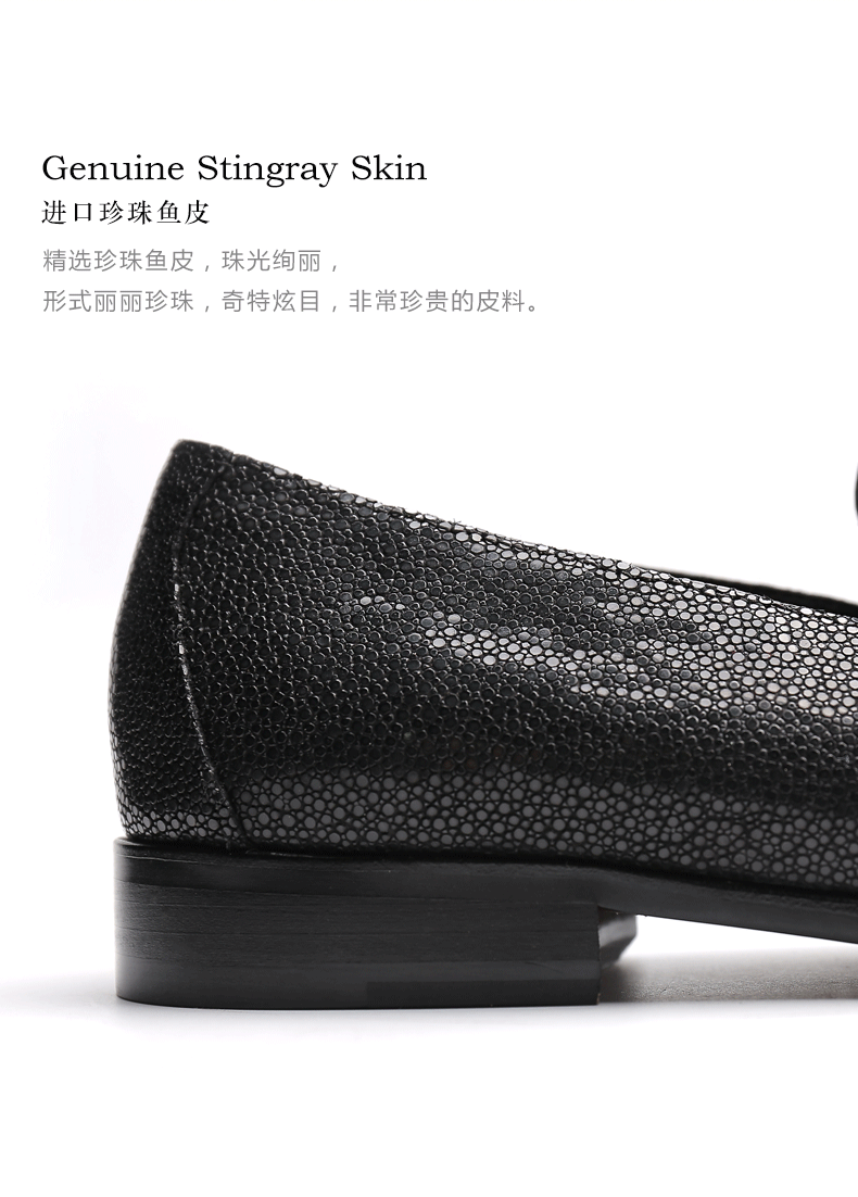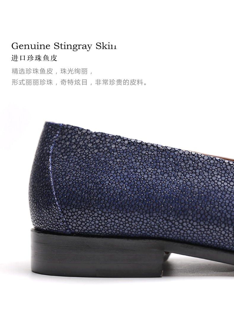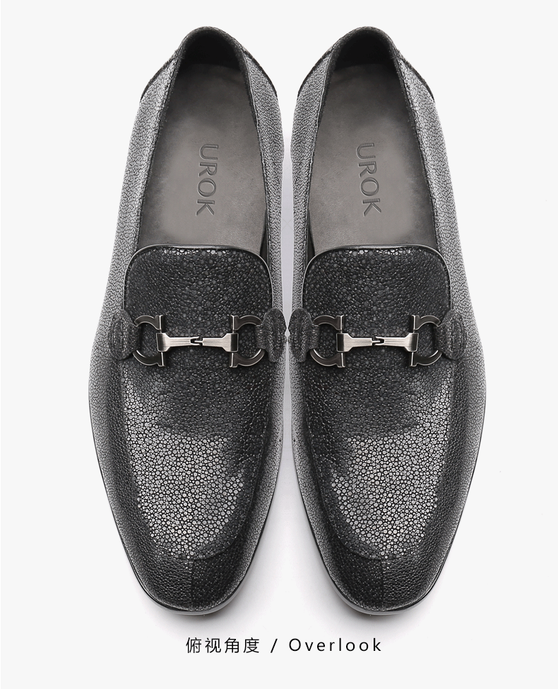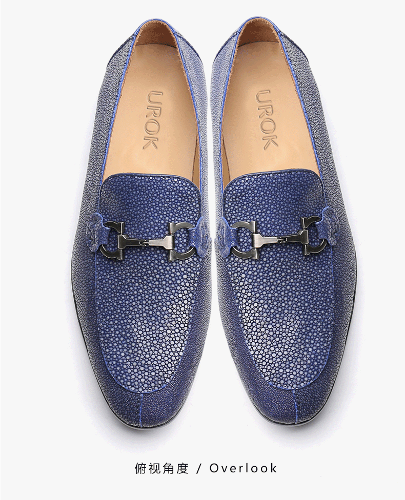 【新品】UROK珍珠鱼皮男士休闲乐福鞋 手工男鞋