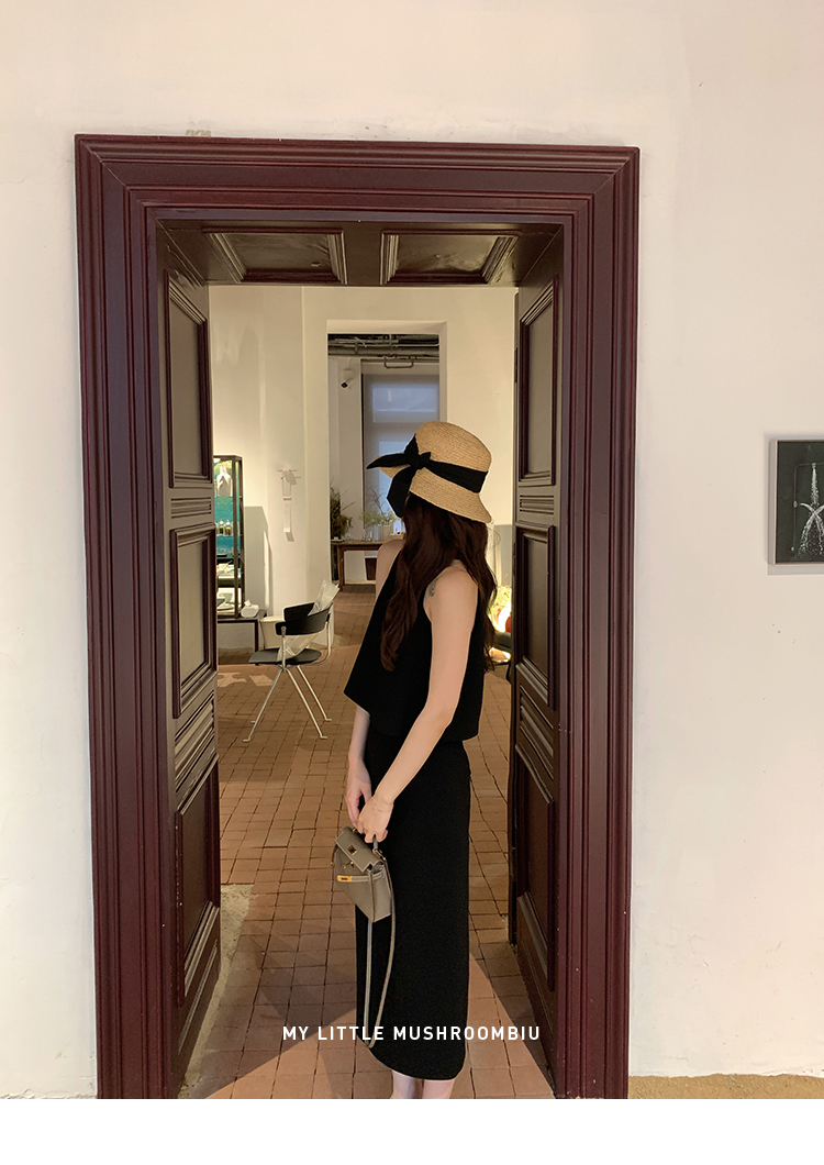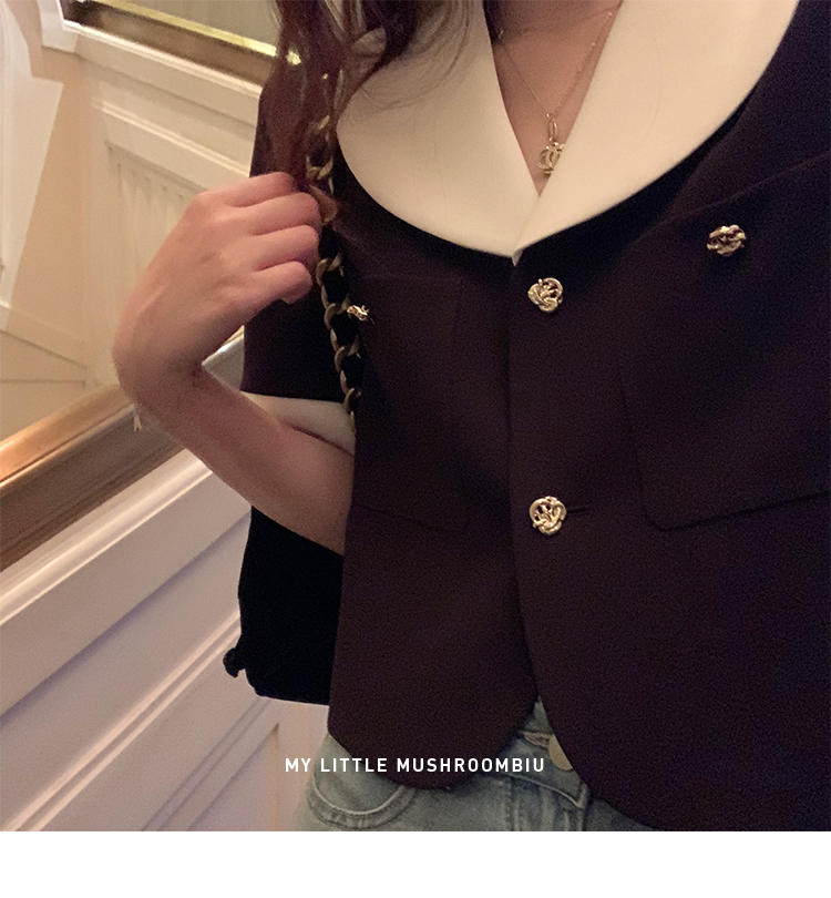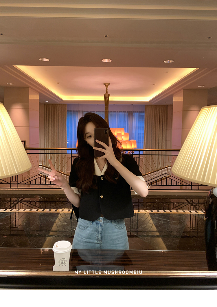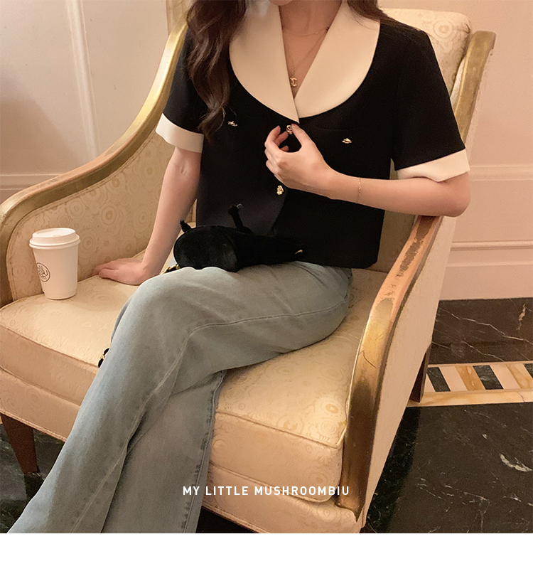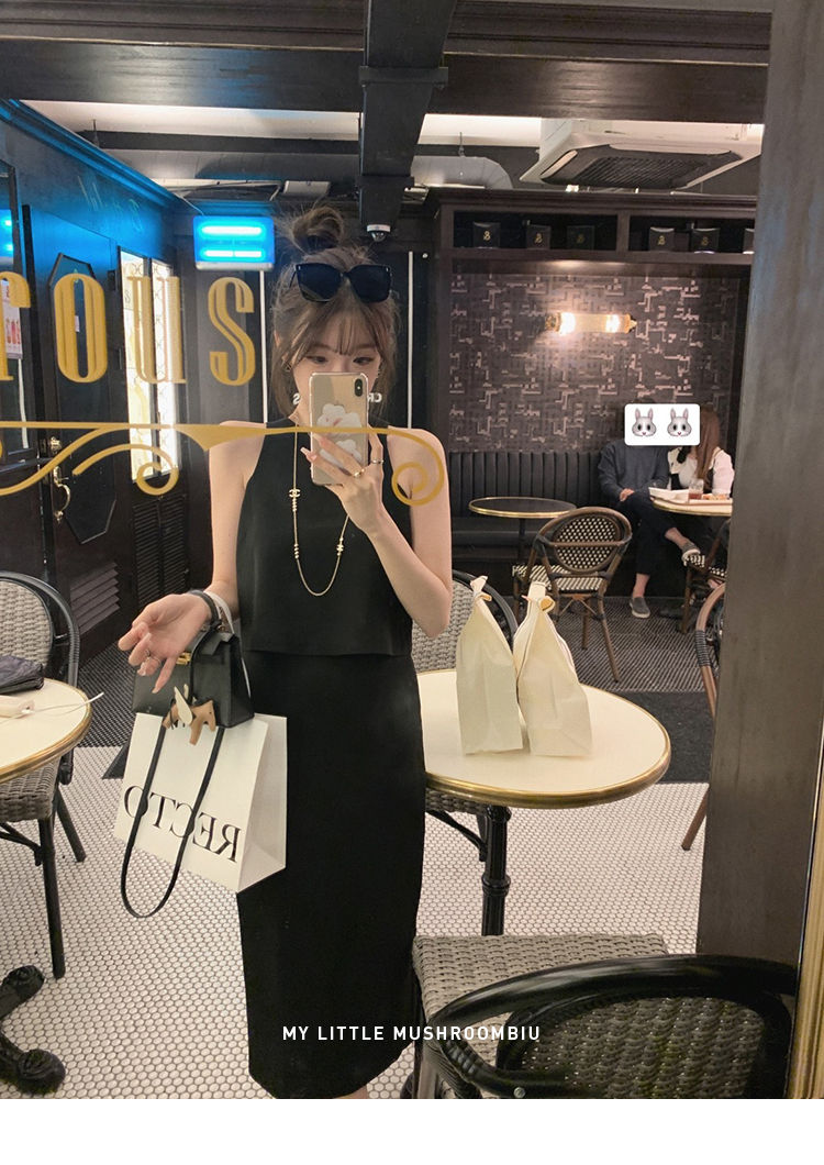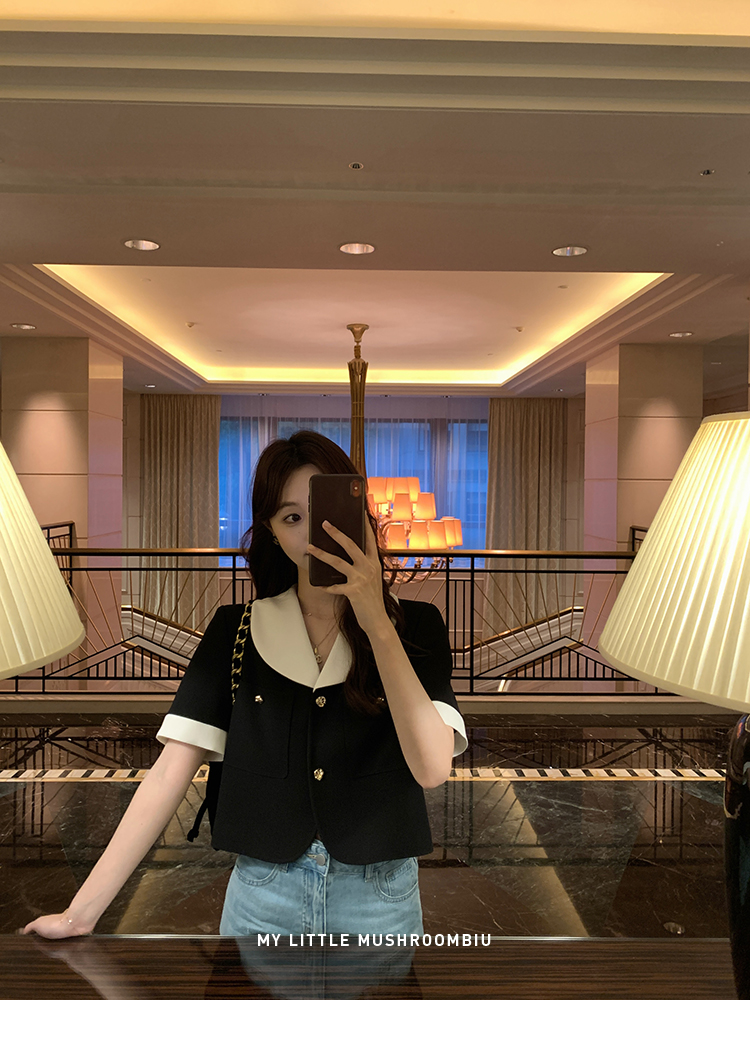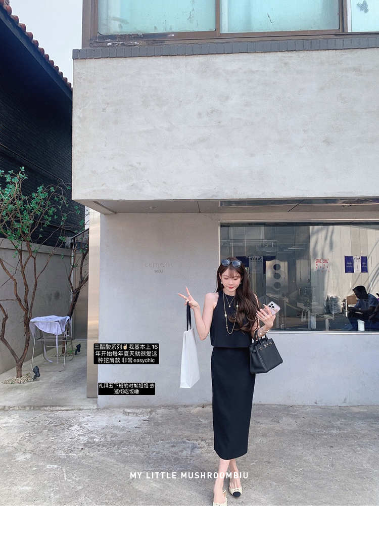 金蘑菇菇 招牌 都市感三醋酸系列/赫本黑色两件套装短袖西装裙子