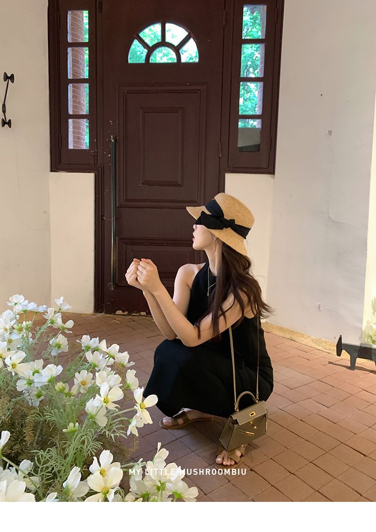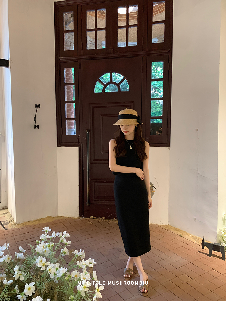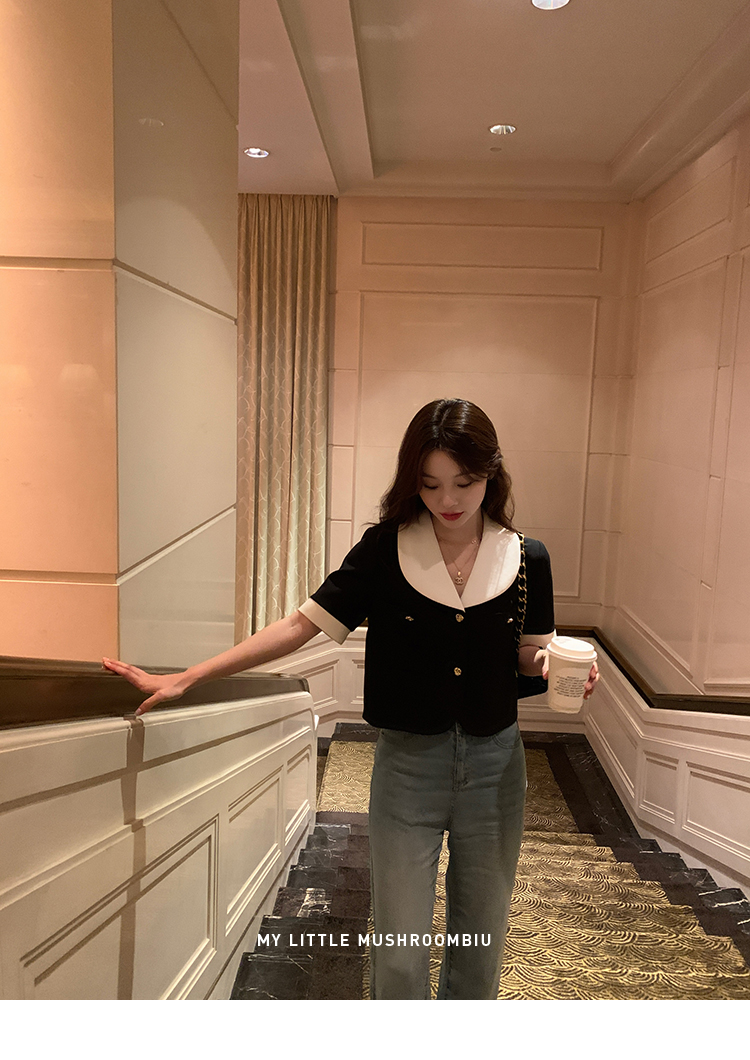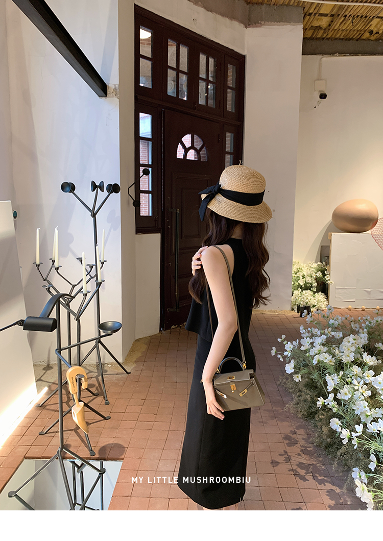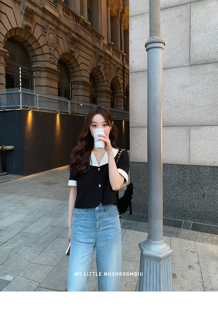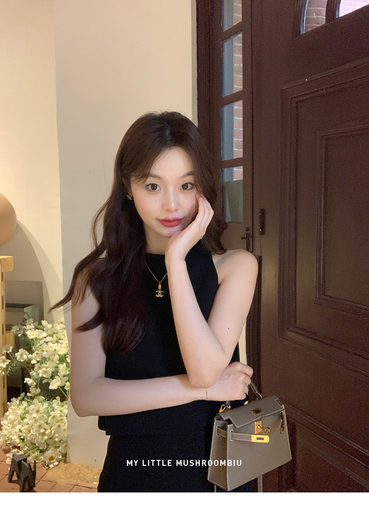 金蘑菇菇 招牌 都市感三醋酸系列/赫本黑色两件套装短袖西装裙子