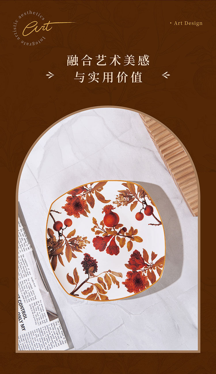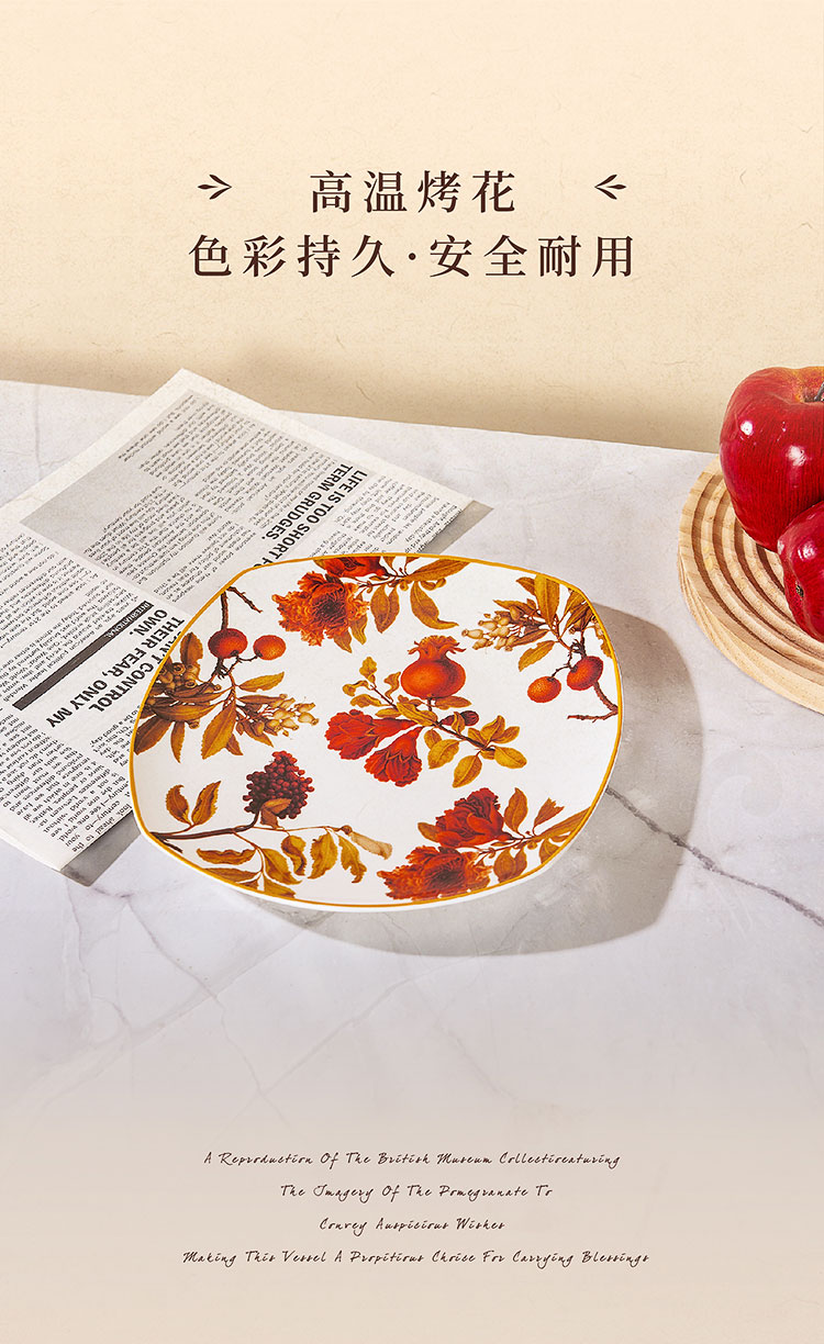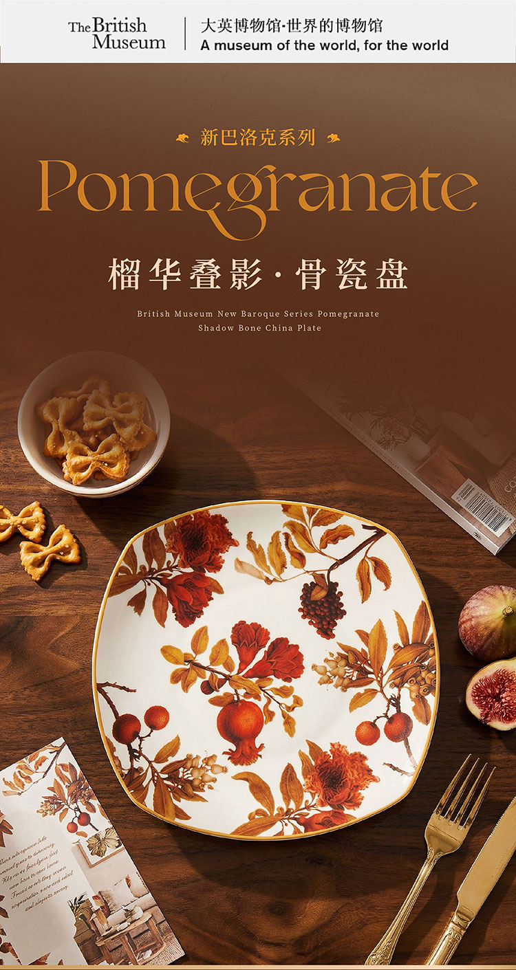 大英博物馆 新巴洛克系列 榴华叠影骨瓷盘