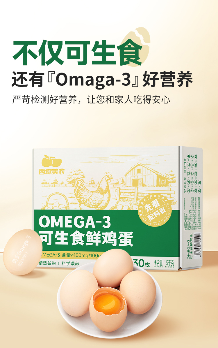 西域美农 omega-3 可生食无抗鲜鸡蛋30枚装 京东发货