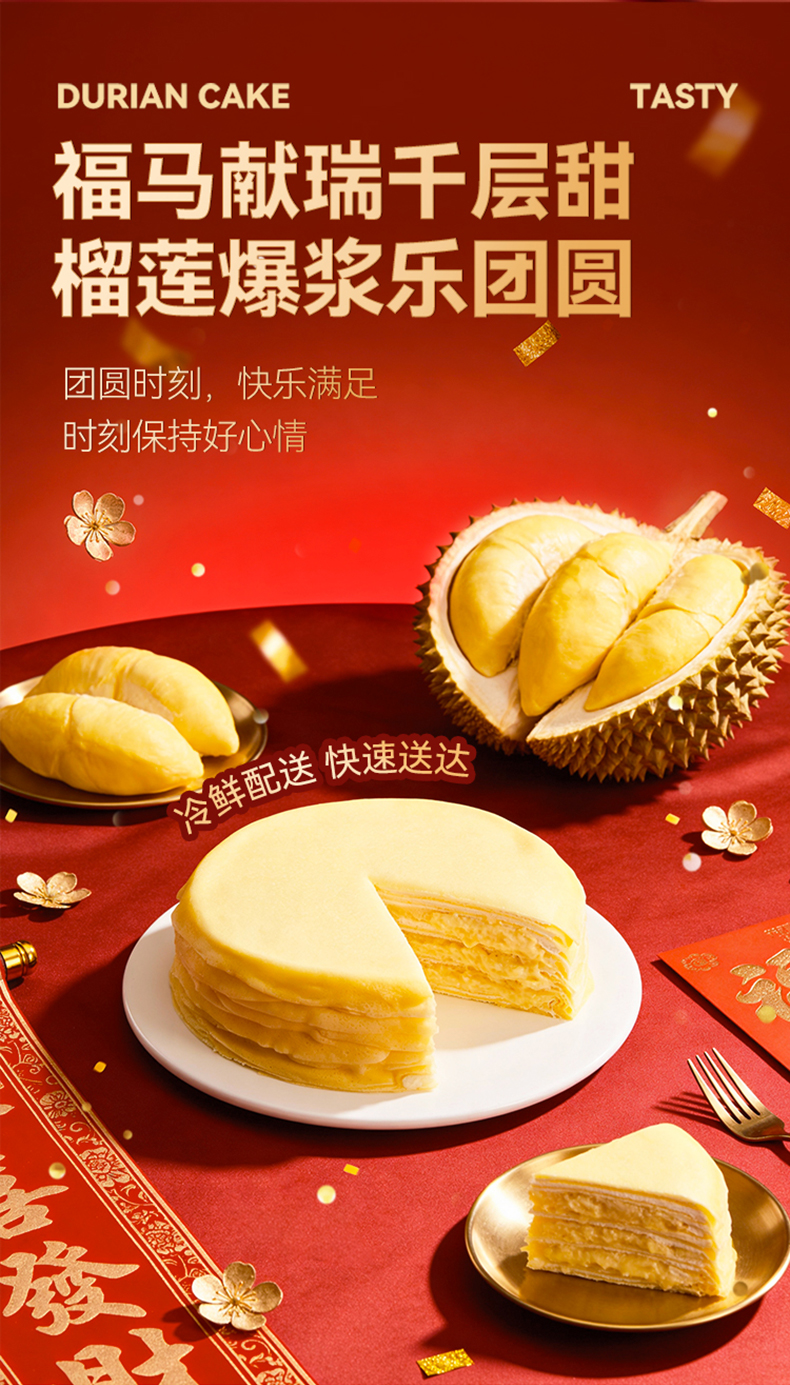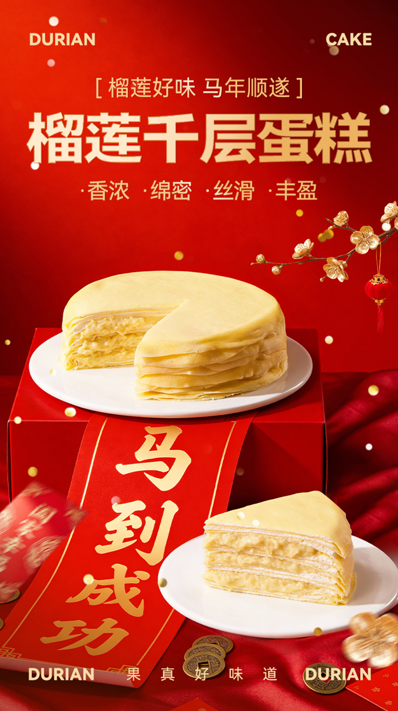【发出后不支持拦截退货】榴芒一刻 千层蛋糕(巧克力/抹茶/榴莲)400g/400g*2