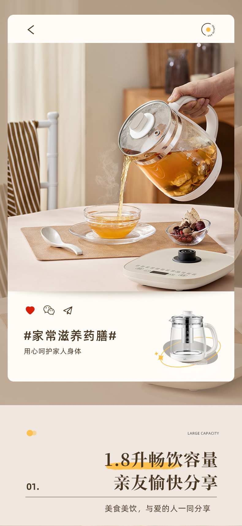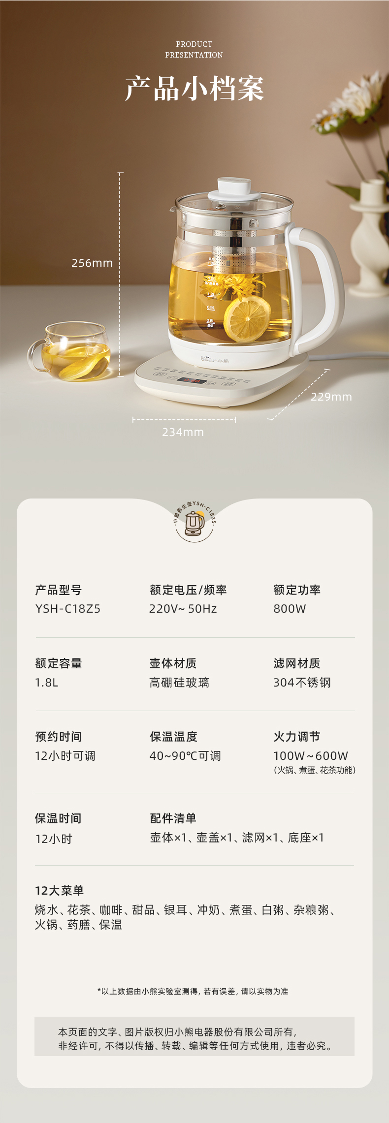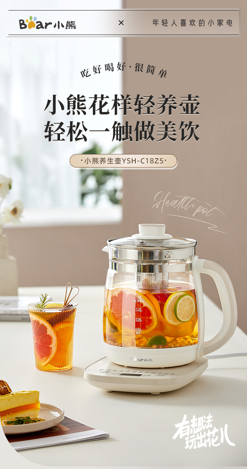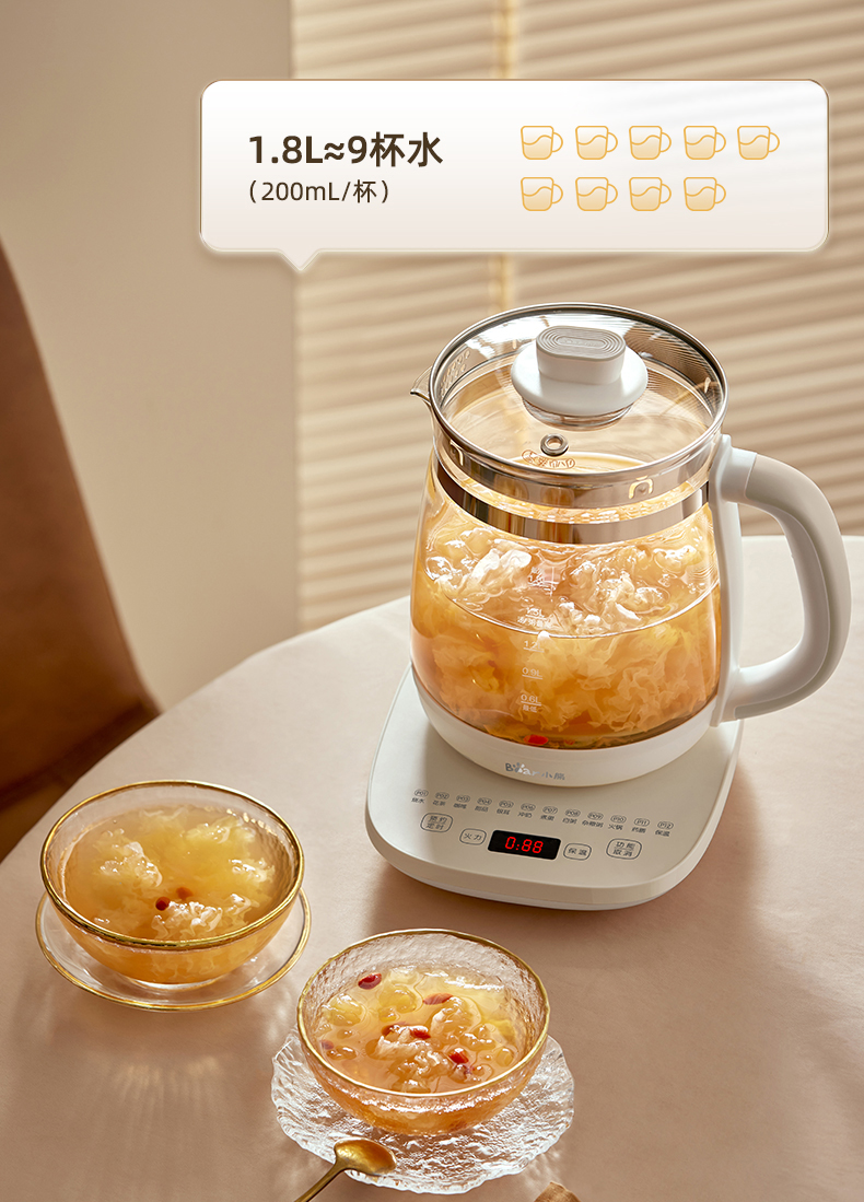 【小程序】小熊(Bear)养生壶全玻璃1.8升大容量智能煮茶器花茶壶 家用办公室多功能煮茶壶烧水壶 带滤网 YSH-C18Z5