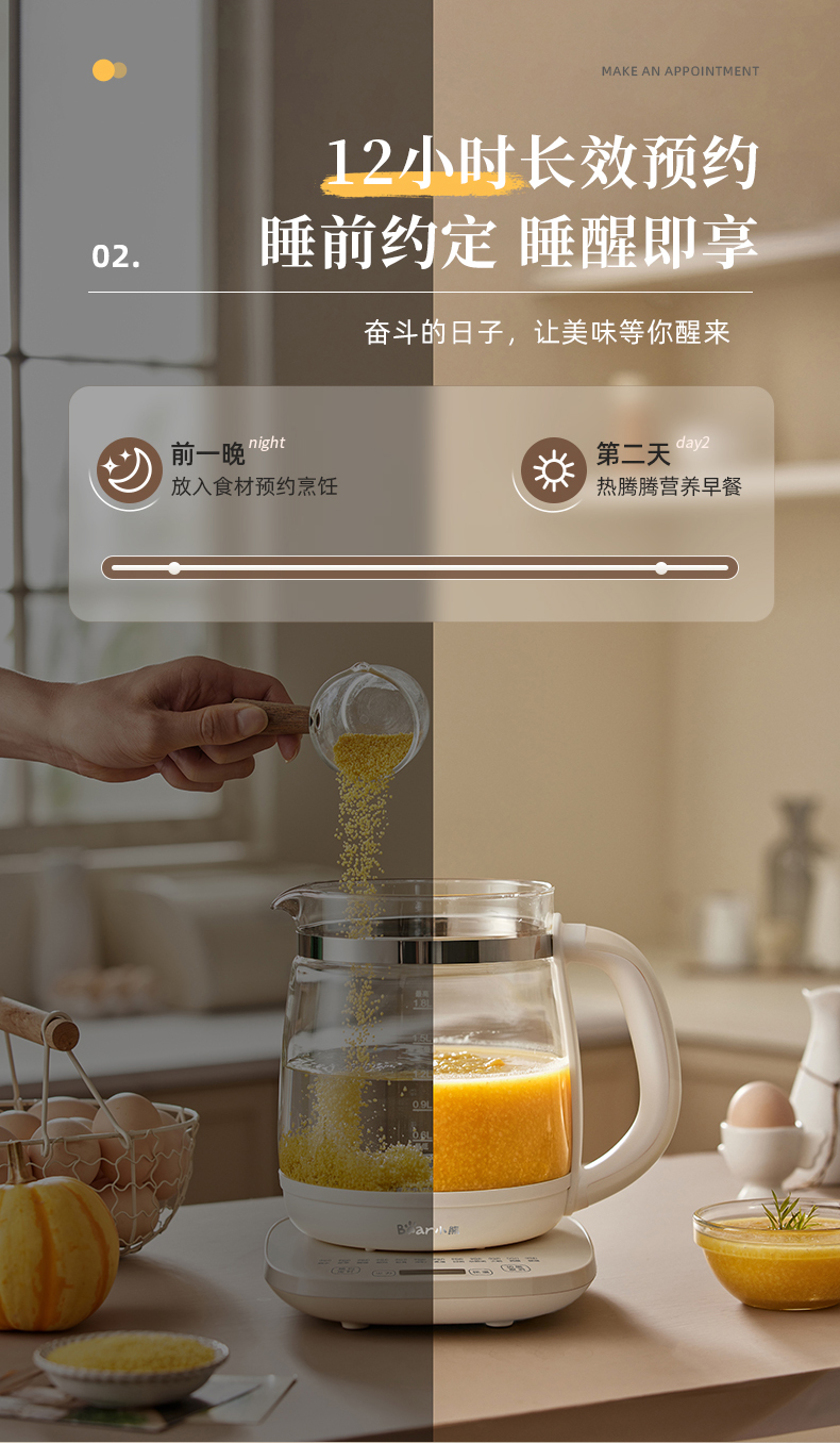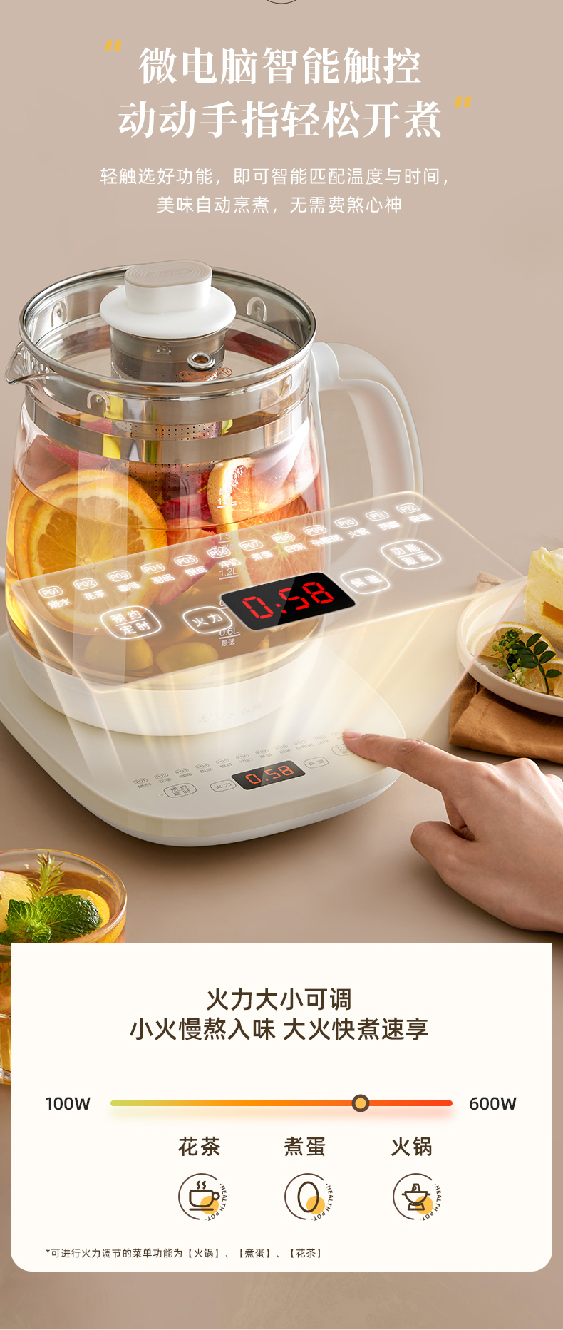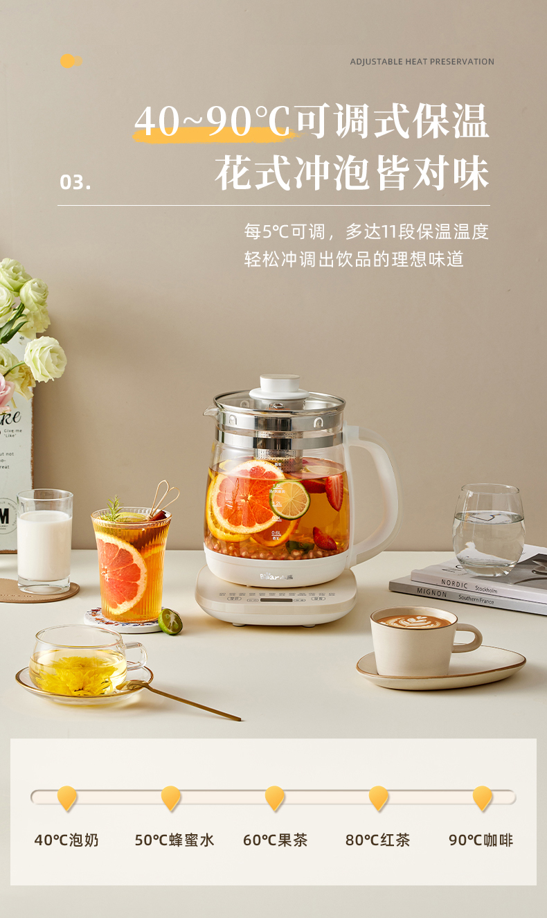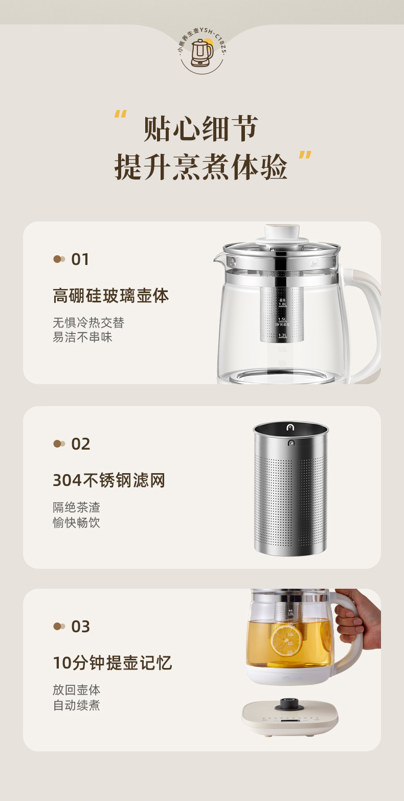 【小程序】小熊(Bear)养生壶全玻璃1.8升大容量智能煮茶器花茶壶 家用办公室多功能煮茶壶烧水壶 带滤网 YSH-C18Z5
