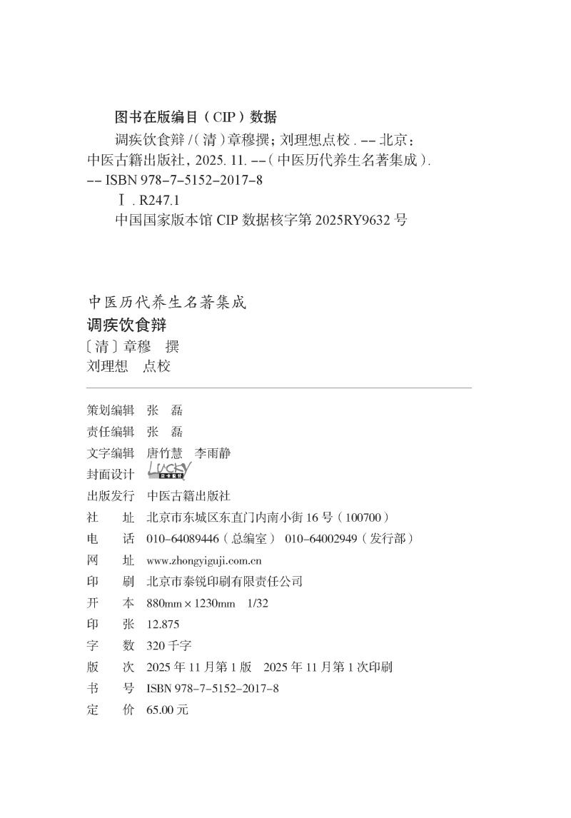 书名:调疾饮食辩 中医历代养生名著集成