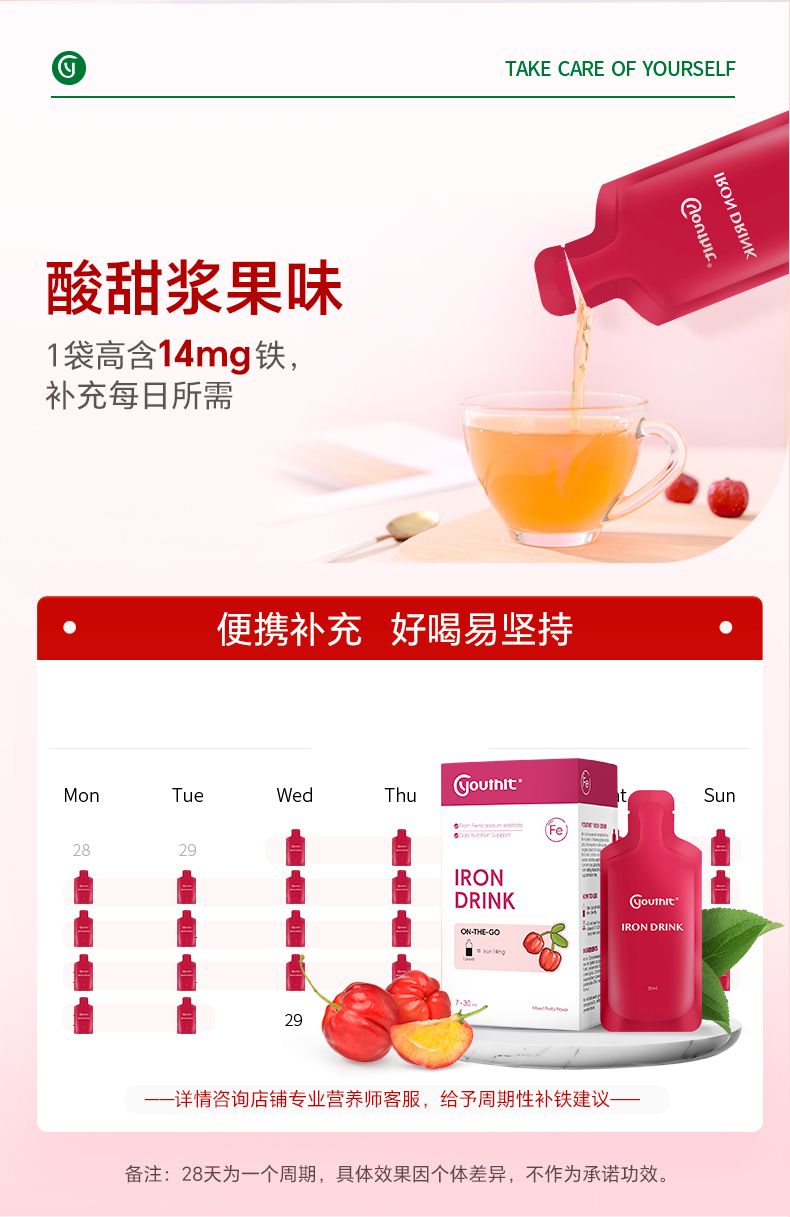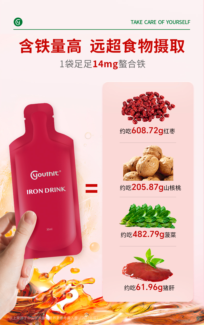 【保税直发】Youthit优思益铁饮元气包7袋 孕期哺乳期补铁 女性补气血