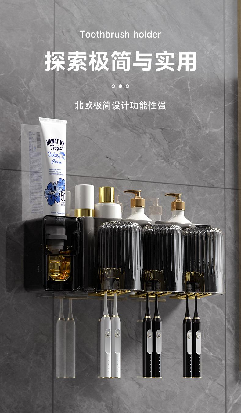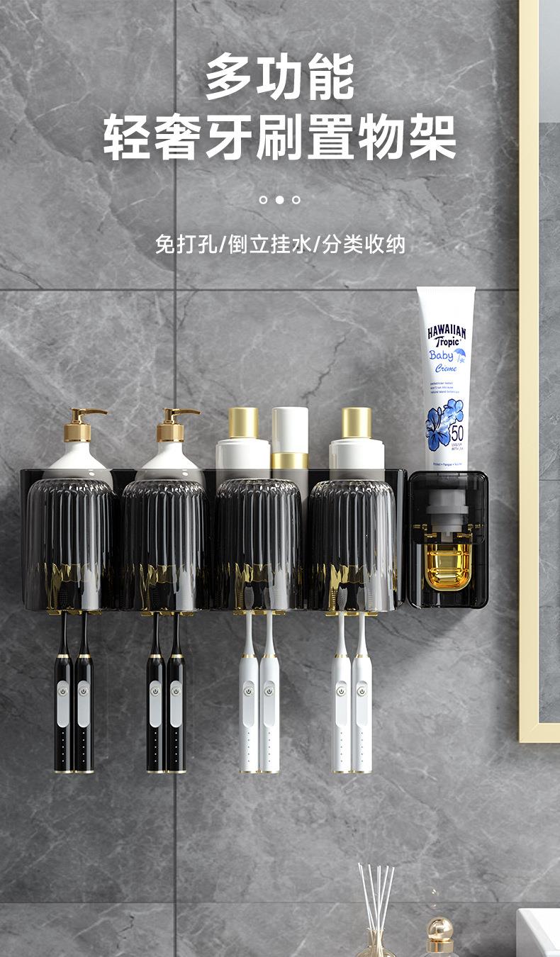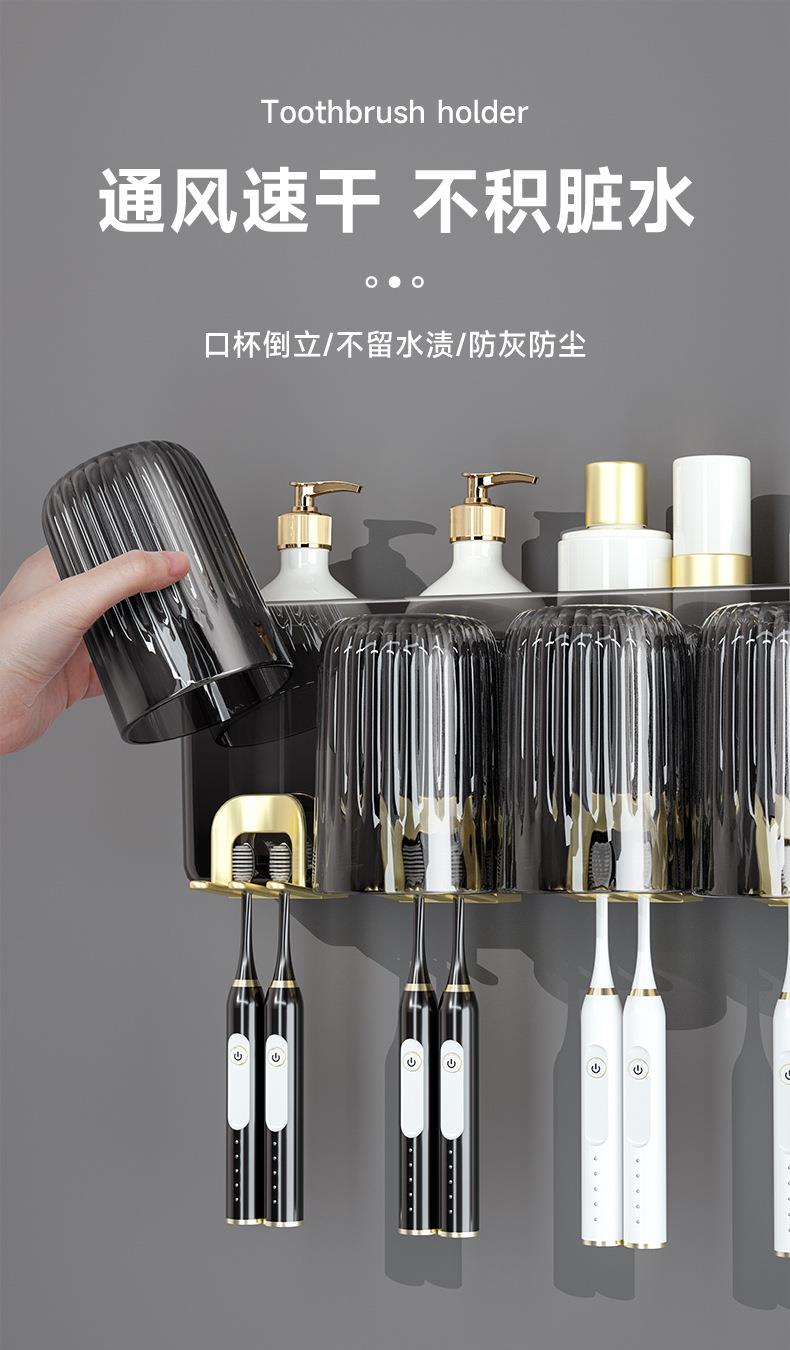牙刷牙杯置物架子壁挂式免打孔电动牙具漱口杯架卫生间收纳盒套装