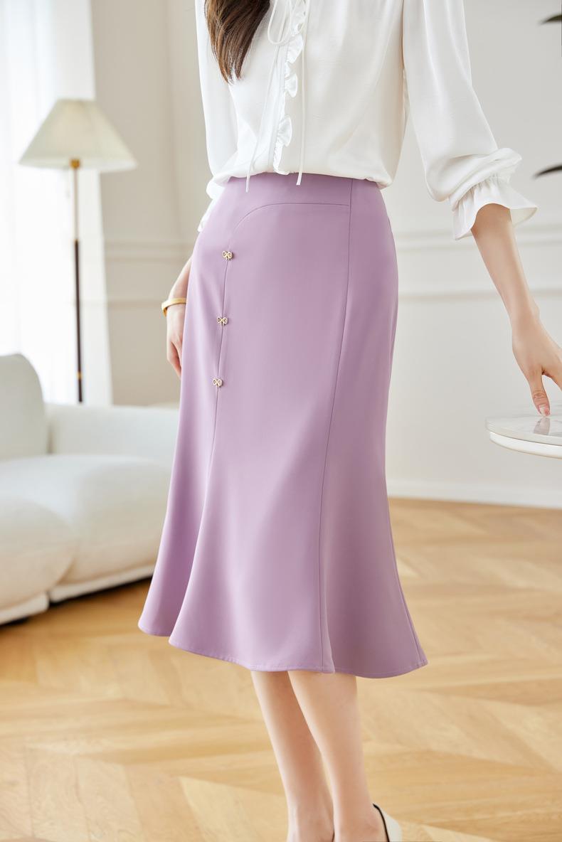 紫色鱼尾裙西装裙2024春装新款显瘦包臀裙中长款半身裙602