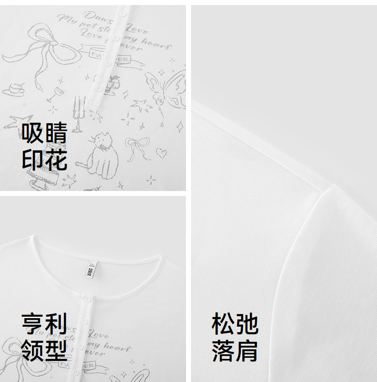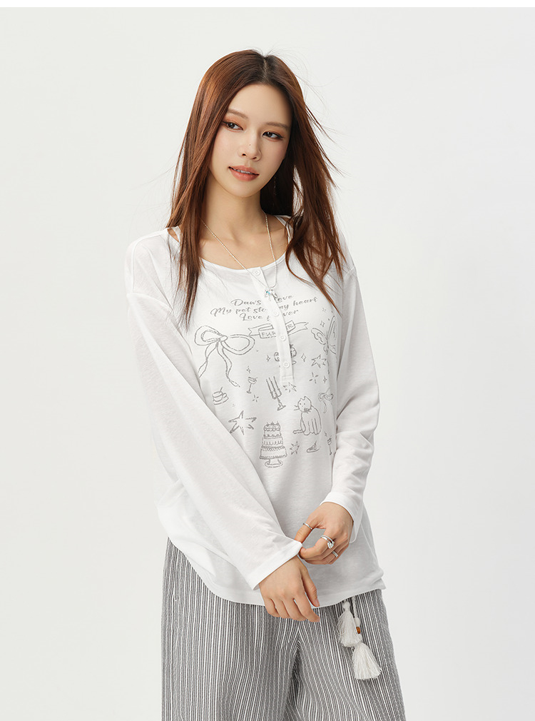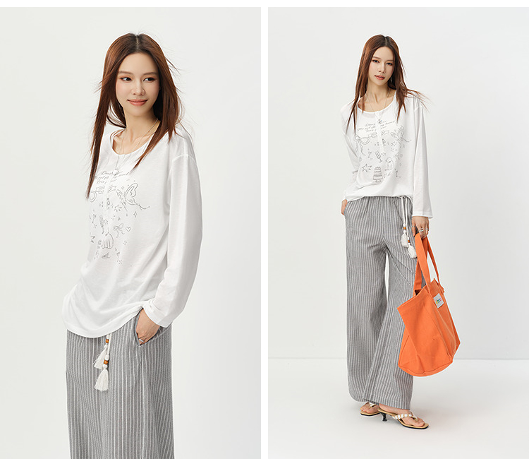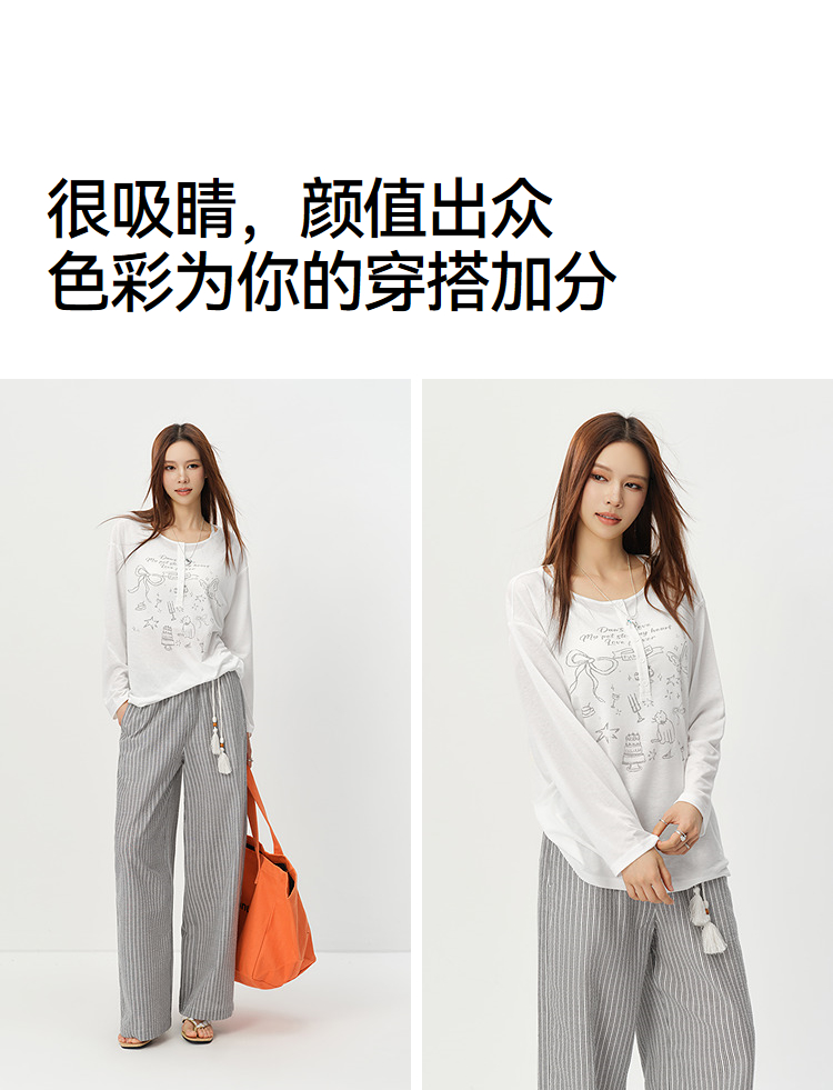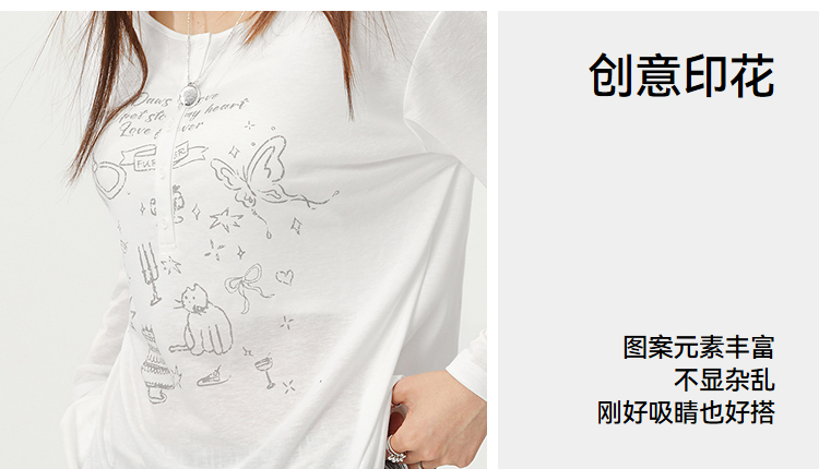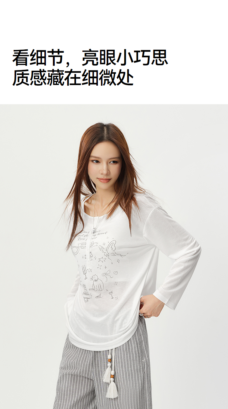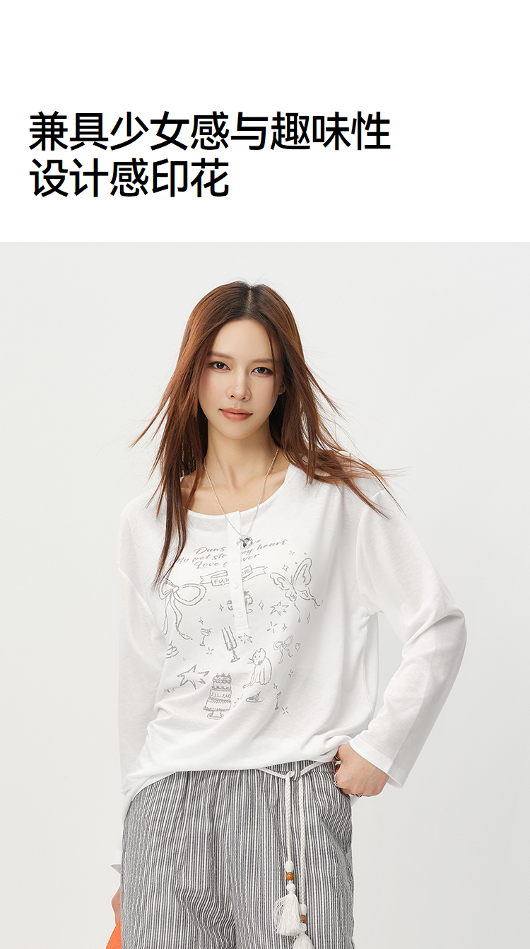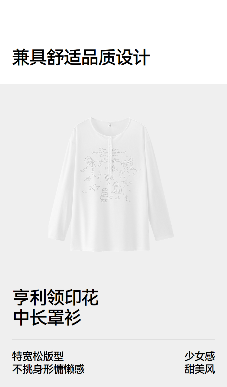 森马长袖T恤女夏中长款oversize印花2026新款慵懒甜美少女感罩衫