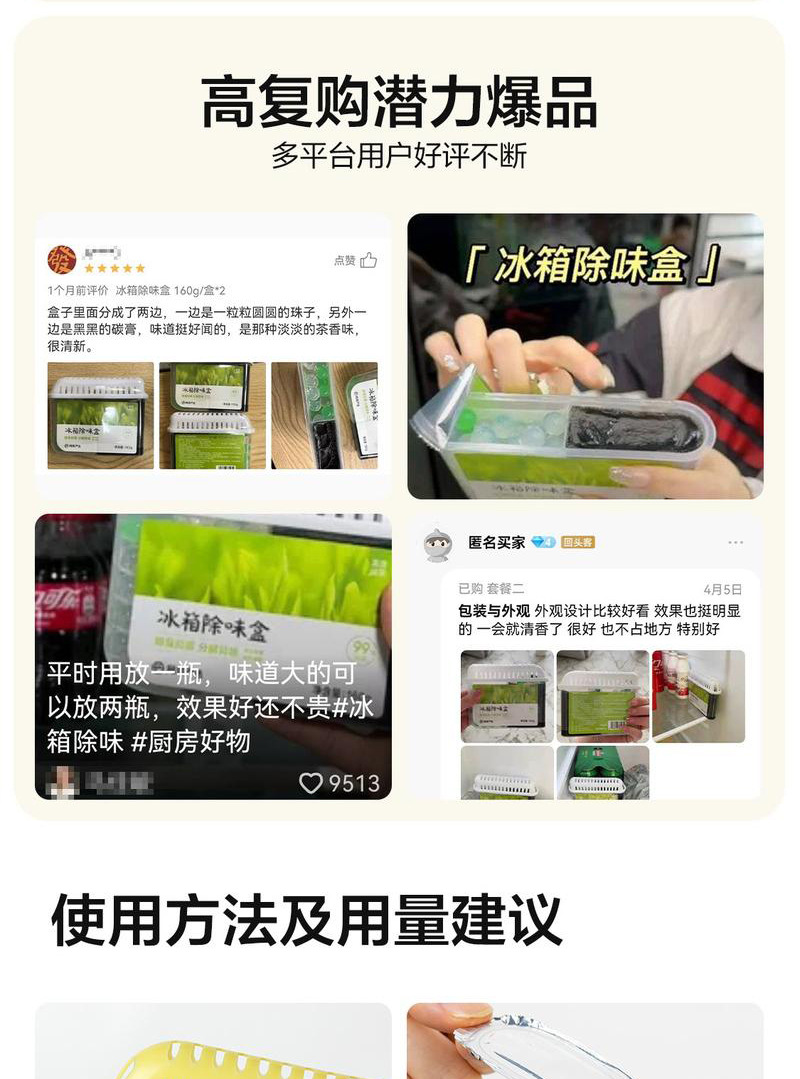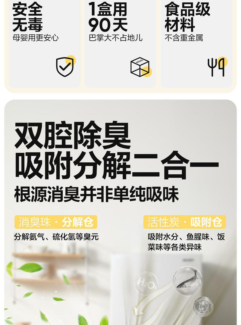 【连外盒都是食品级!冰箱除味盒】严选冰箱除味剂去味神器盒装除臭清新去除异味家用香氛除味剂。ry