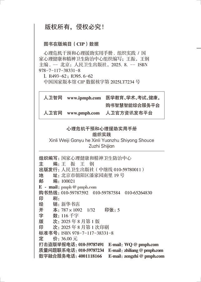 心理危机干预和心理援助实用手册 组织实践 王振 王钢 主编 心理危机的监测与预警 机构常态化心理危机监测 等 人民卫生出版社