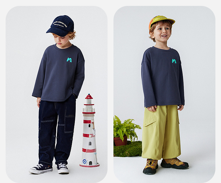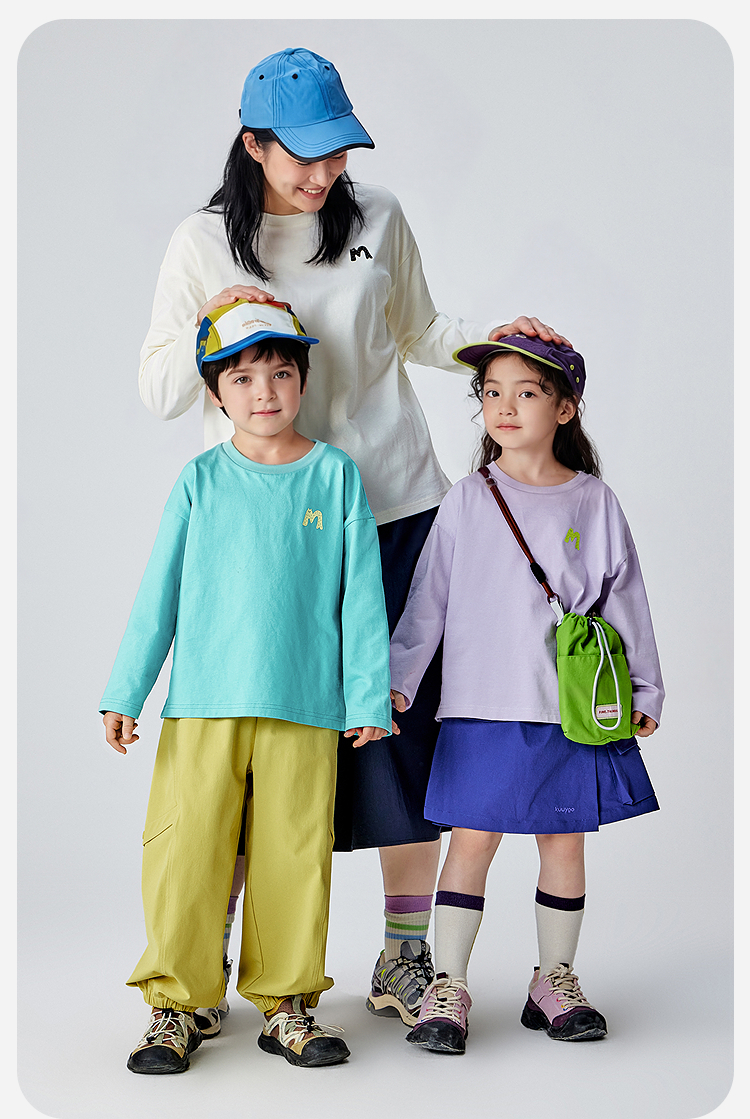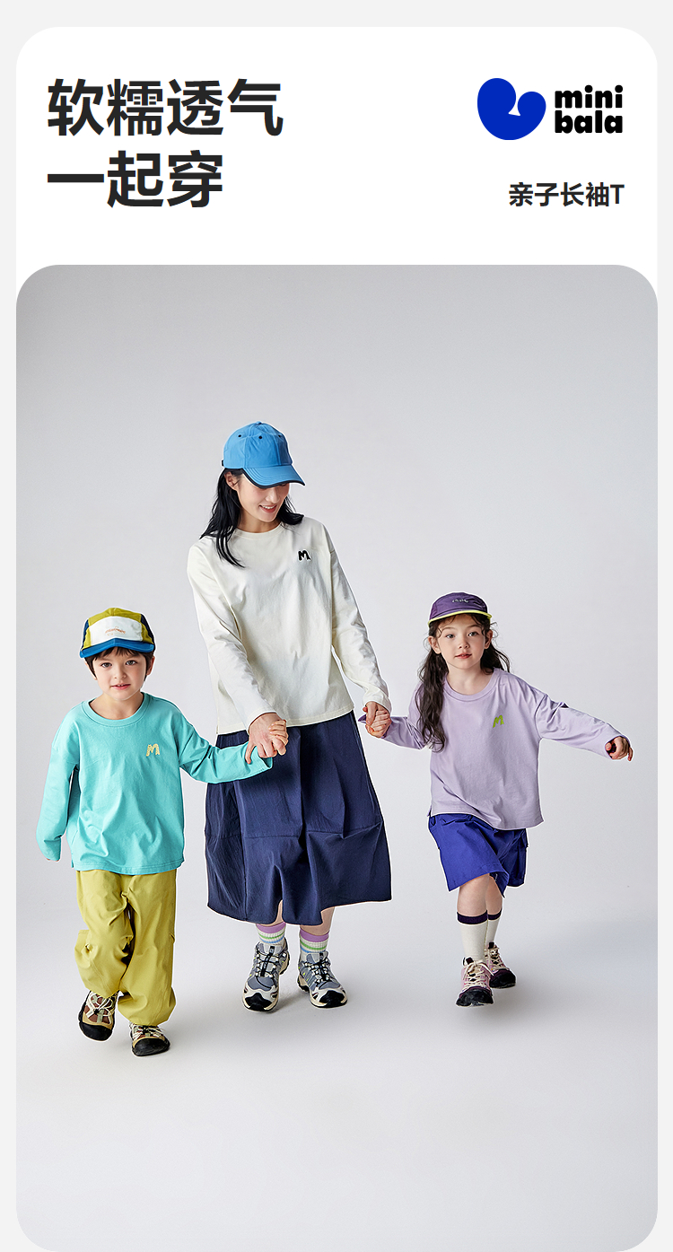 迷你巴拉男女童亲子纯棉长袖T恤春新款亲肤透气耐穿不易变形上衣