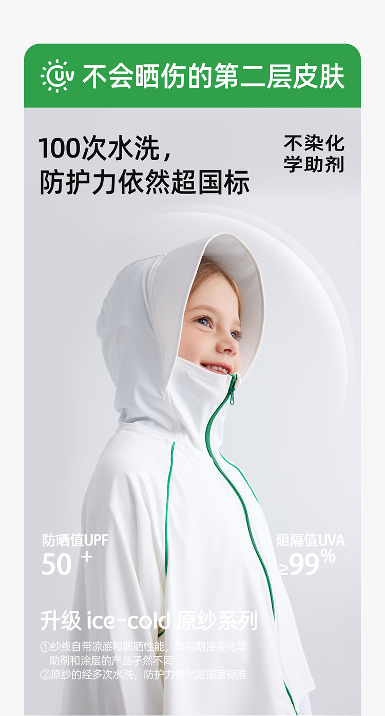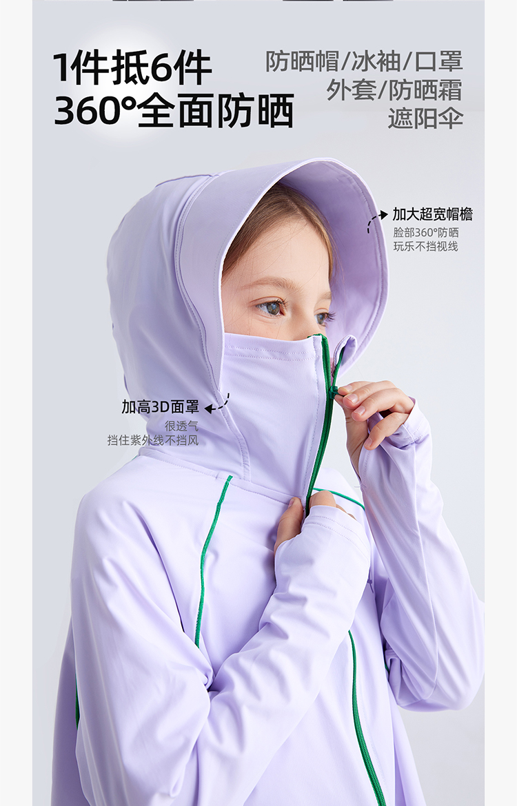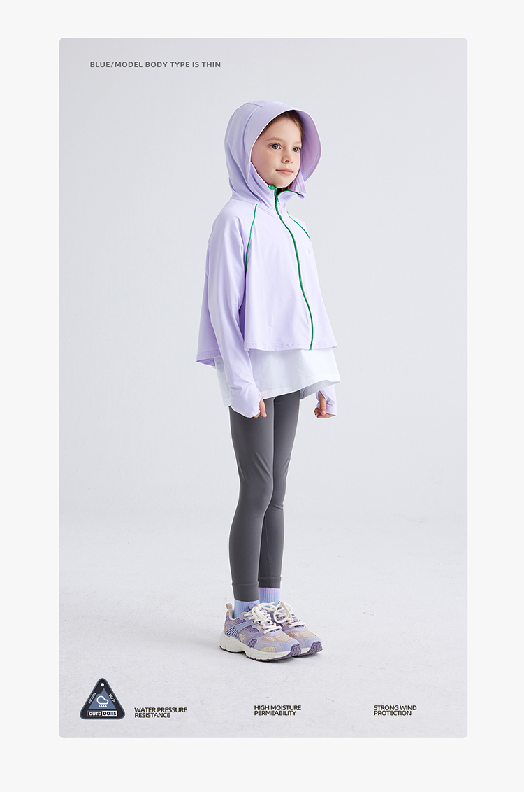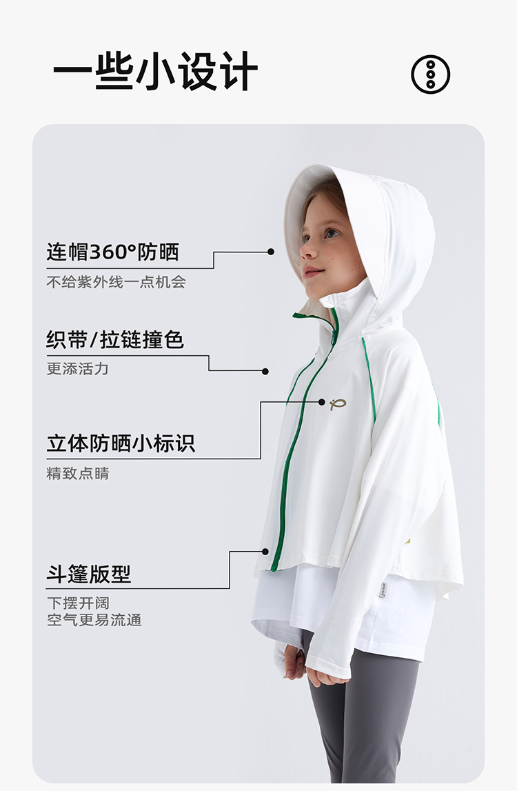 【零感冰皮防晒 UPF50+】儿童撞色斗篷冰皮防晒服 PXW2412
