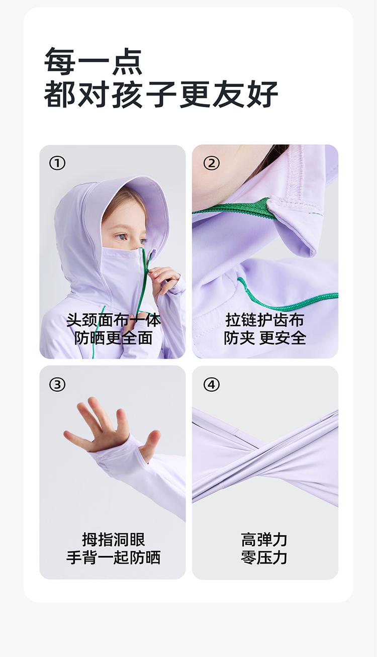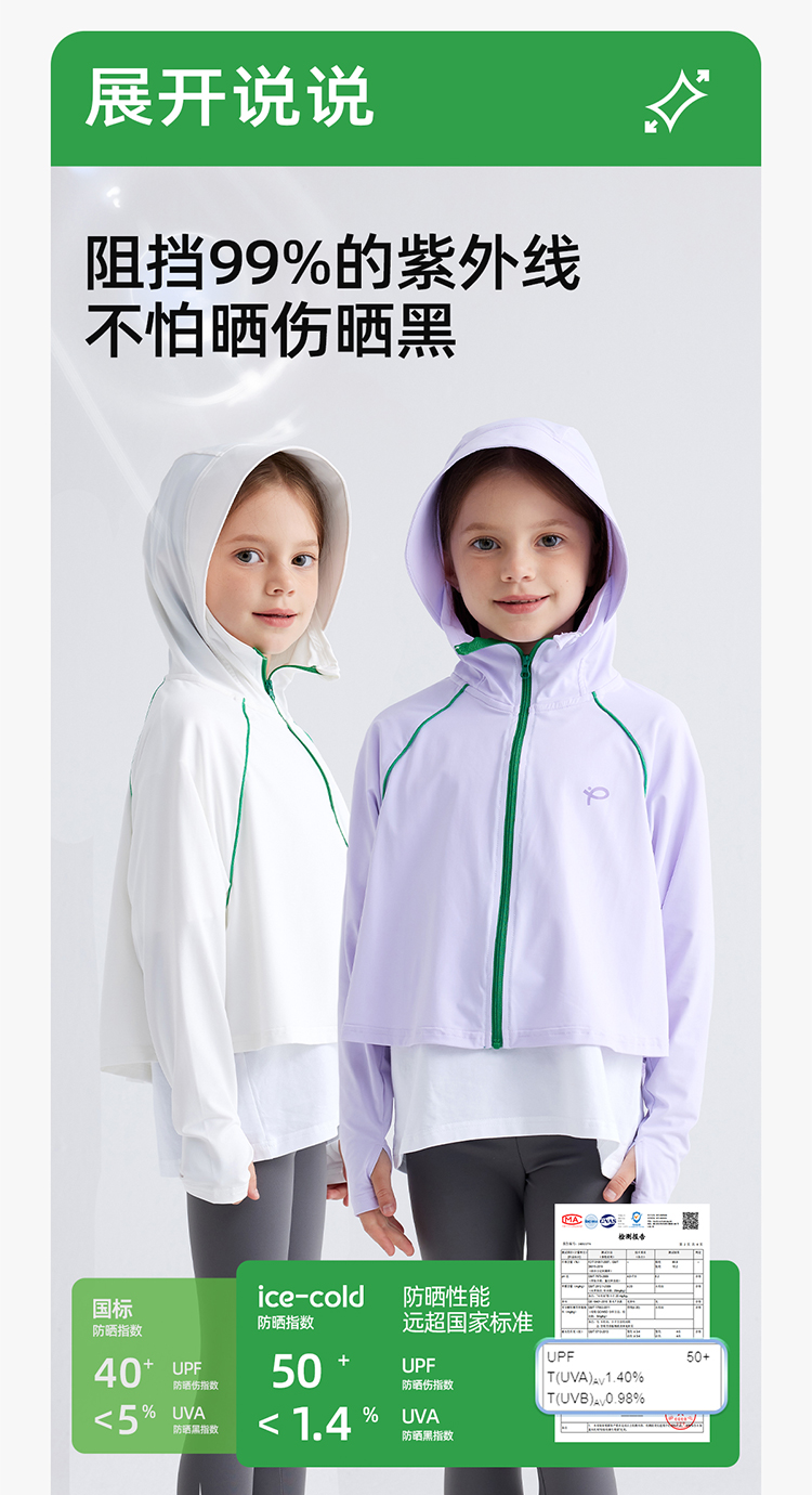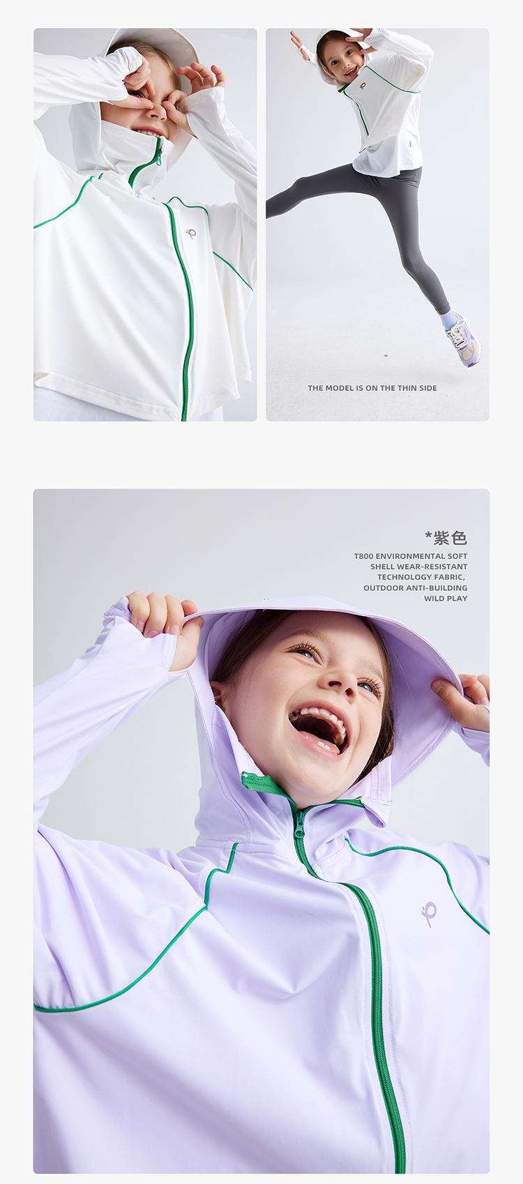 【零感冰皮防晒 UPF50+】儿童撞色斗篷冰皮防晒服 PXW2412