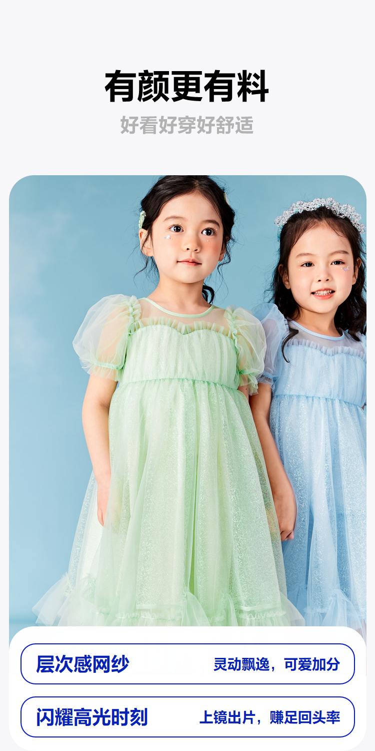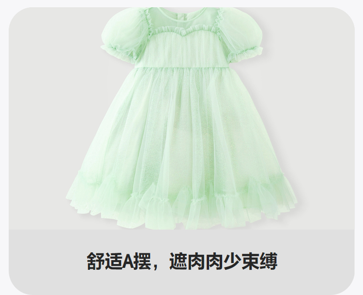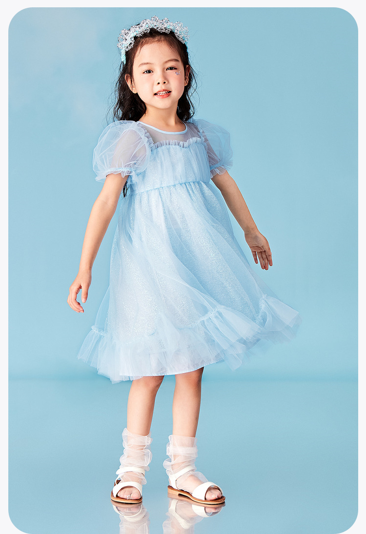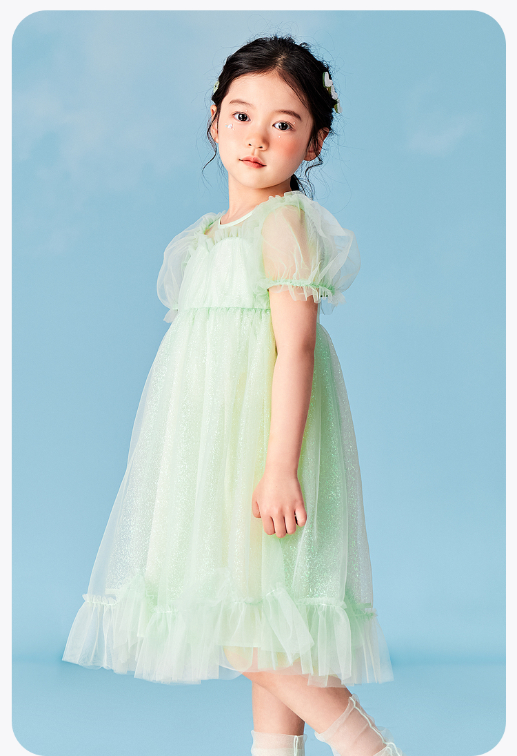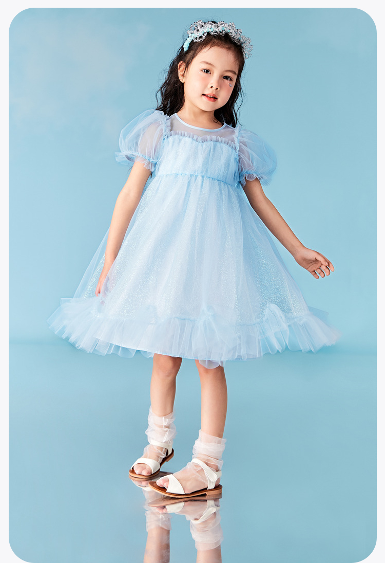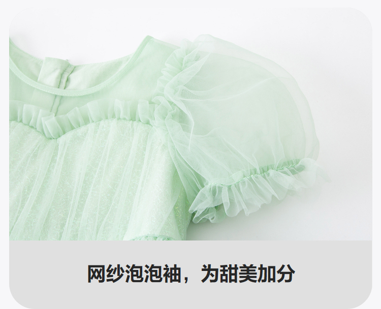 迷你巴拉女童A字连衣裙宝宝飘逸网纱泡泡袖高腰公主裙夏季