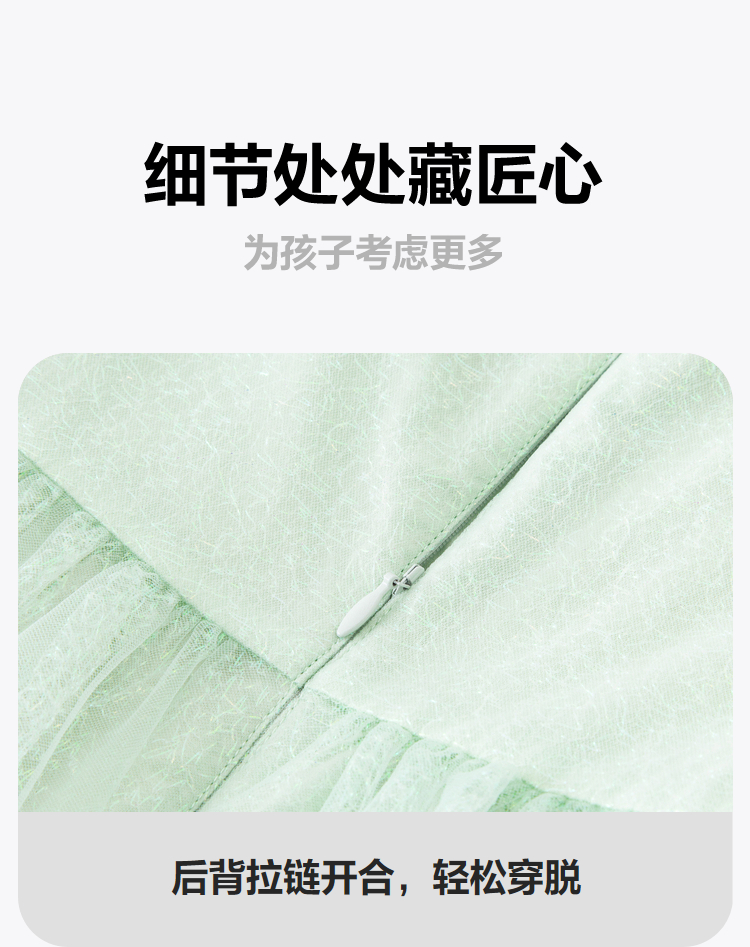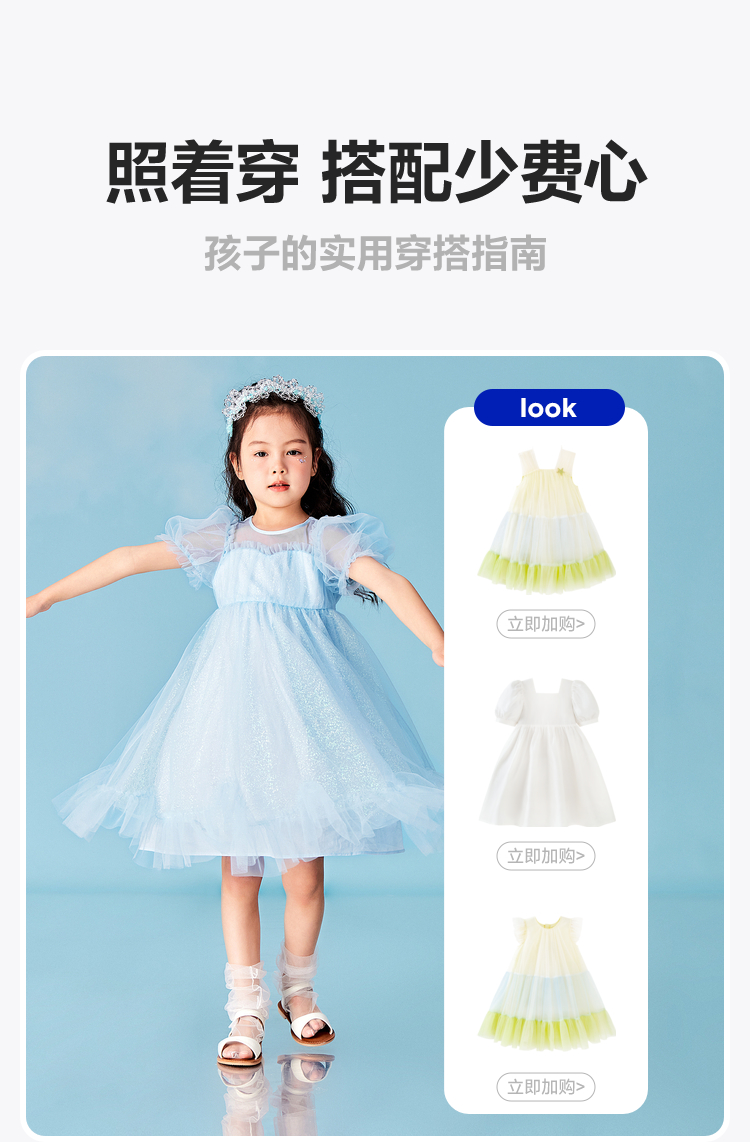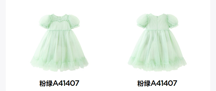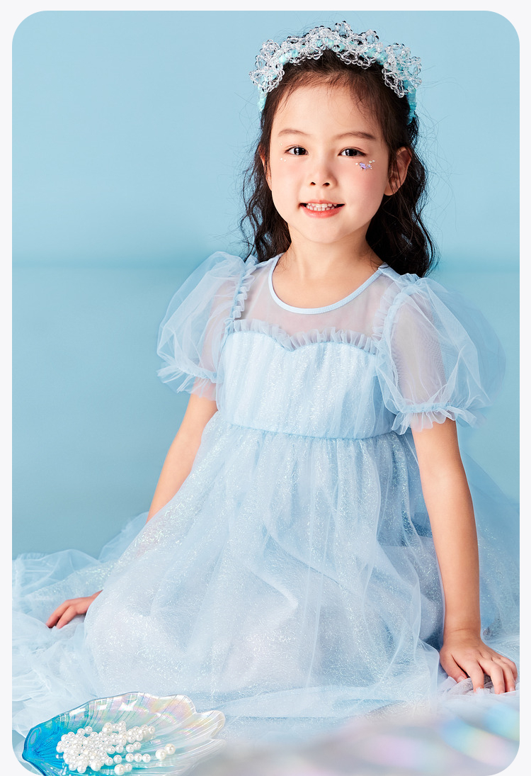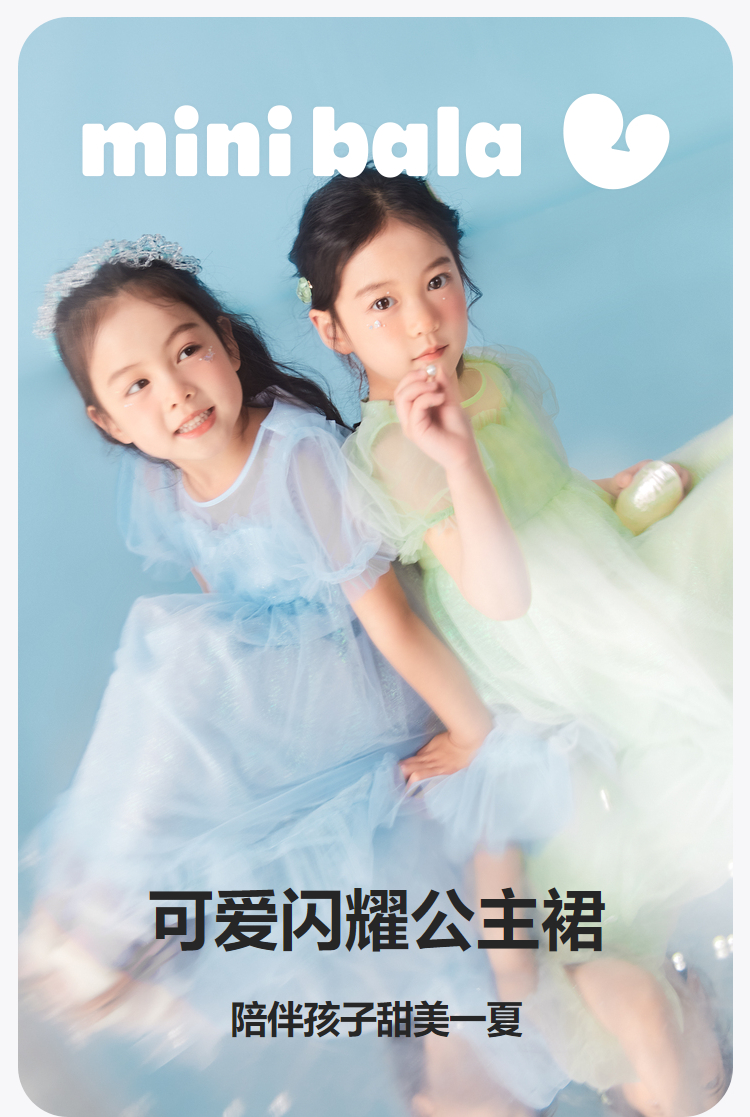 迷你巴拉女童A字连衣裙宝宝飘逸网纱泡泡袖高腰公主裙夏季