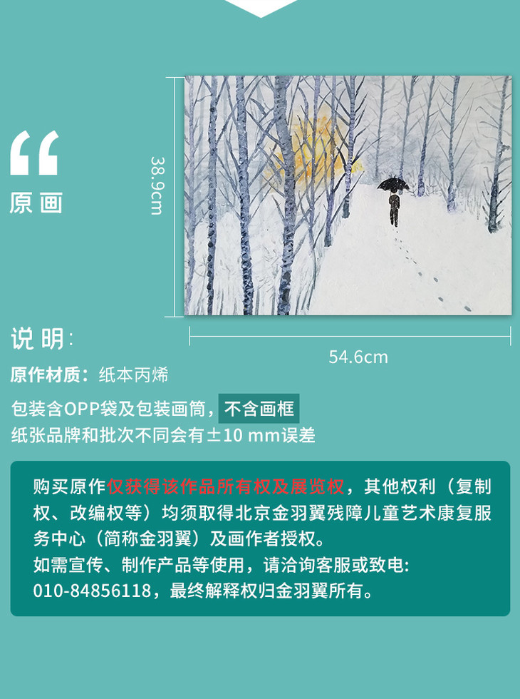 金羽翼将艺术与心理治疗相结合,用艺术教育的形式帮助残障青少年体现自身价值、提高生活质量、实现艺术梦想,并将绘画作品开发成衍生品销售,收入扣除成本后,20%返还给学员家庭,80%用于金羽翼艺术康复教学。