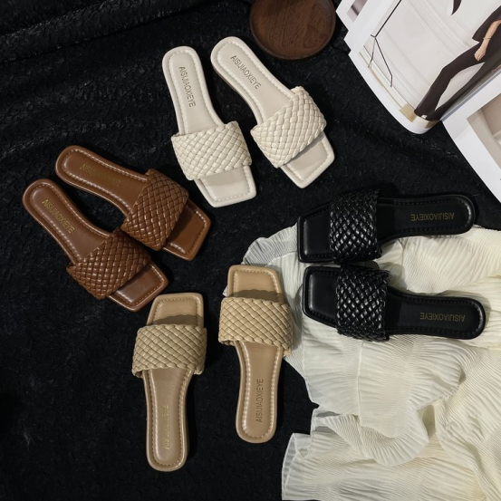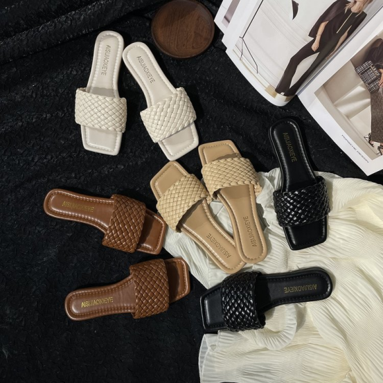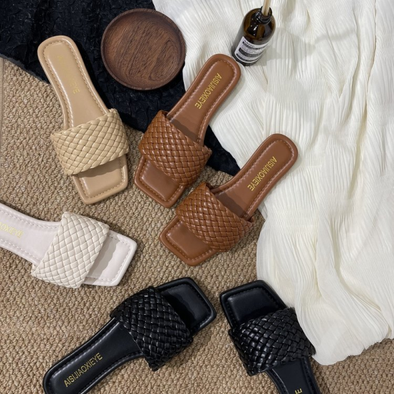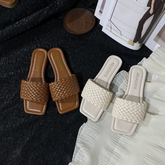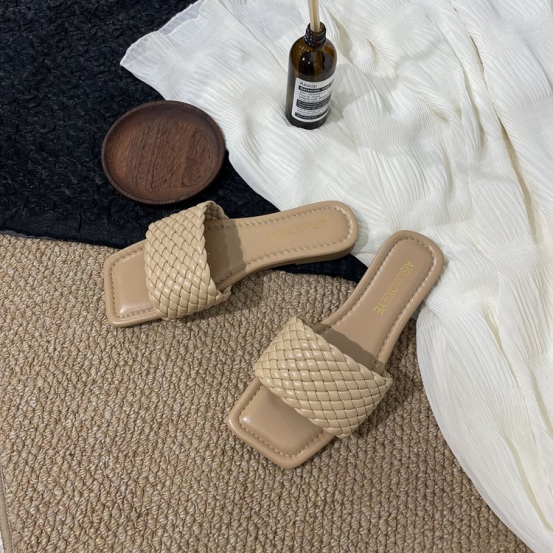 解锁夏日度假氛围感😎 来一双简约编织拖鞋吧~ 今年编织元素真的很火哦 Du有种复古清新感 ✨法式小方头贼气质 关键包容性也非常不错❗❗ 一字设计提升了穿着的稳定性 更跟脚 📌鞋面立体不垮塌 看着很有型 穿着又很软 这种宽一字鞋面尤其遮丑 觉得自己脚不好看的姐妹闭眼入 宽鞋面穿起来也很跟脚💨 不会拖拖沓沓的 📌鞋面采用手工编织 松弛自然的气息扑面而来💨💨