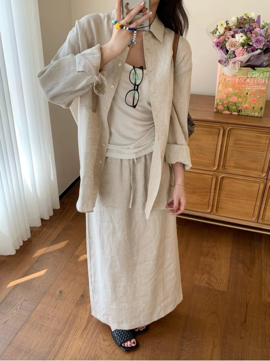 ✔️卡其上脚贼温柔 和绸缎裙子搭配贼懒惰