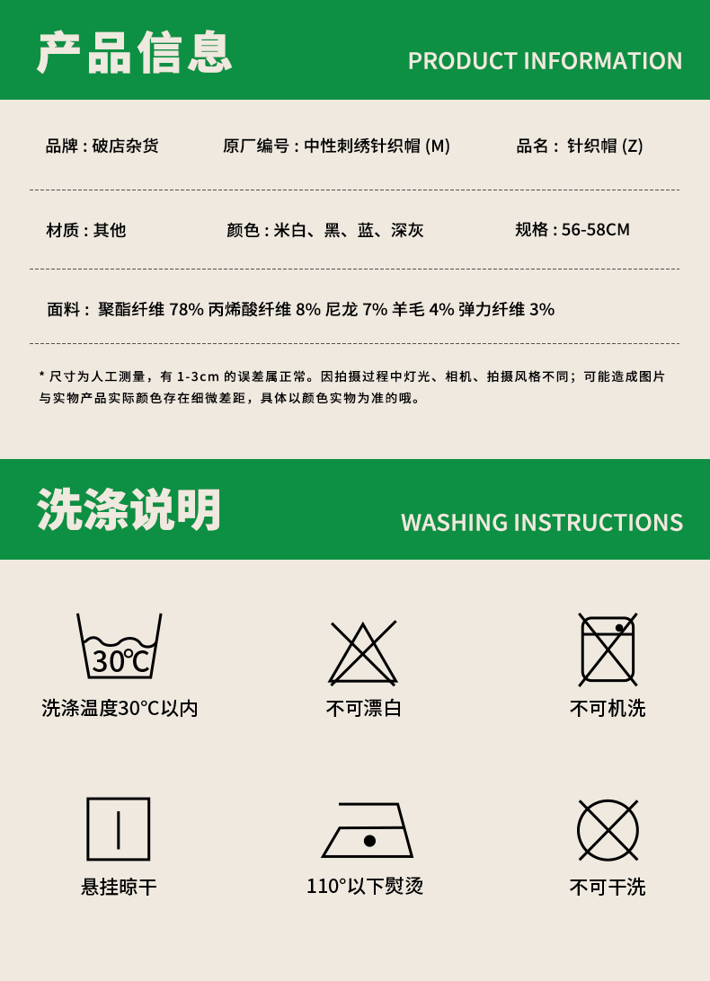 中性刺绣针织帽(M) 针织帽-纪念日百货门店同款165199556