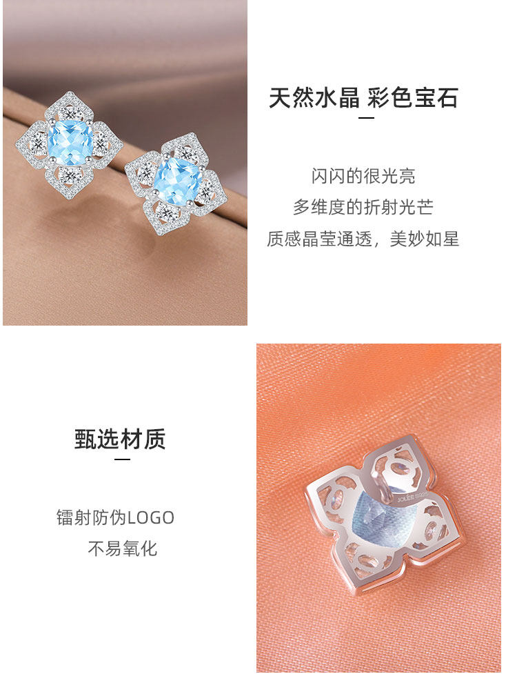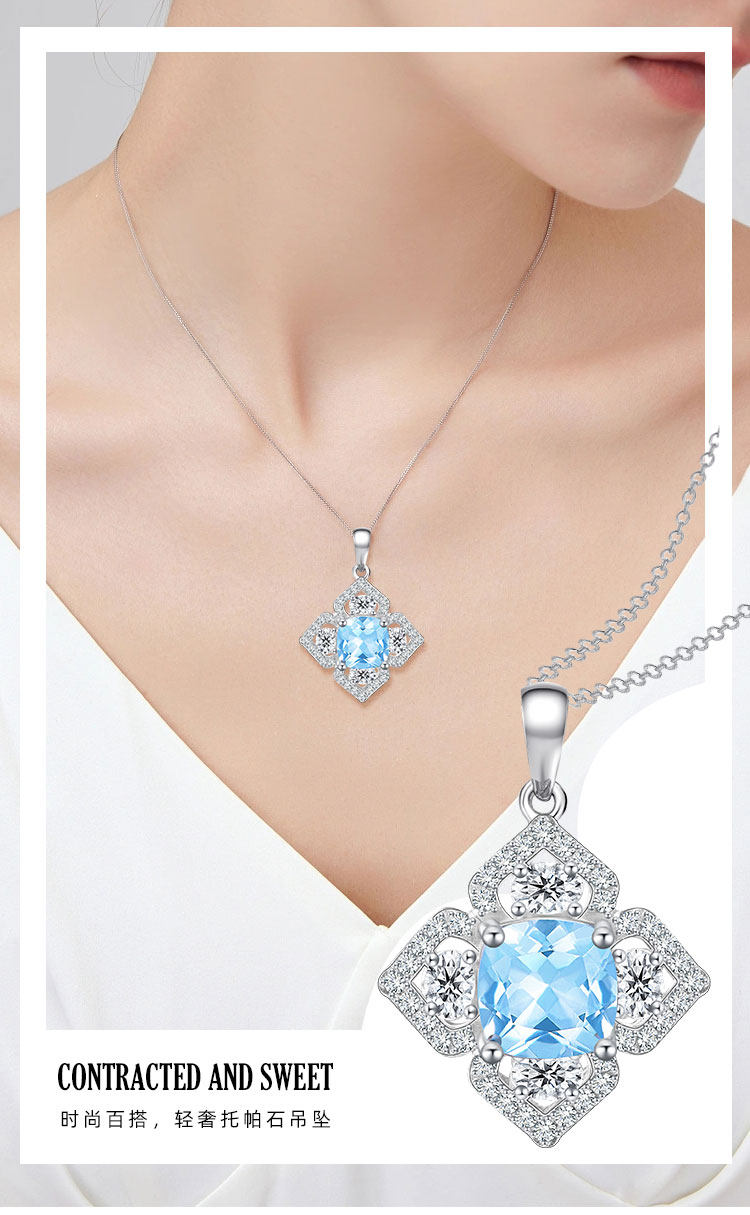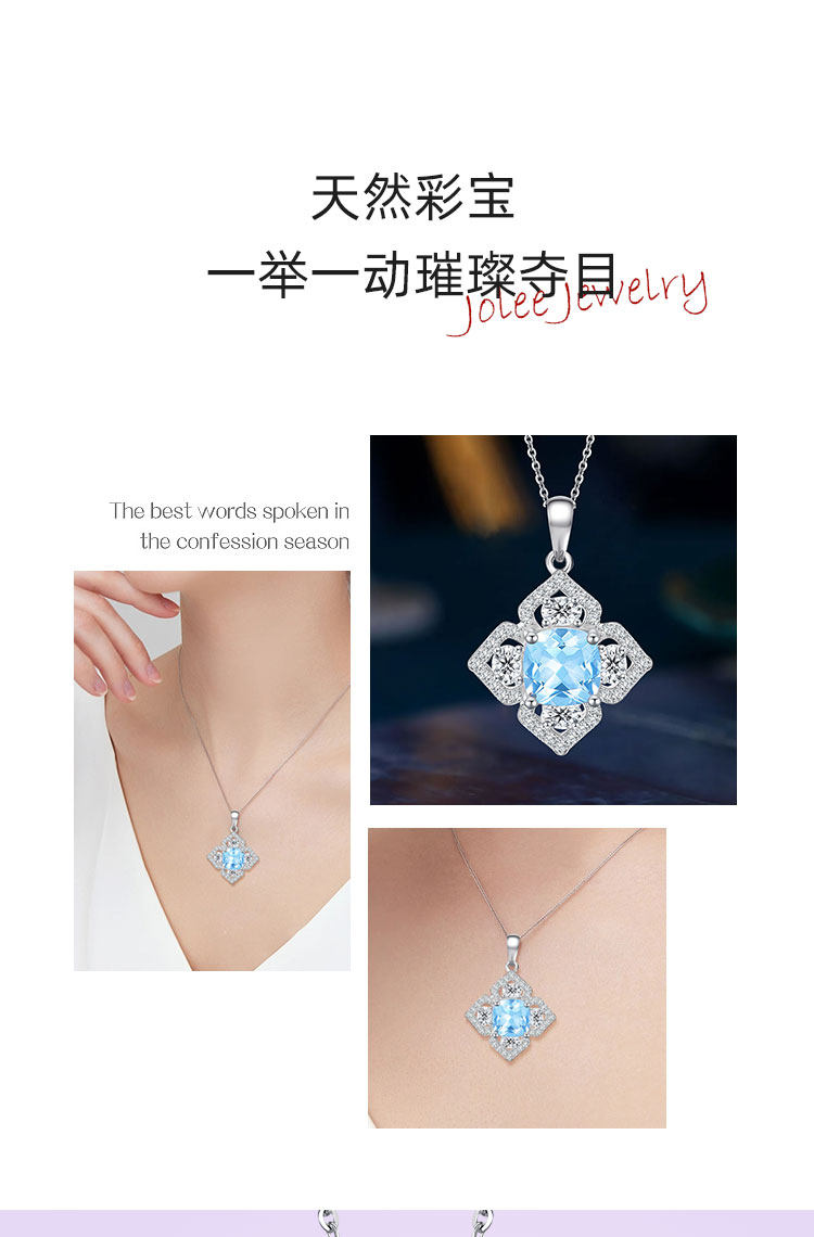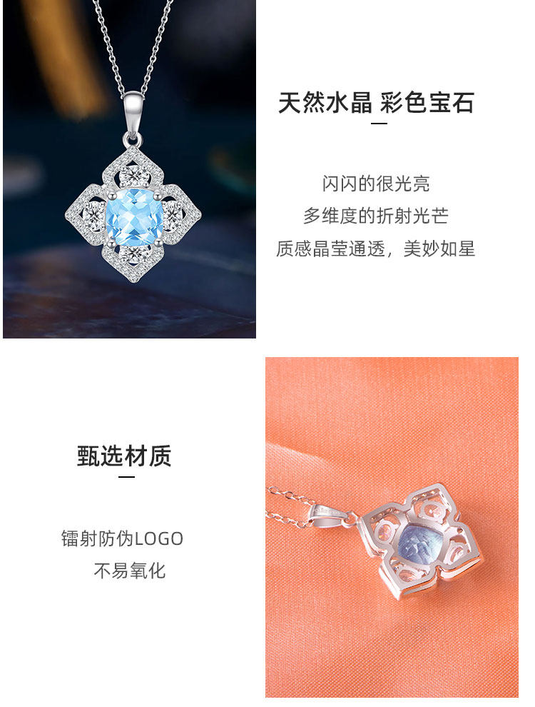 【托帕石项链/耳钉】S925银时尚彩色宝石吊坠饰品送女节日礼物JP25038/JE25038-水晶CC