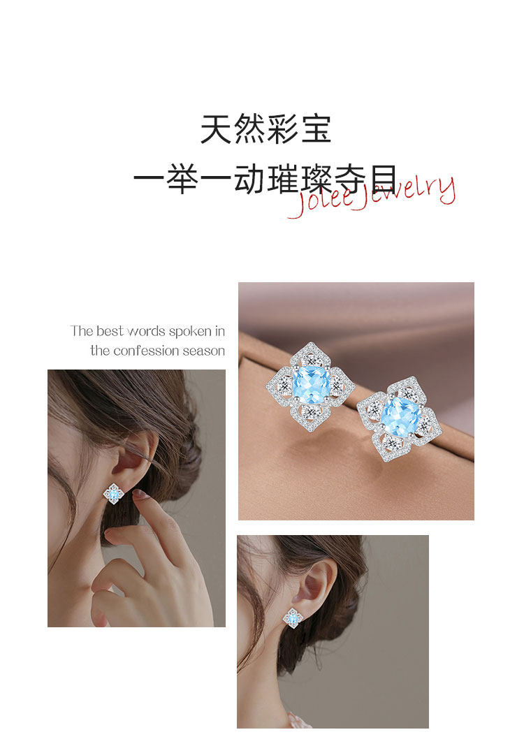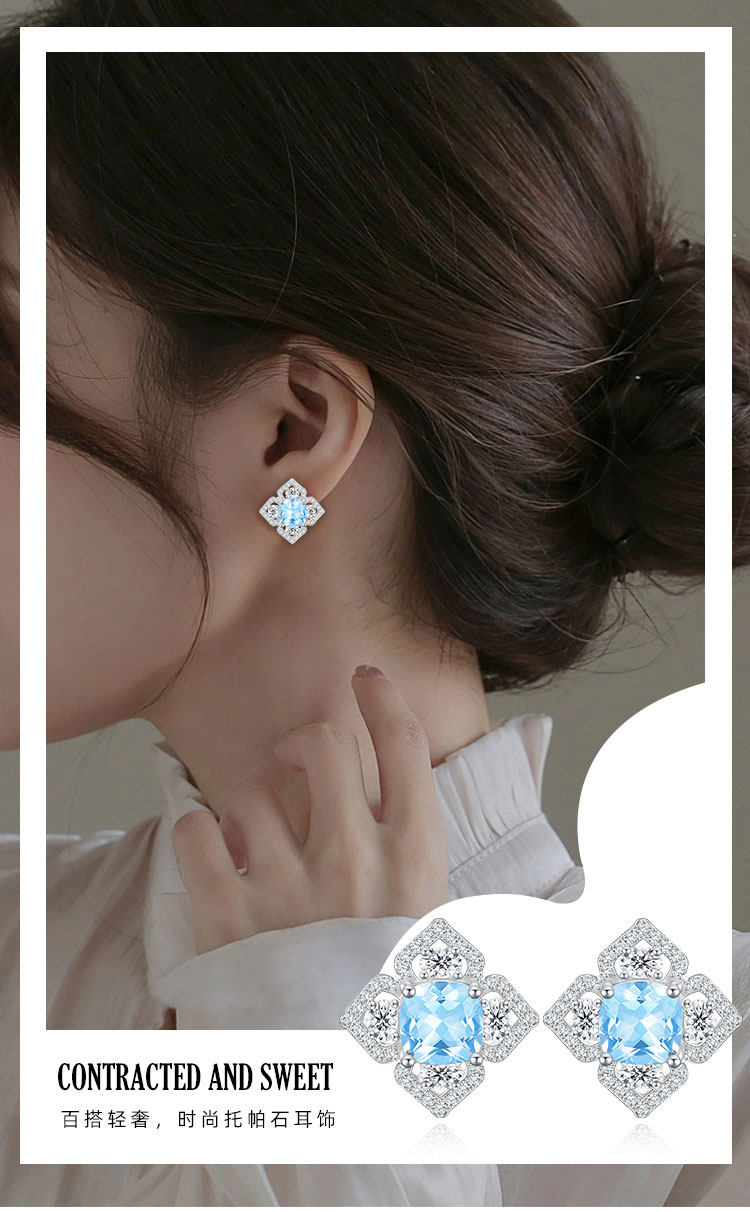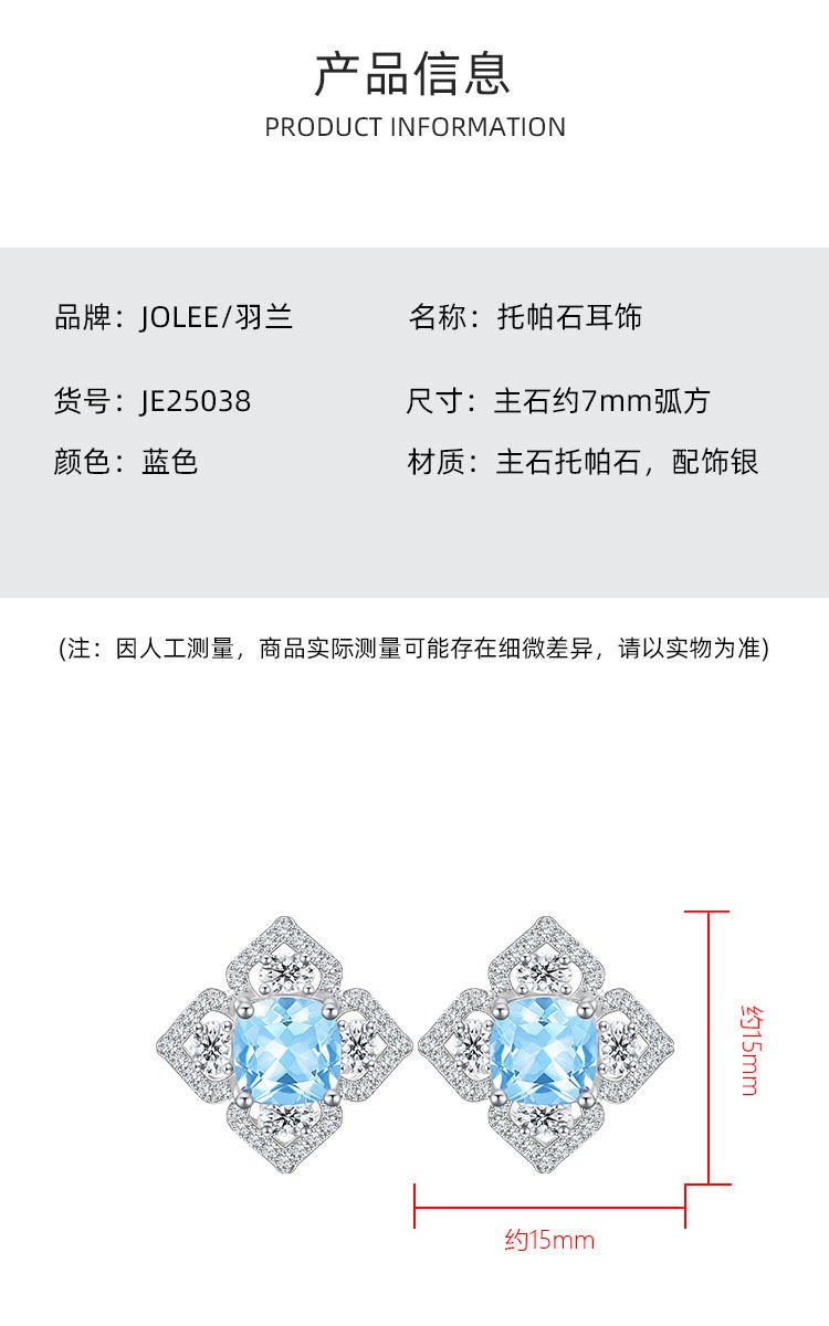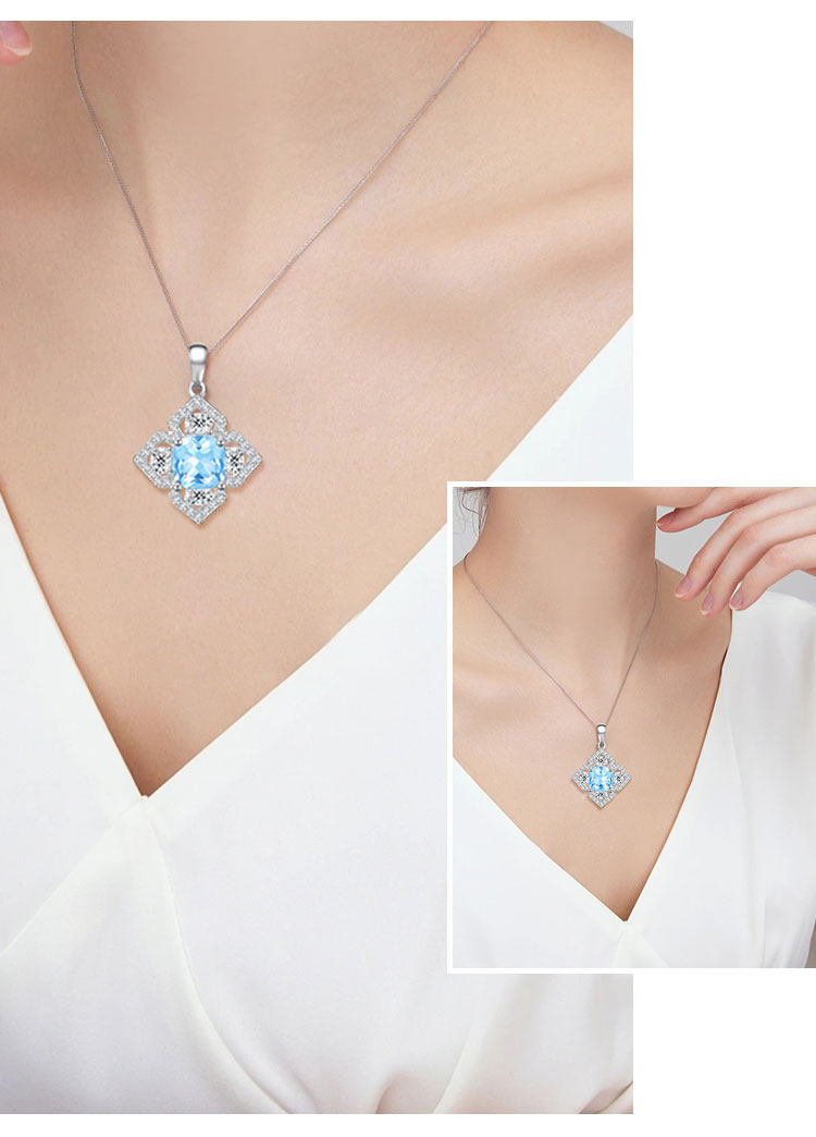【托帕石项链/耳钉】S925银时尚彩色宝石吊坠饰品送女节日礼物JP25038/JE25038-水晶CC