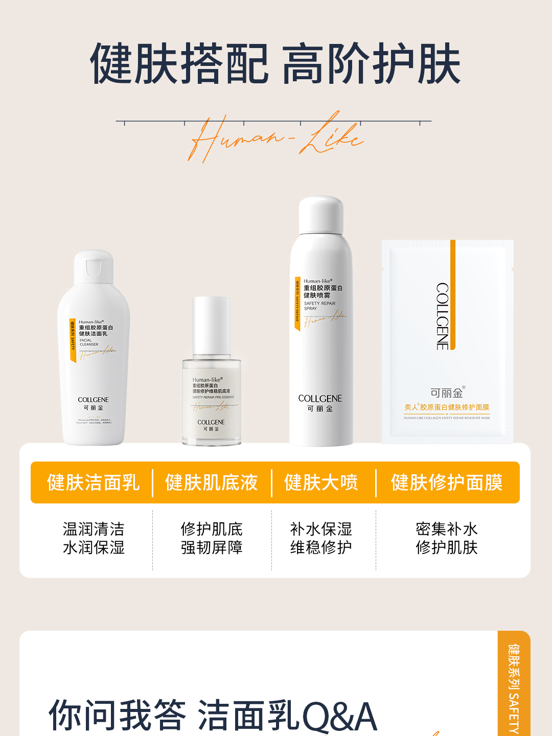 【官方直发 拒绝假货】可丽金 Human-like 重组胶原蛋白男士高能套组 须后水