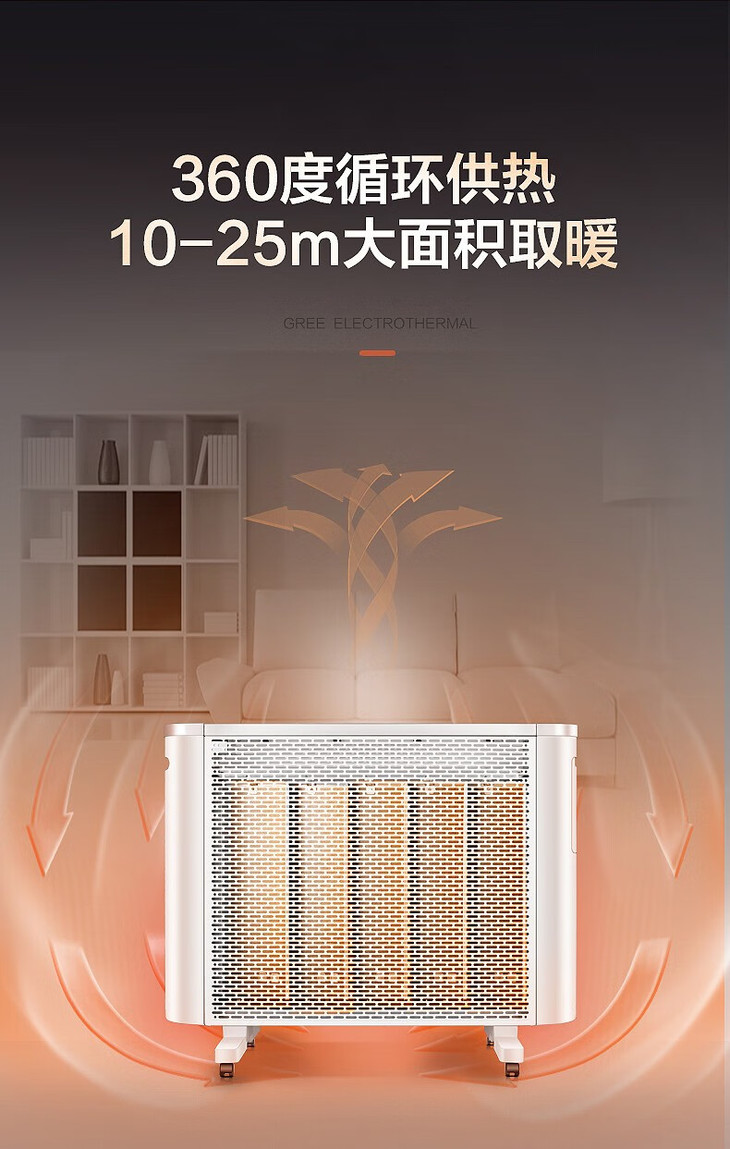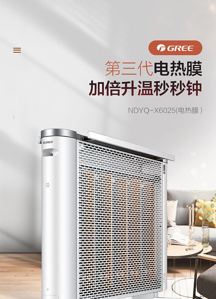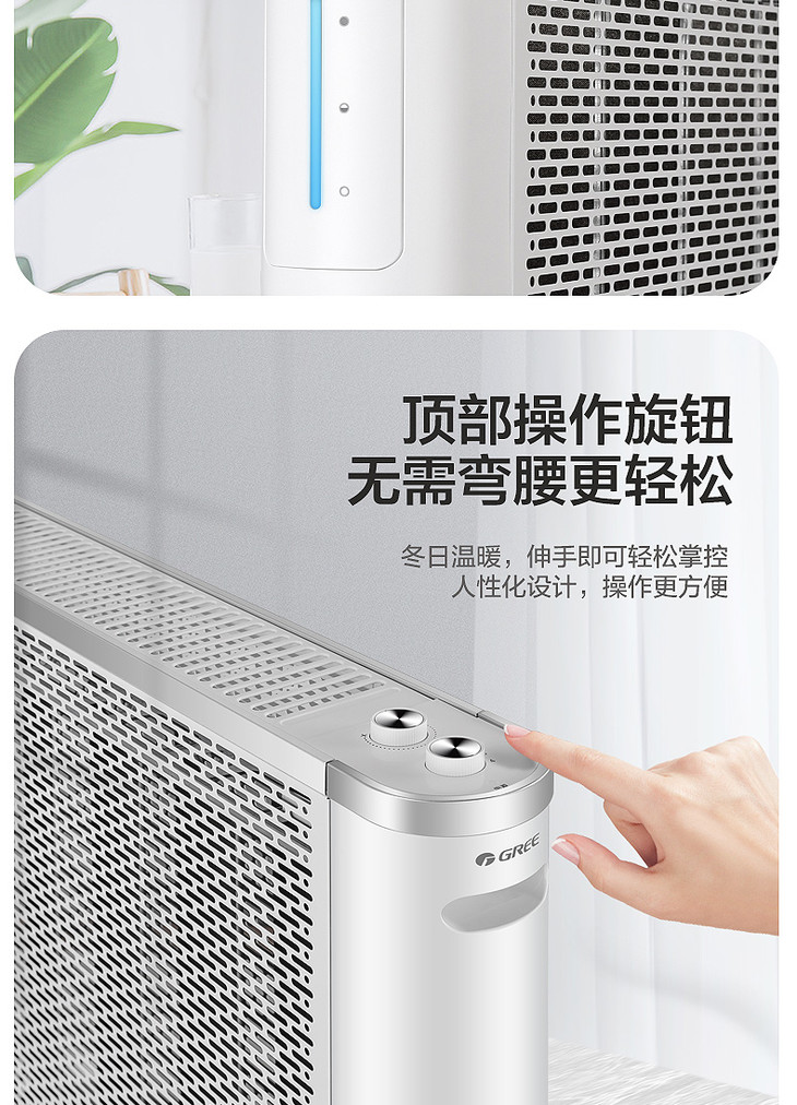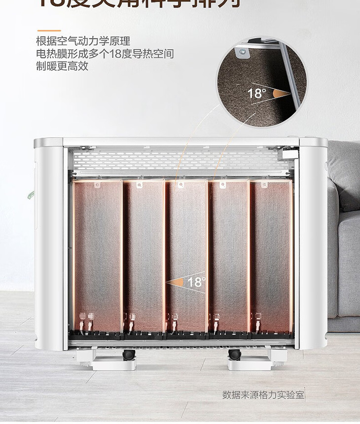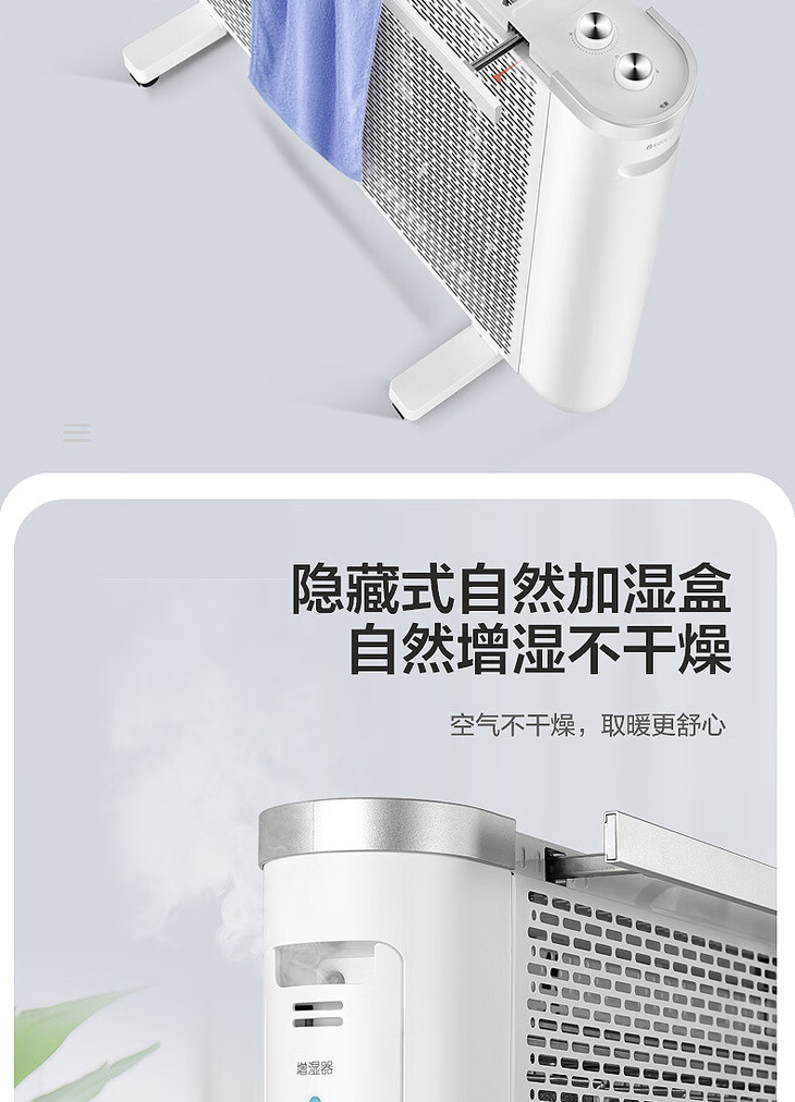格力(510125)(GREE)取暖器家用客厅大面电暖器节能电暖气片低噪婴儿孕妇防烫安全无光大功率电热膜加湿取暖气烤火炉 【2500W机械款】NDYQ-X6025(白+银)